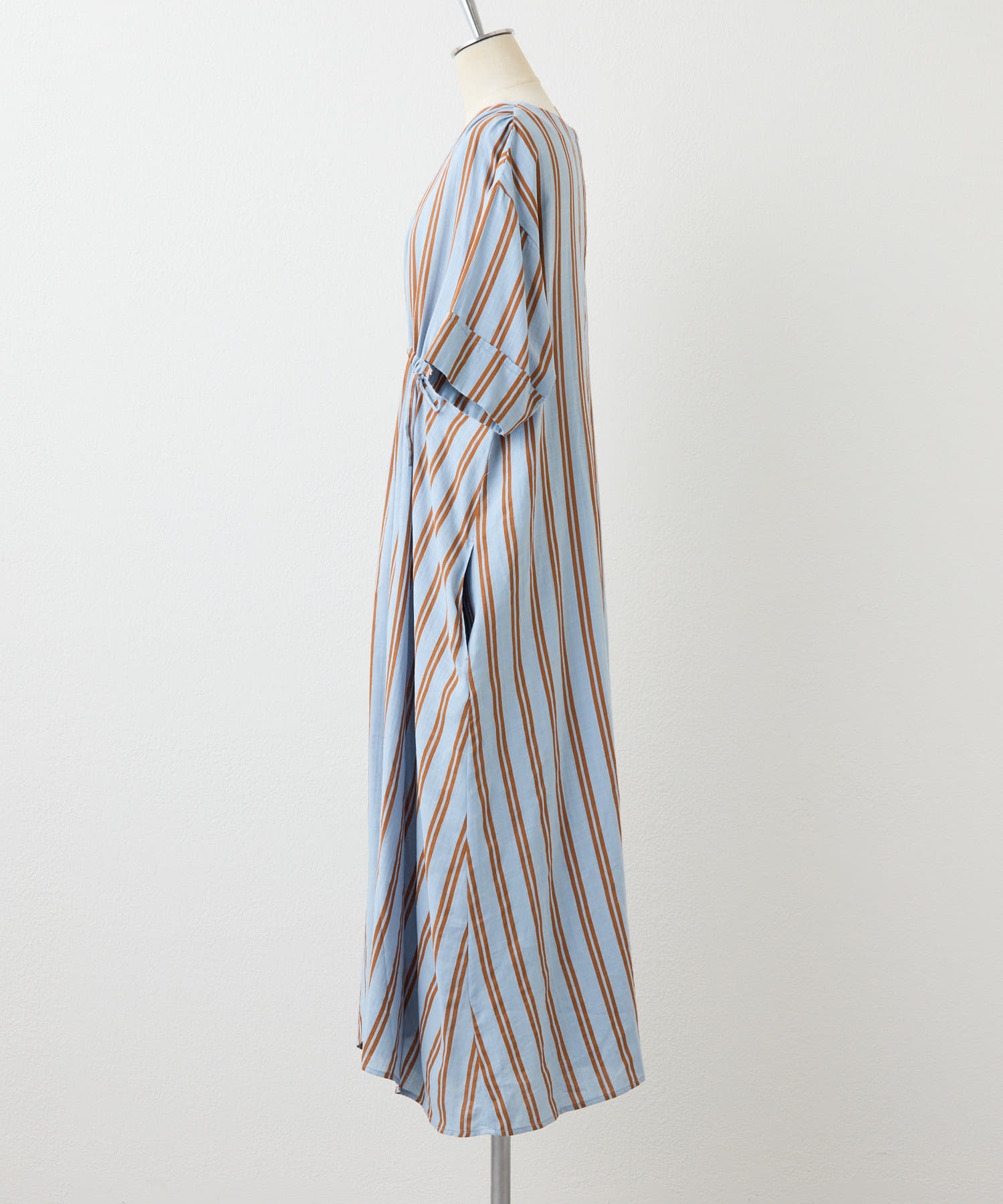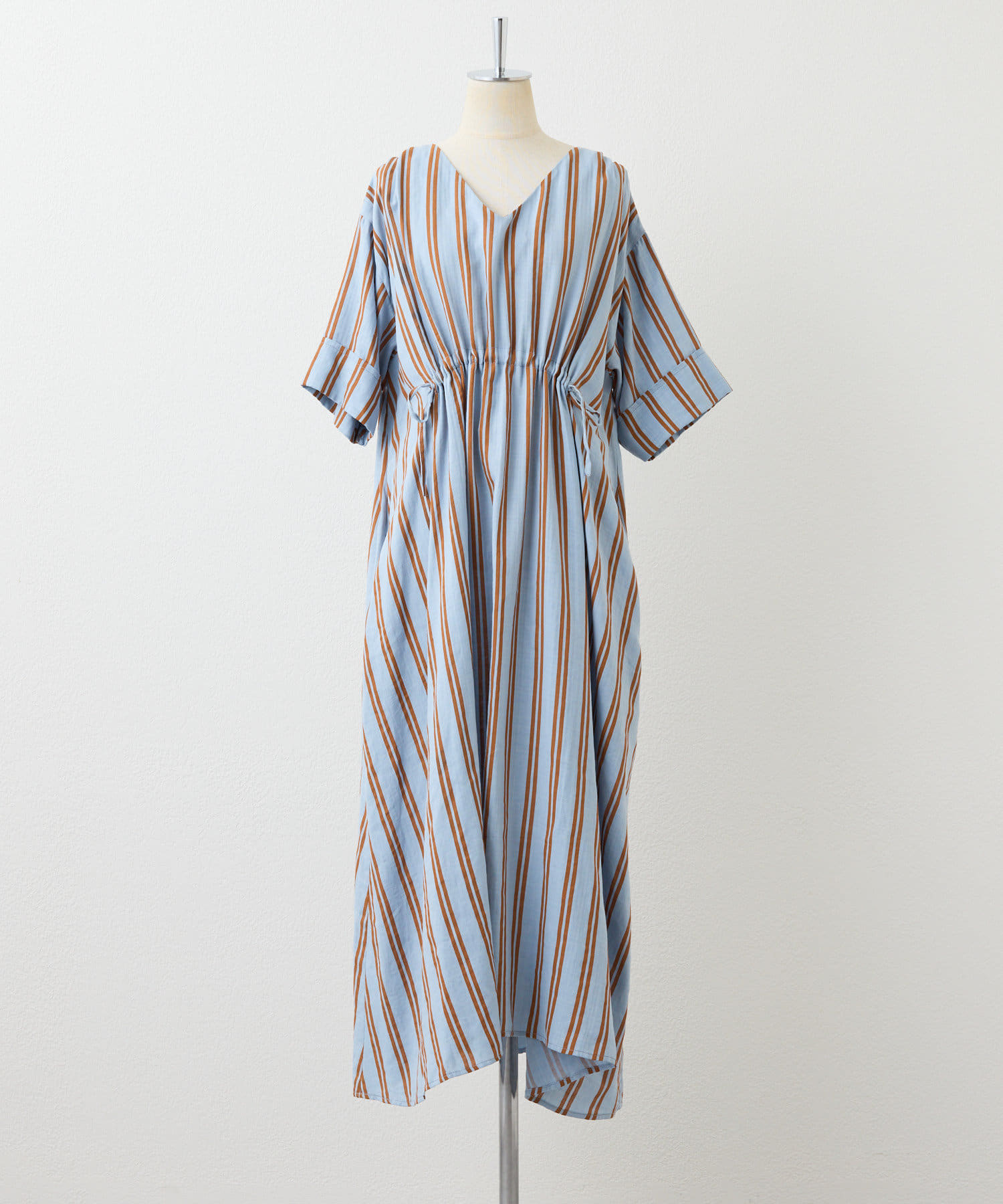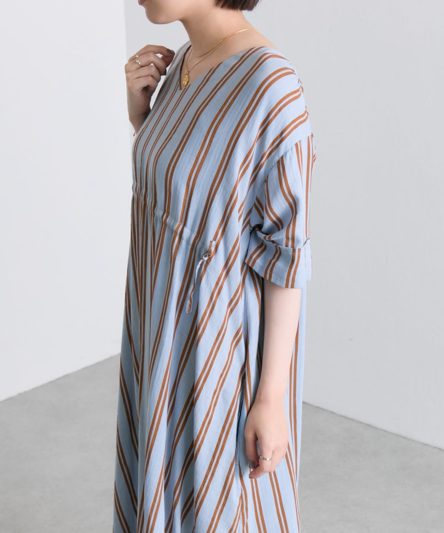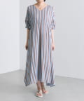【ear PAPILLONNER】フロントドロストストライプワンピース