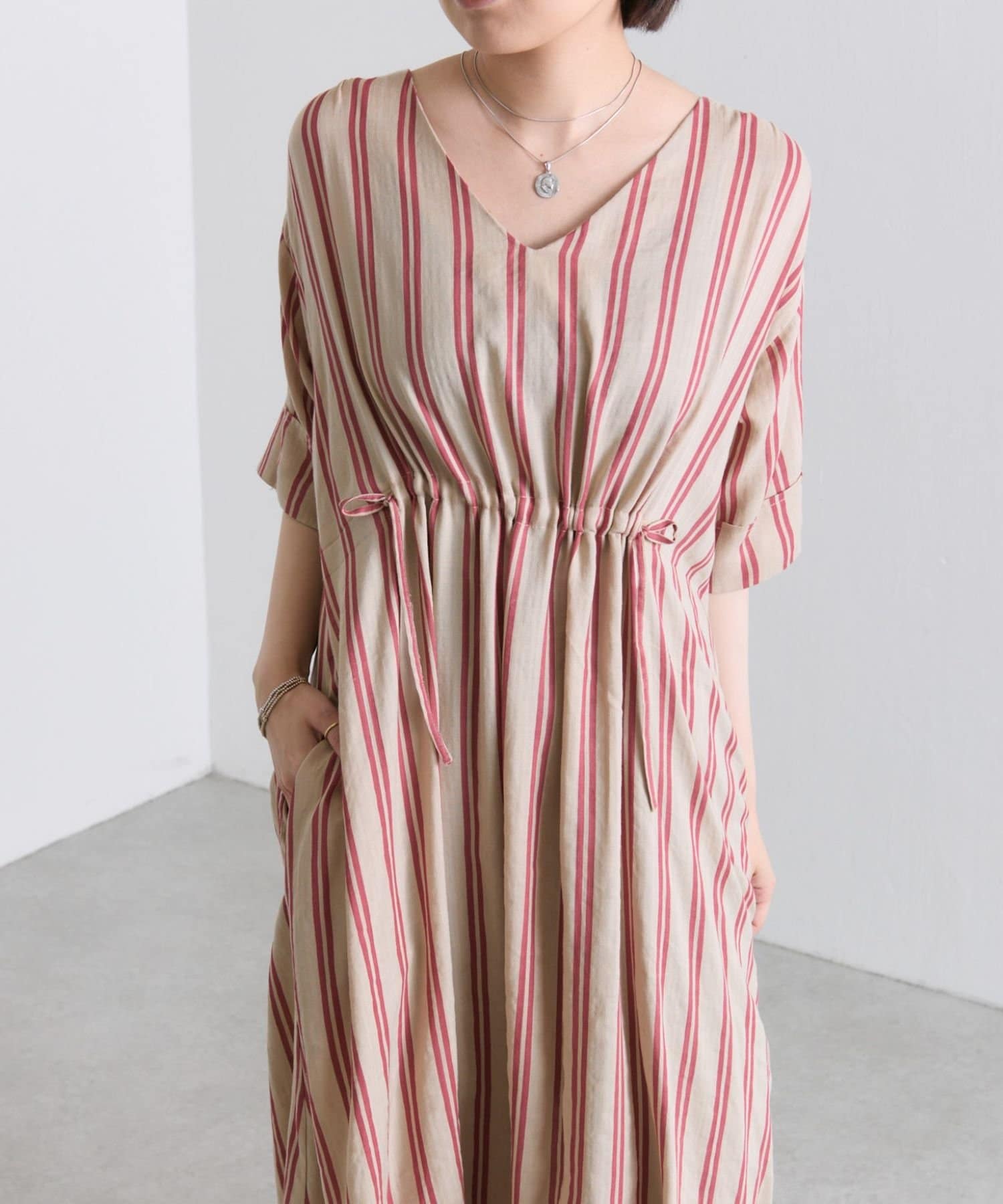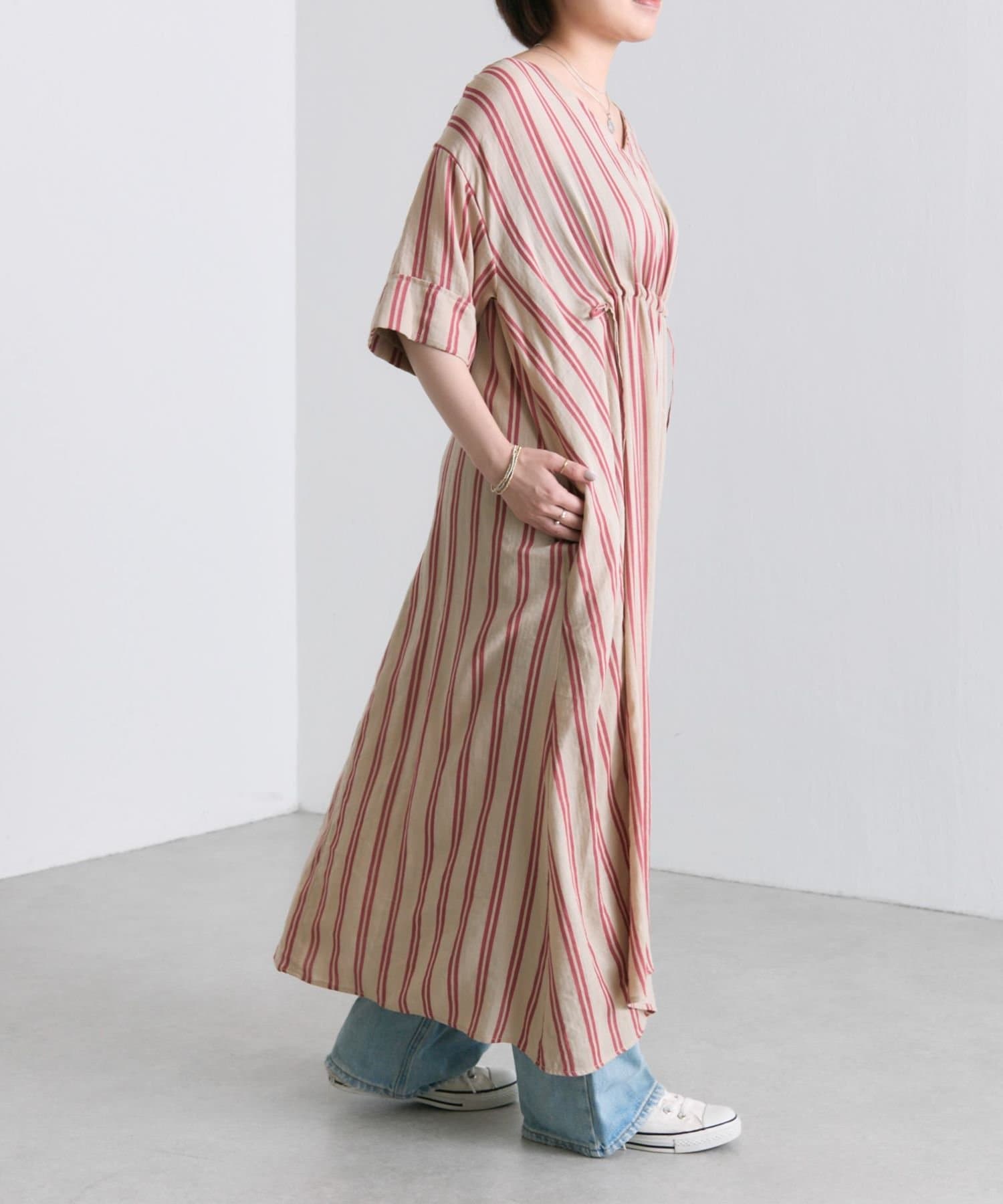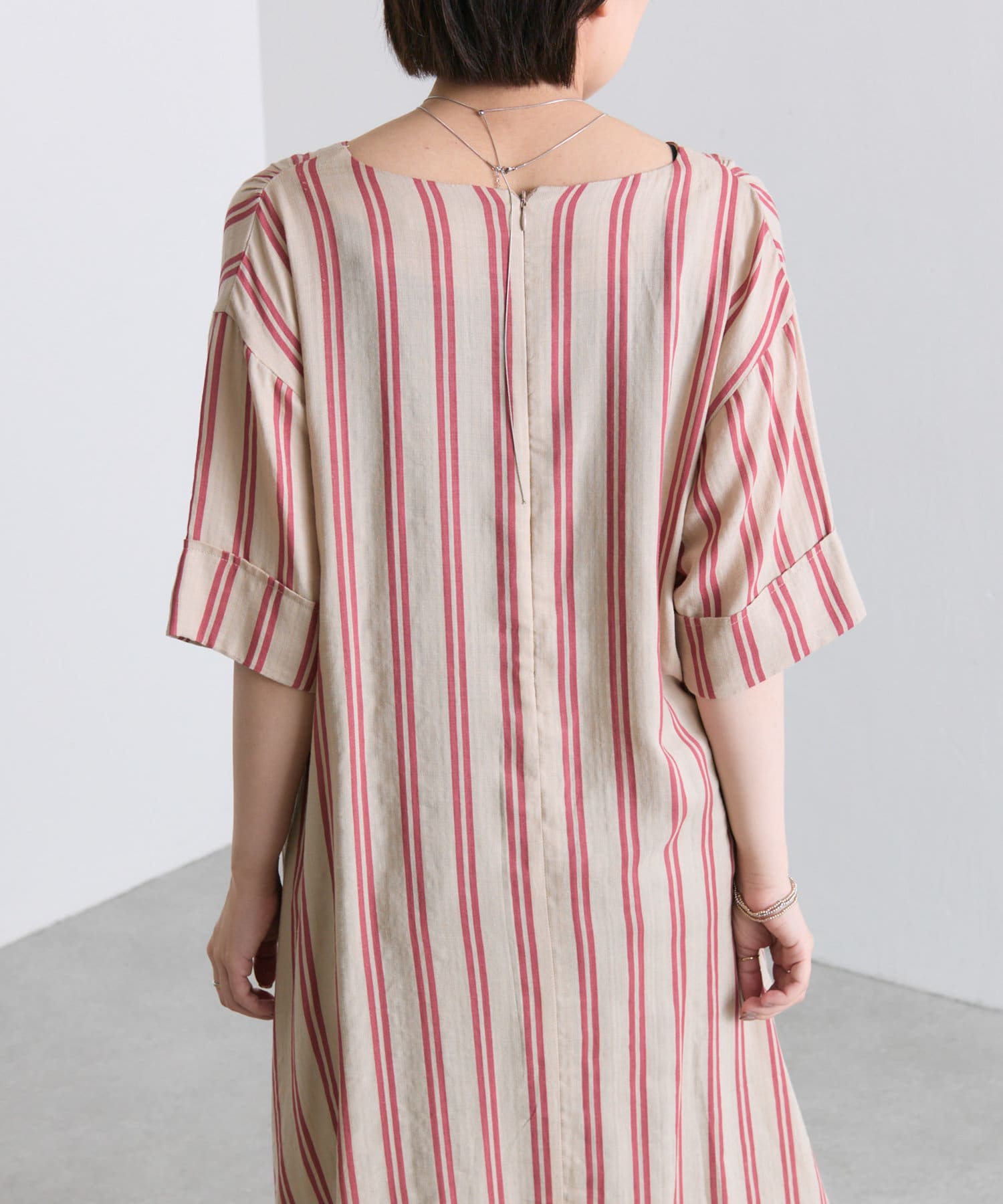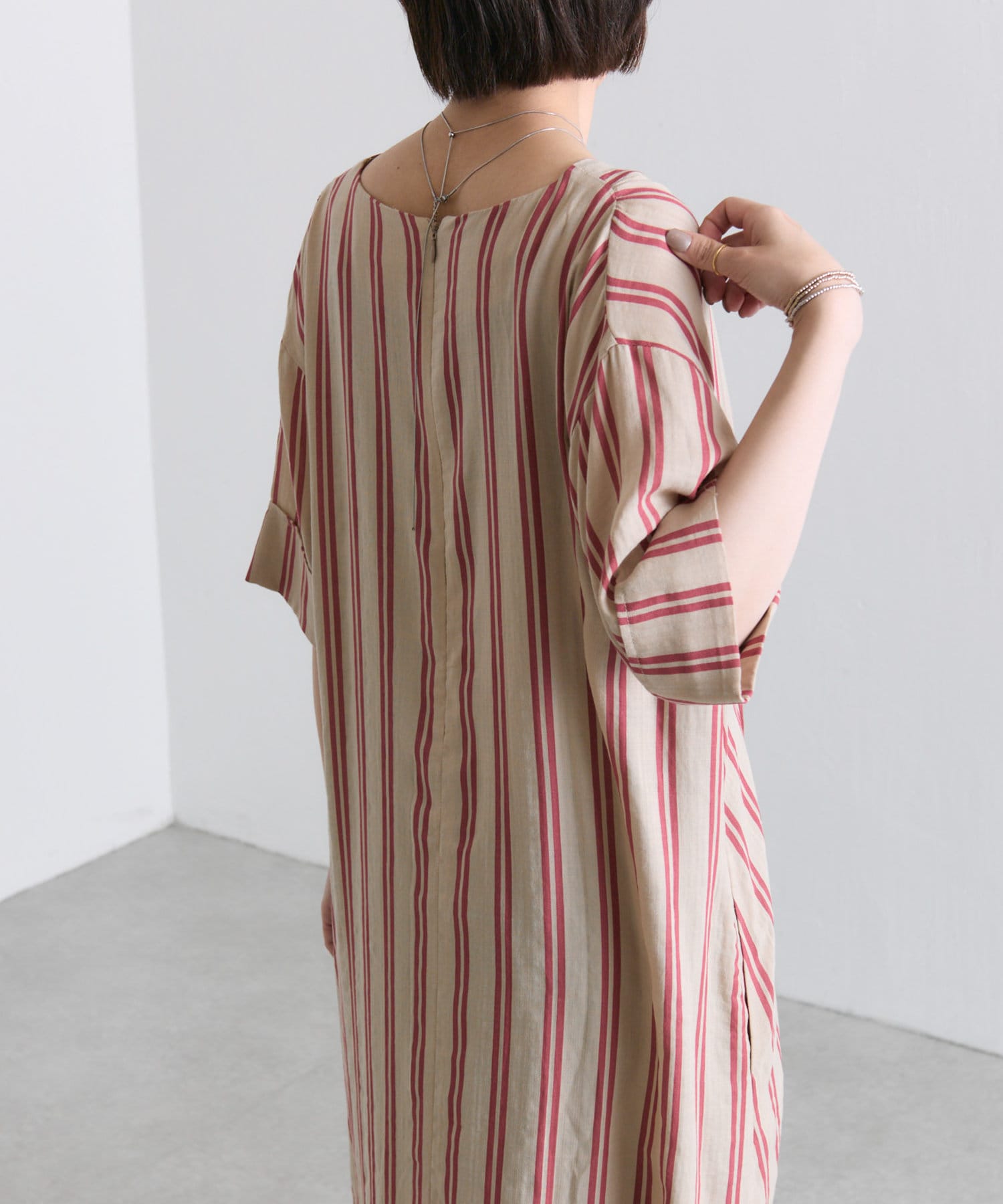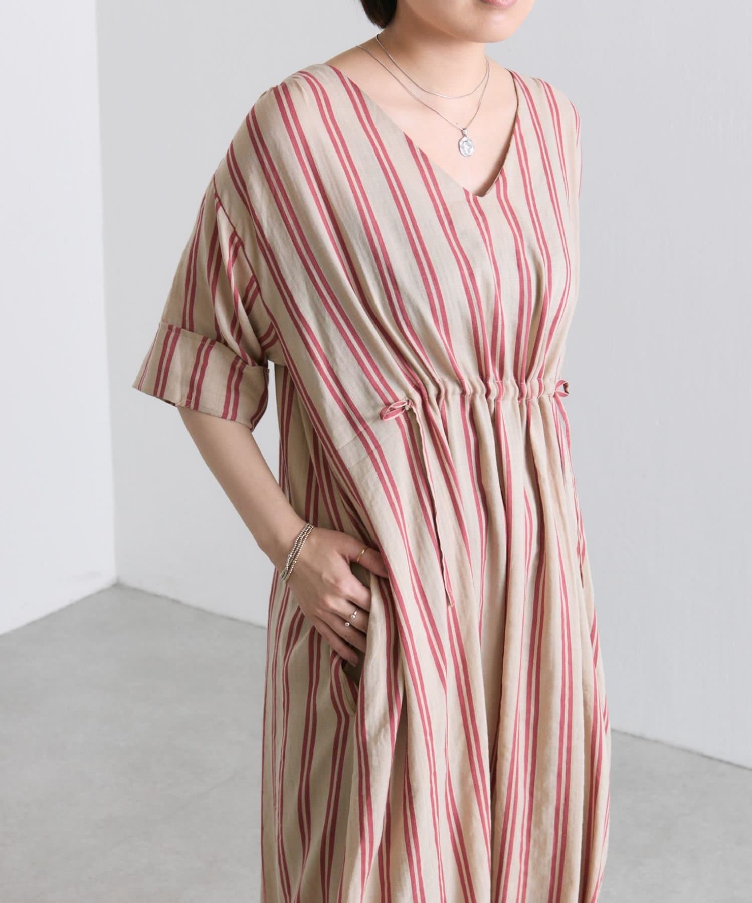 ・どこかレトロライクな雰囲気も感じさせるストライプ柄のワンピ