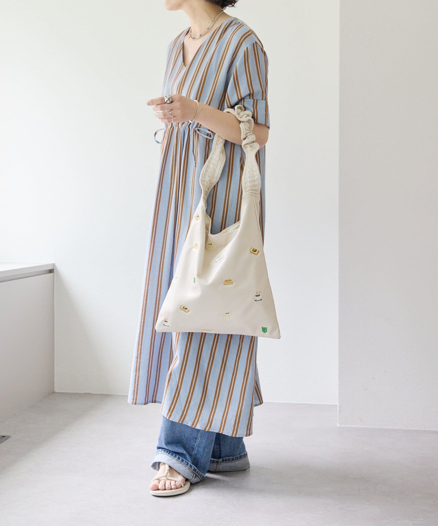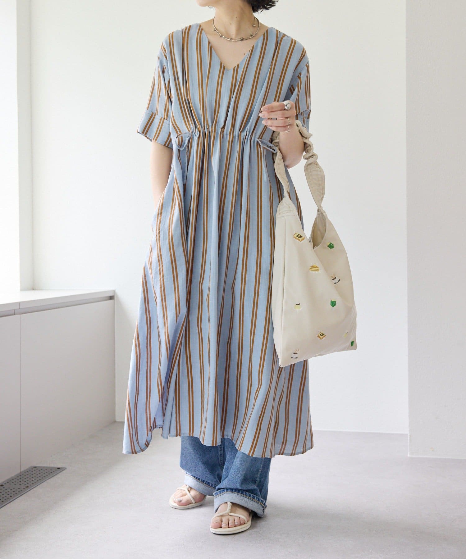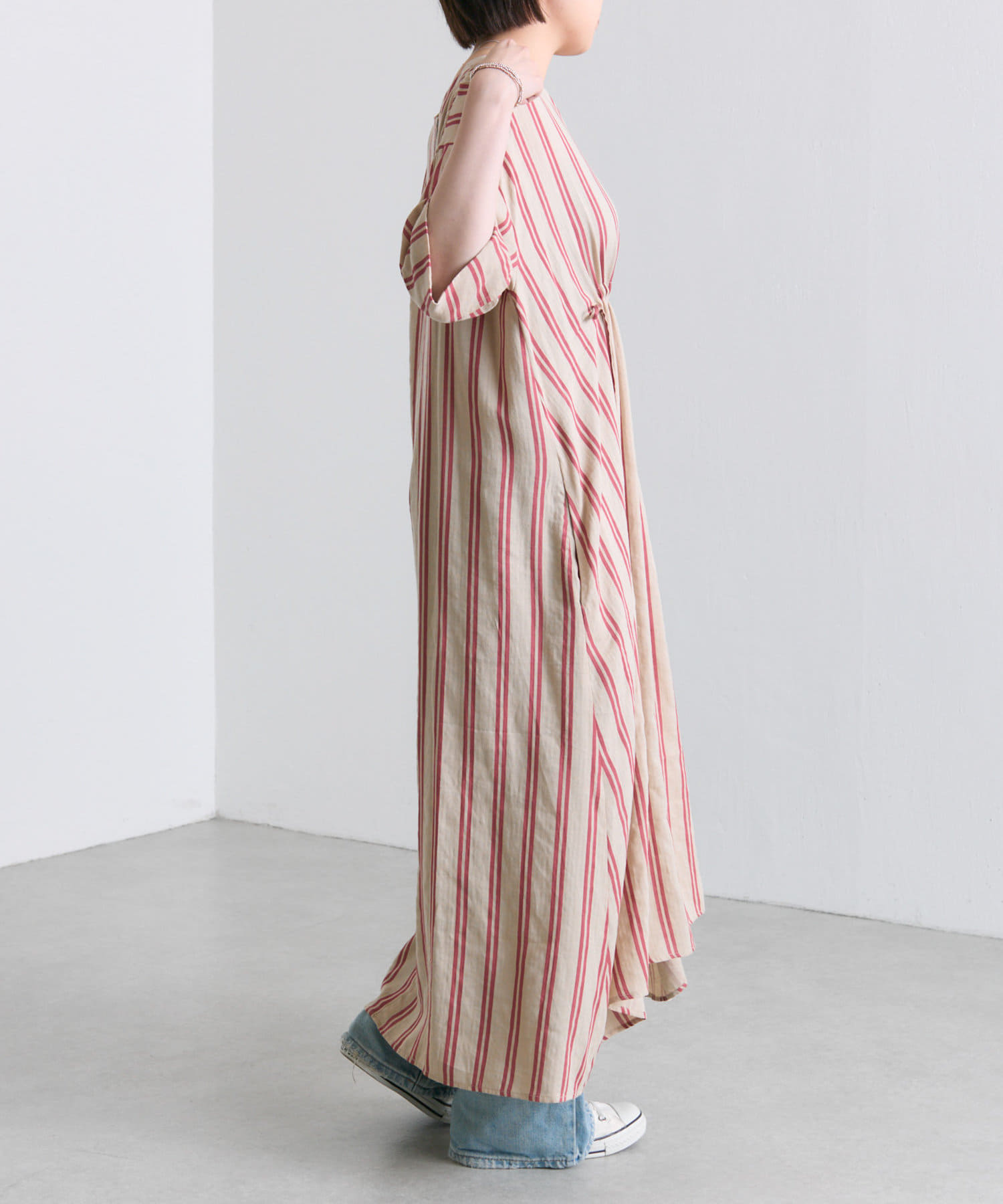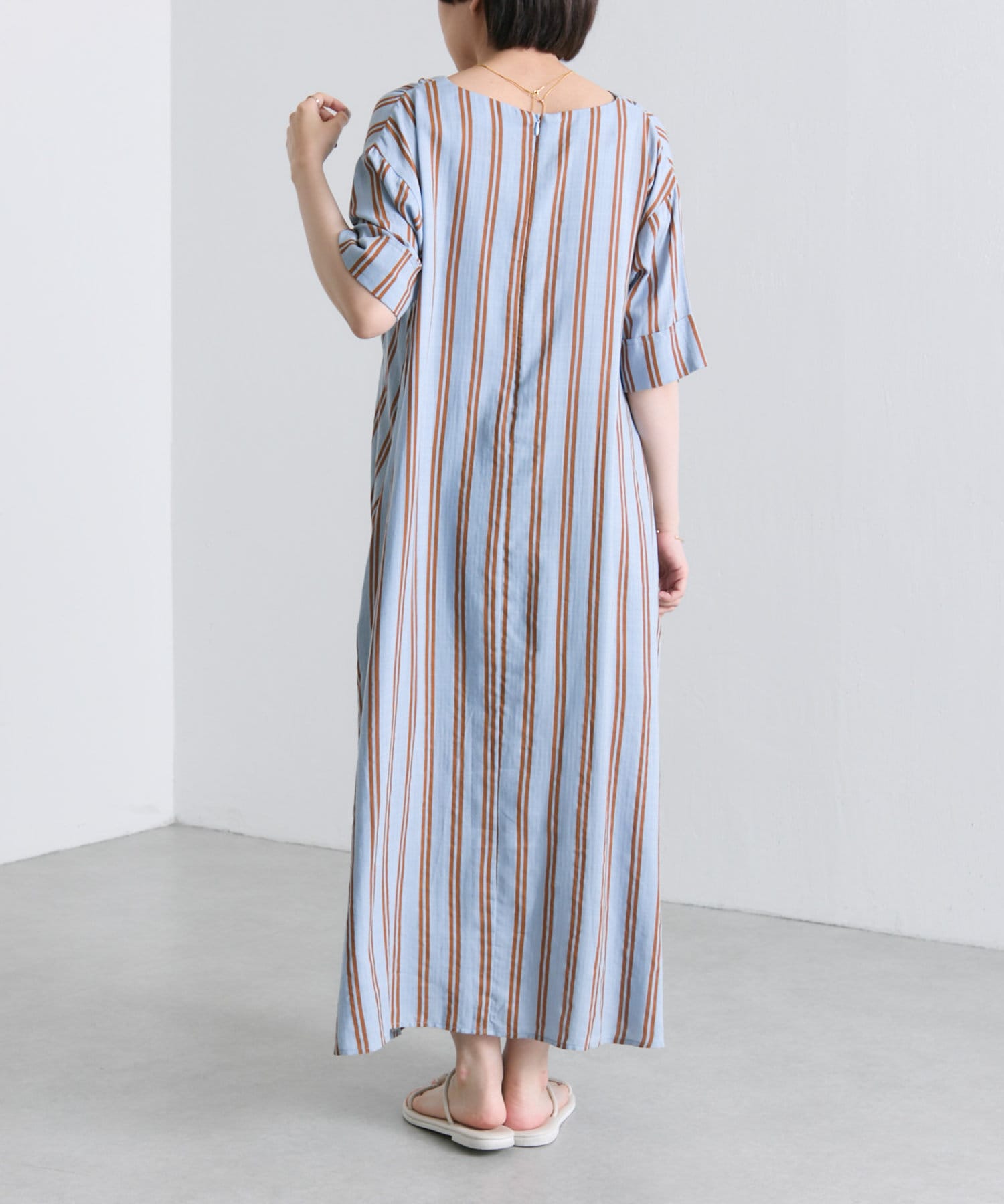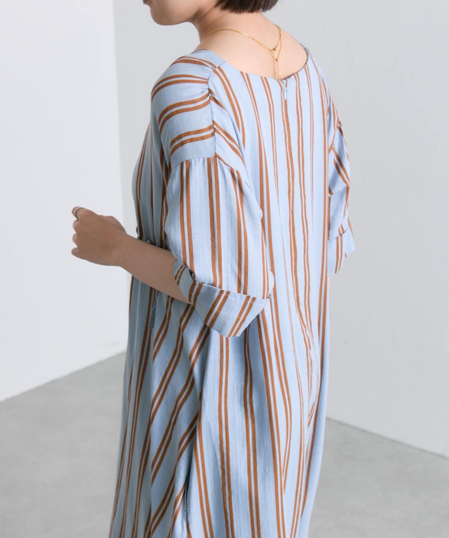 ・どこかレトロライクな雰囲気も感じさせるストライプ柄のワンピ