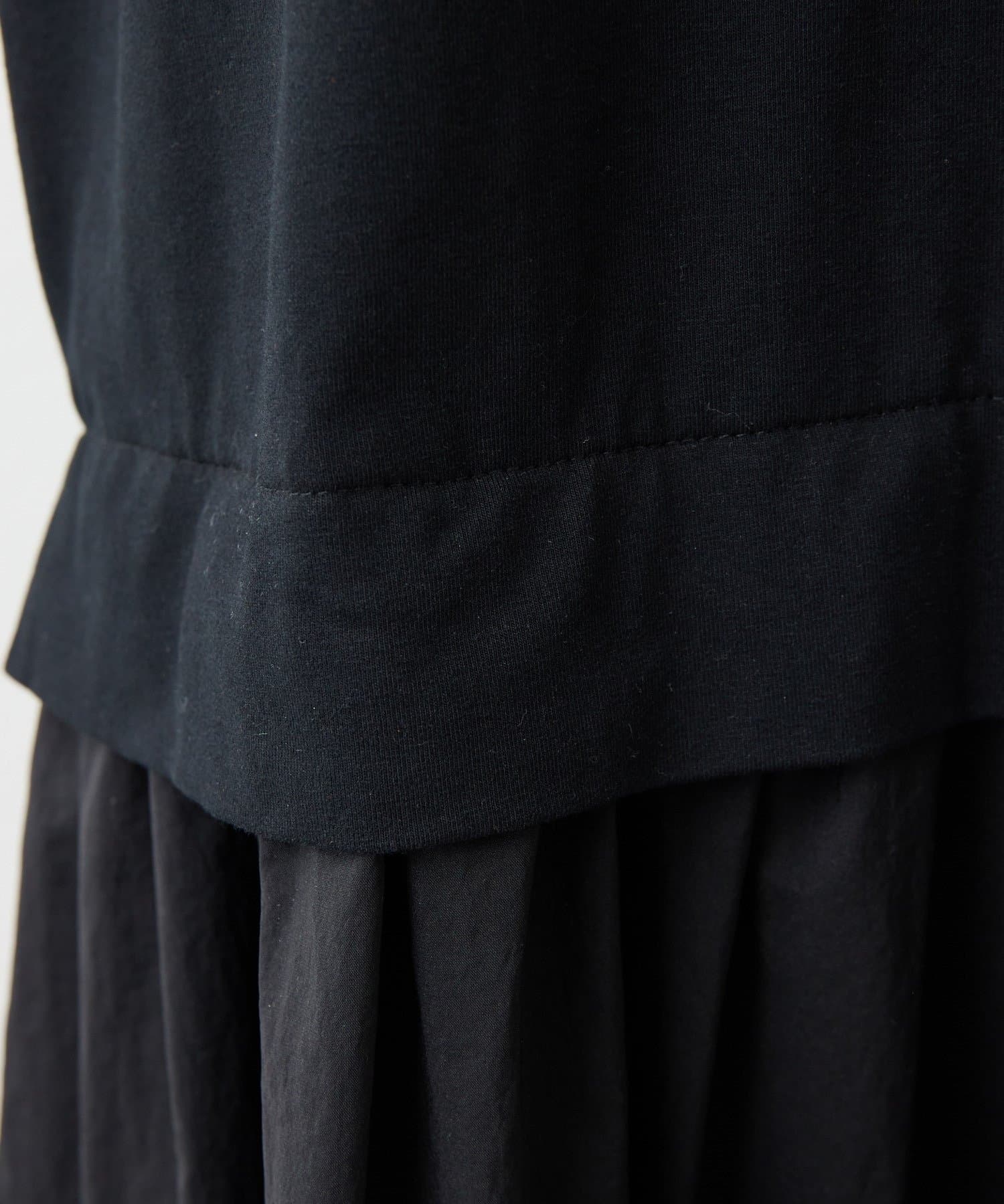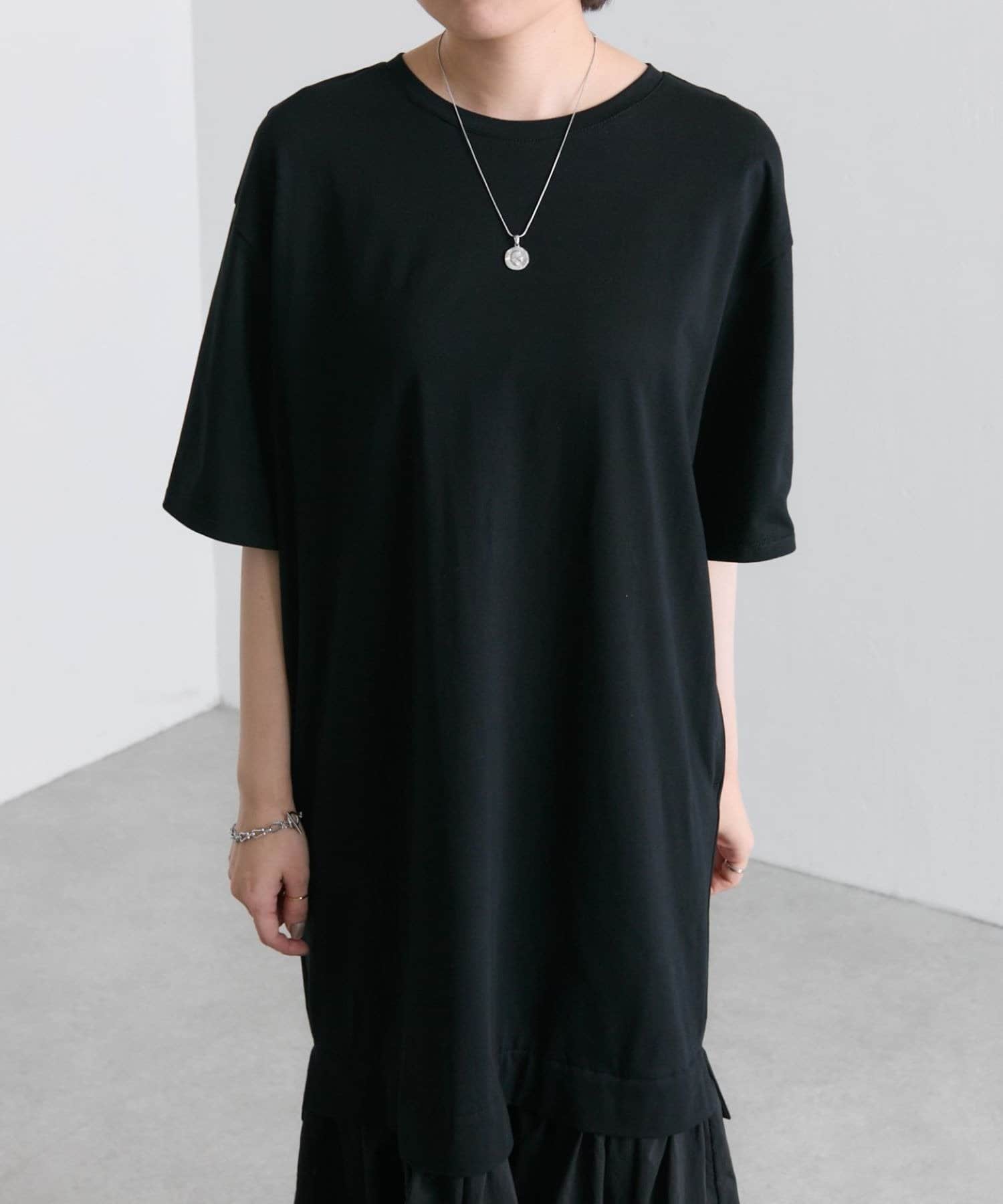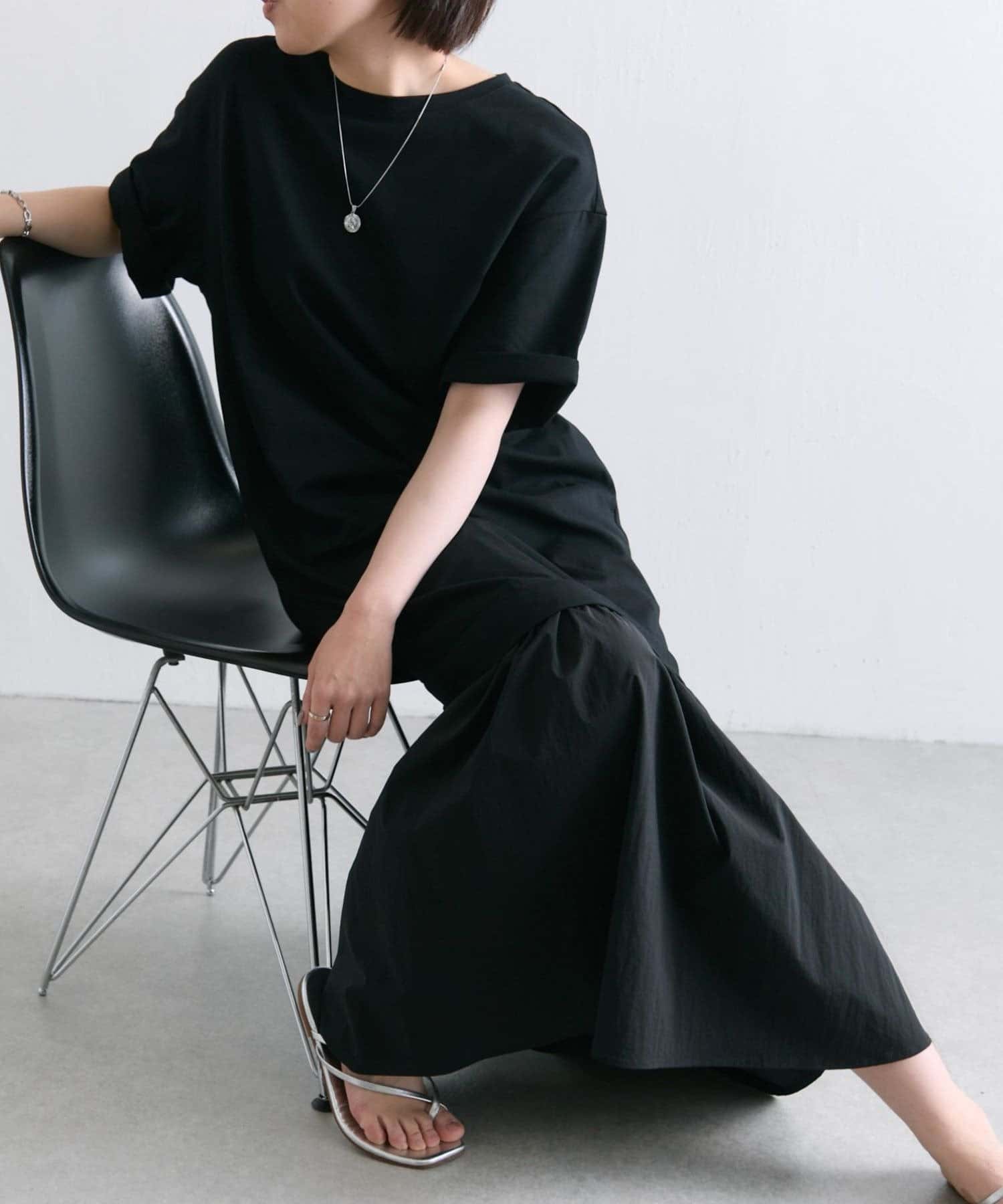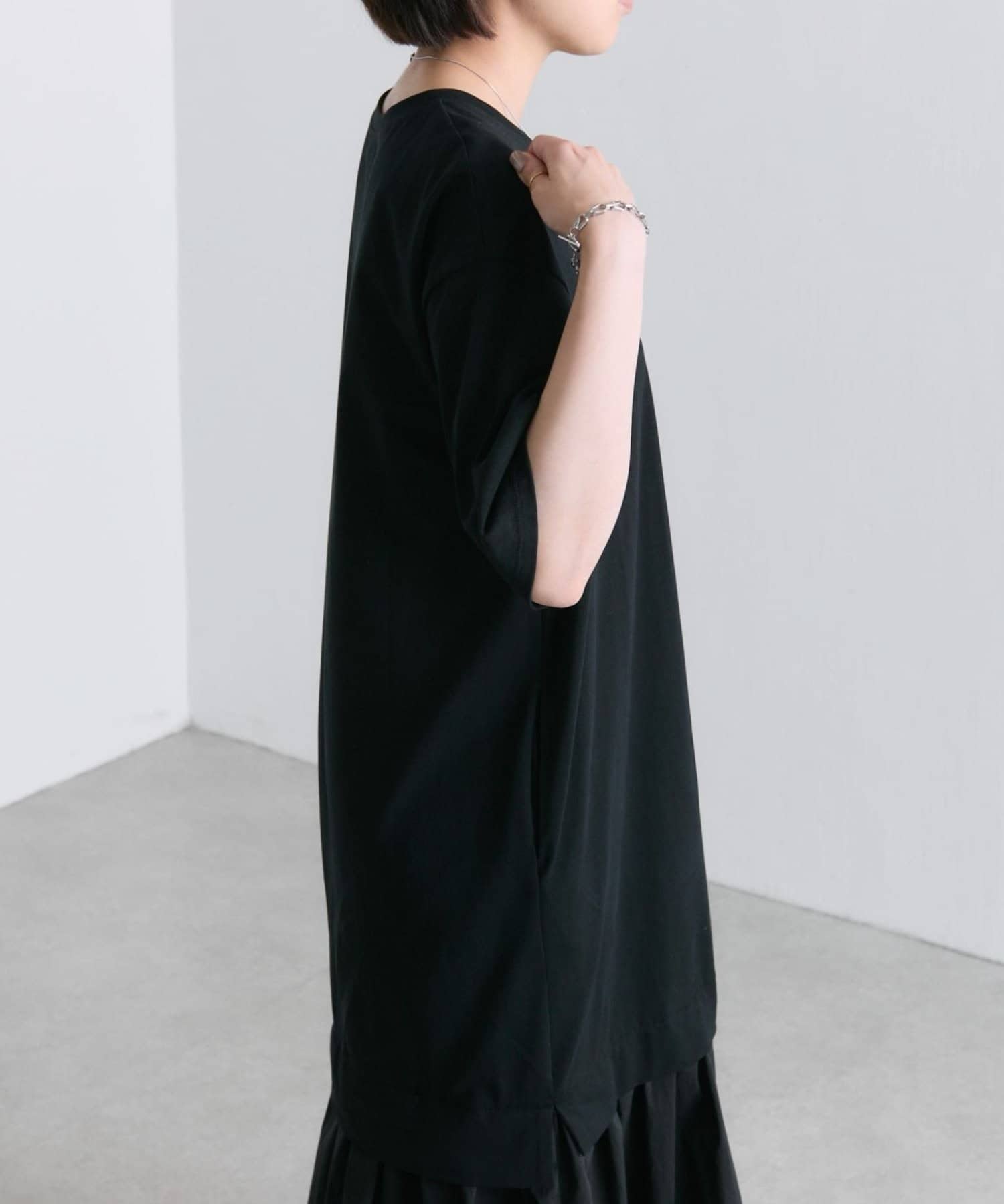 • ブラック/首元はシンプルなラウンドネックでネックレスも合わせやすい
