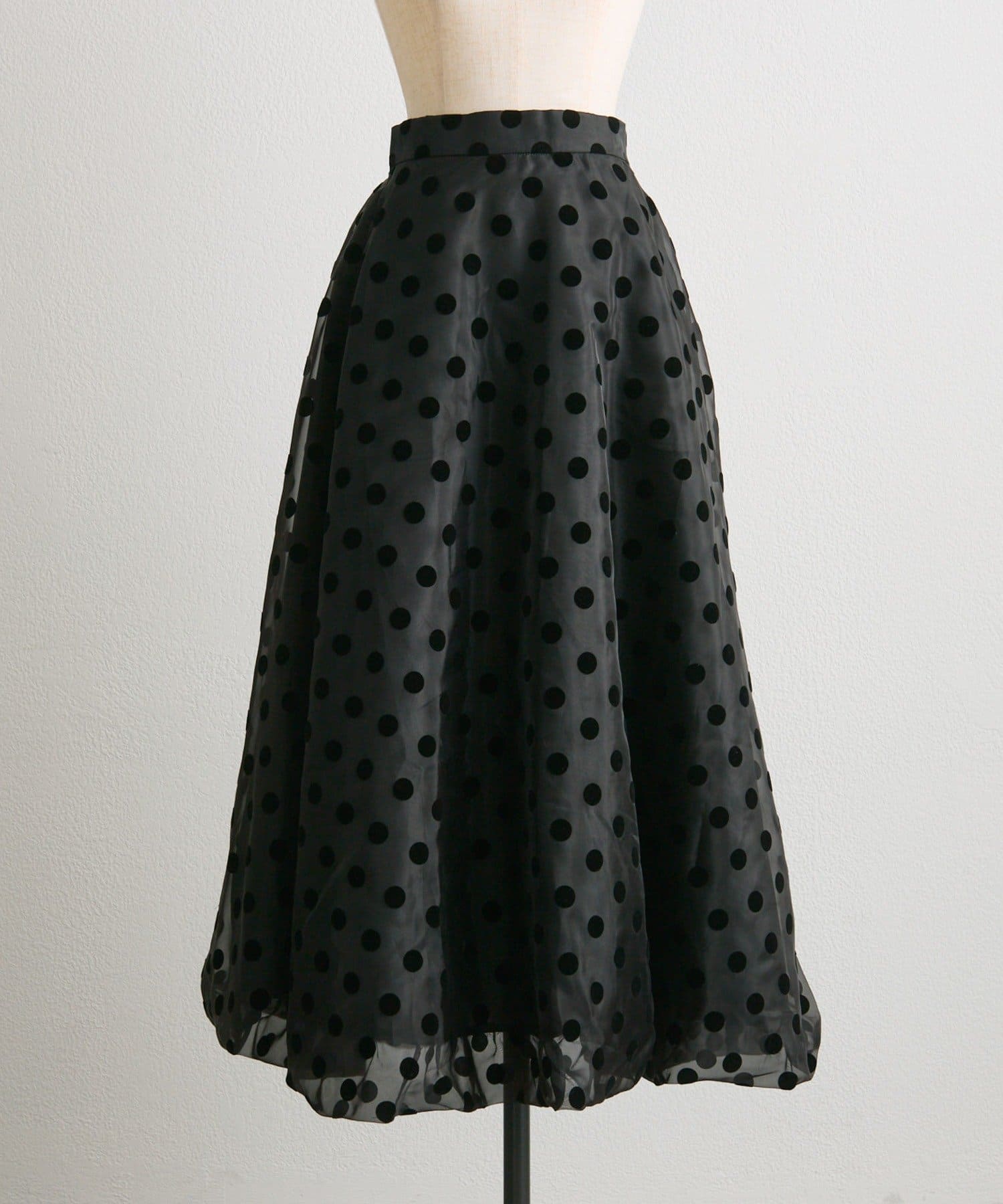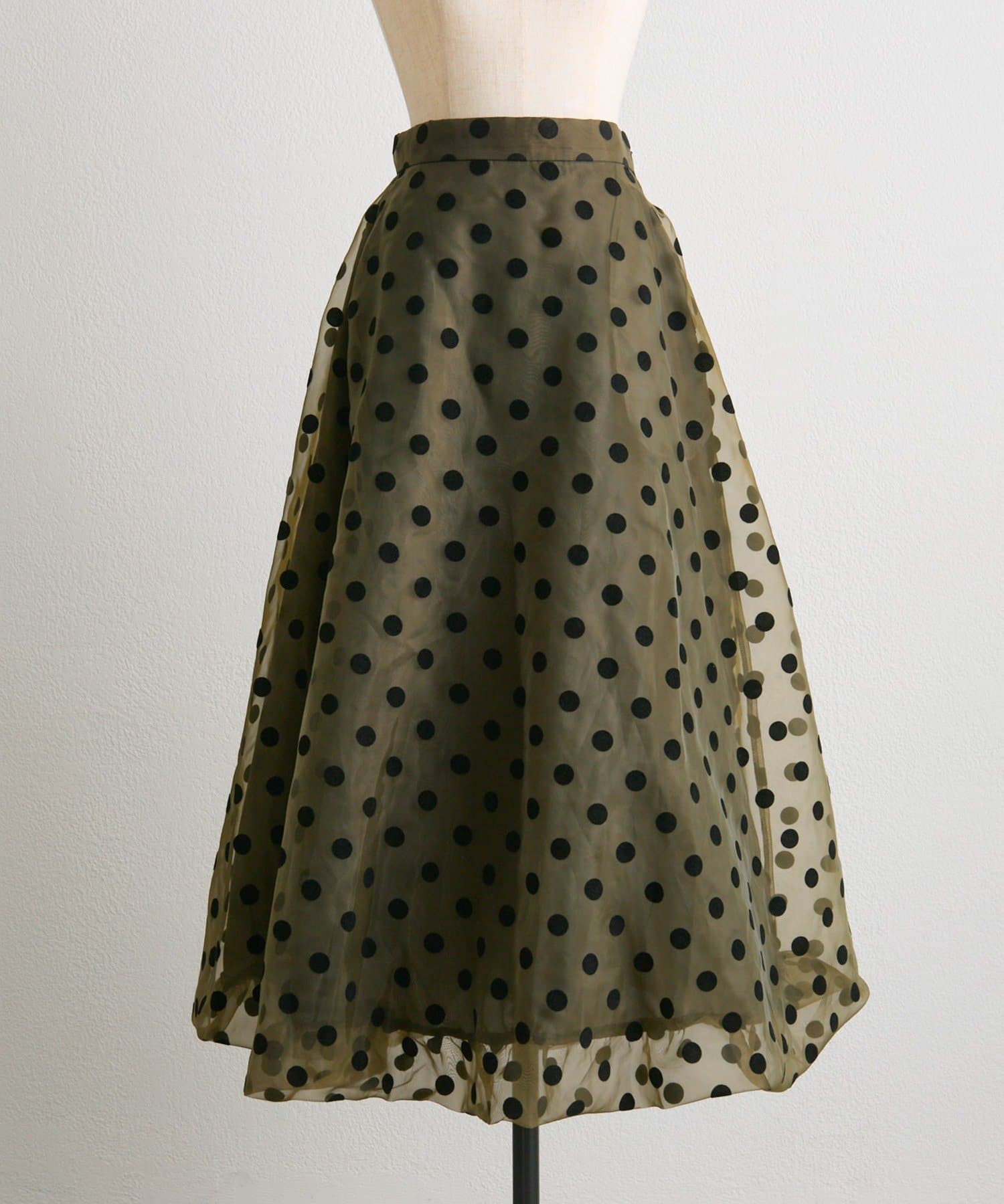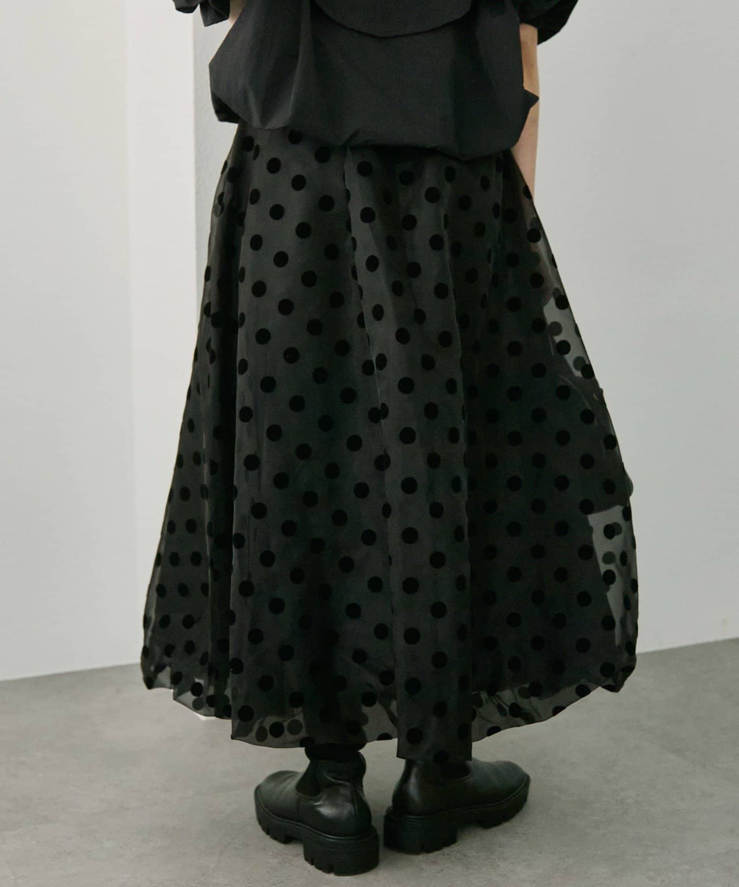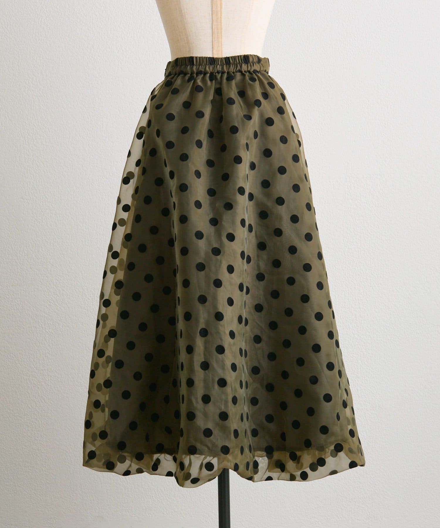 ・シアーの生地にドット模様をあしらったAラインのスカート