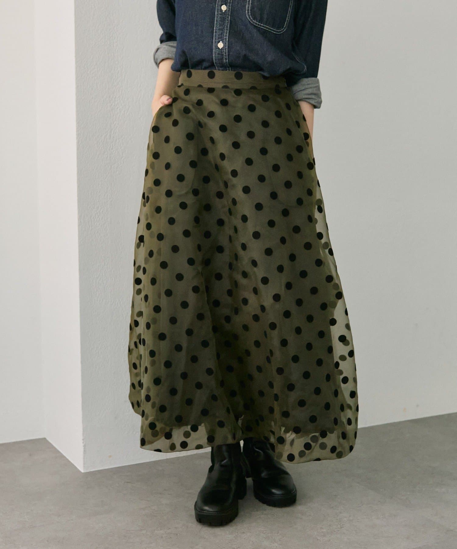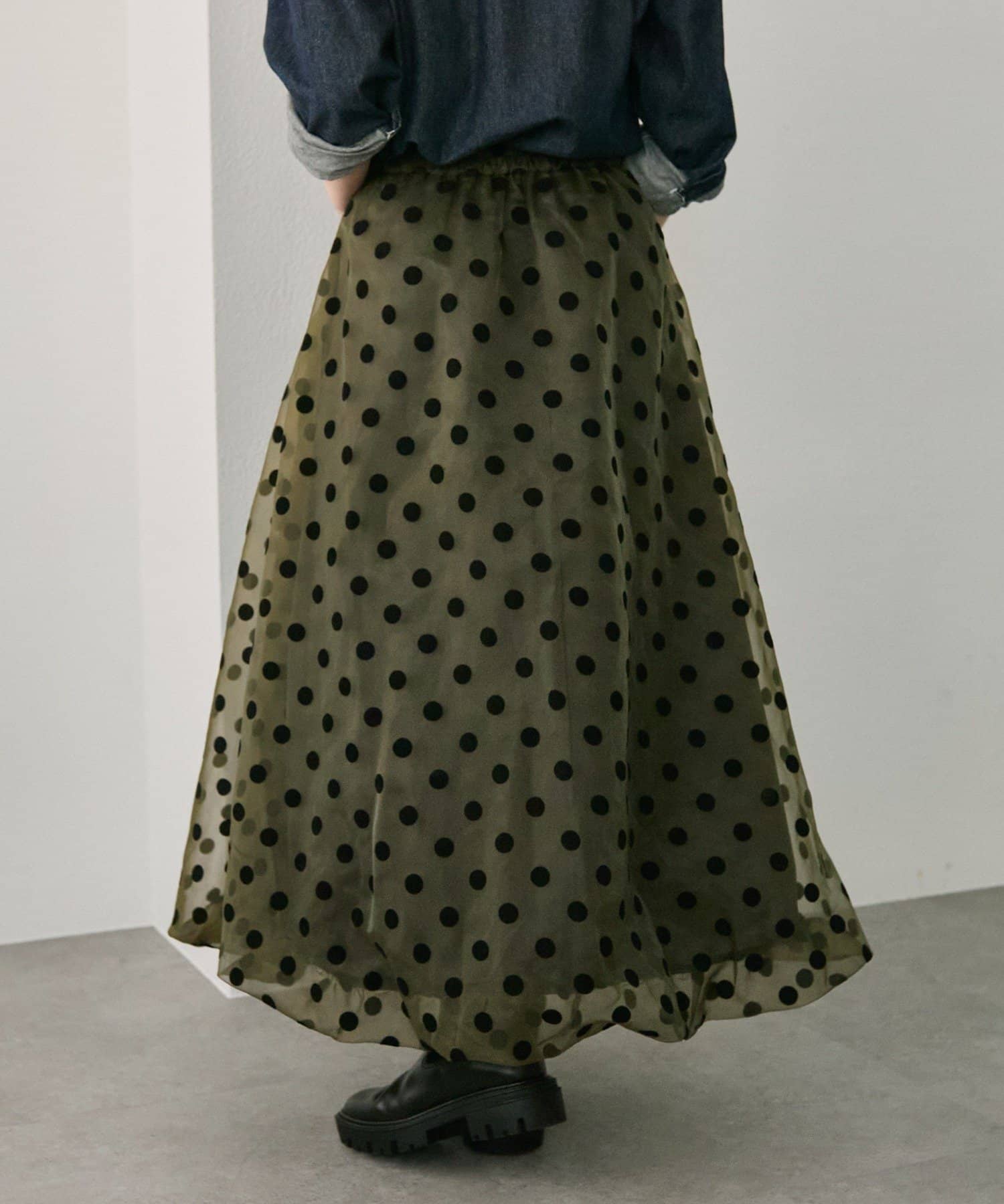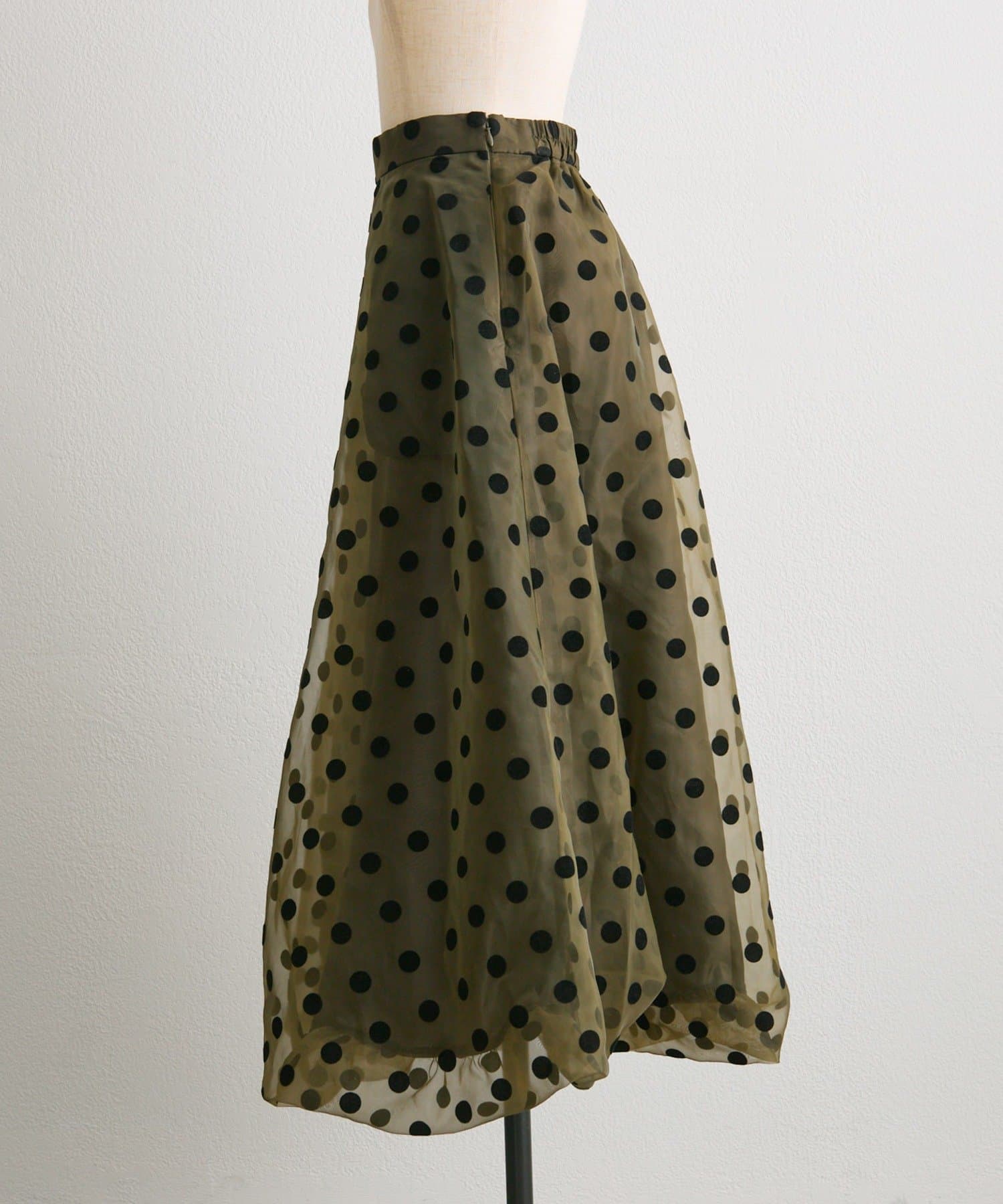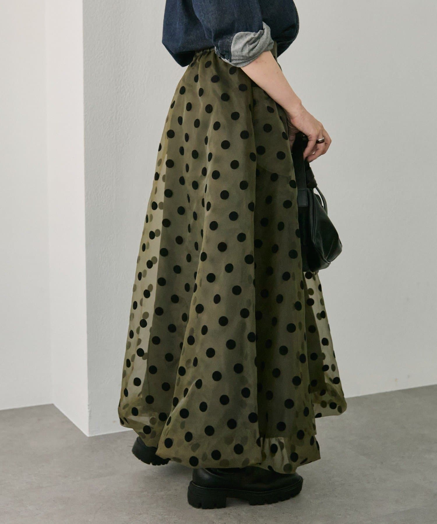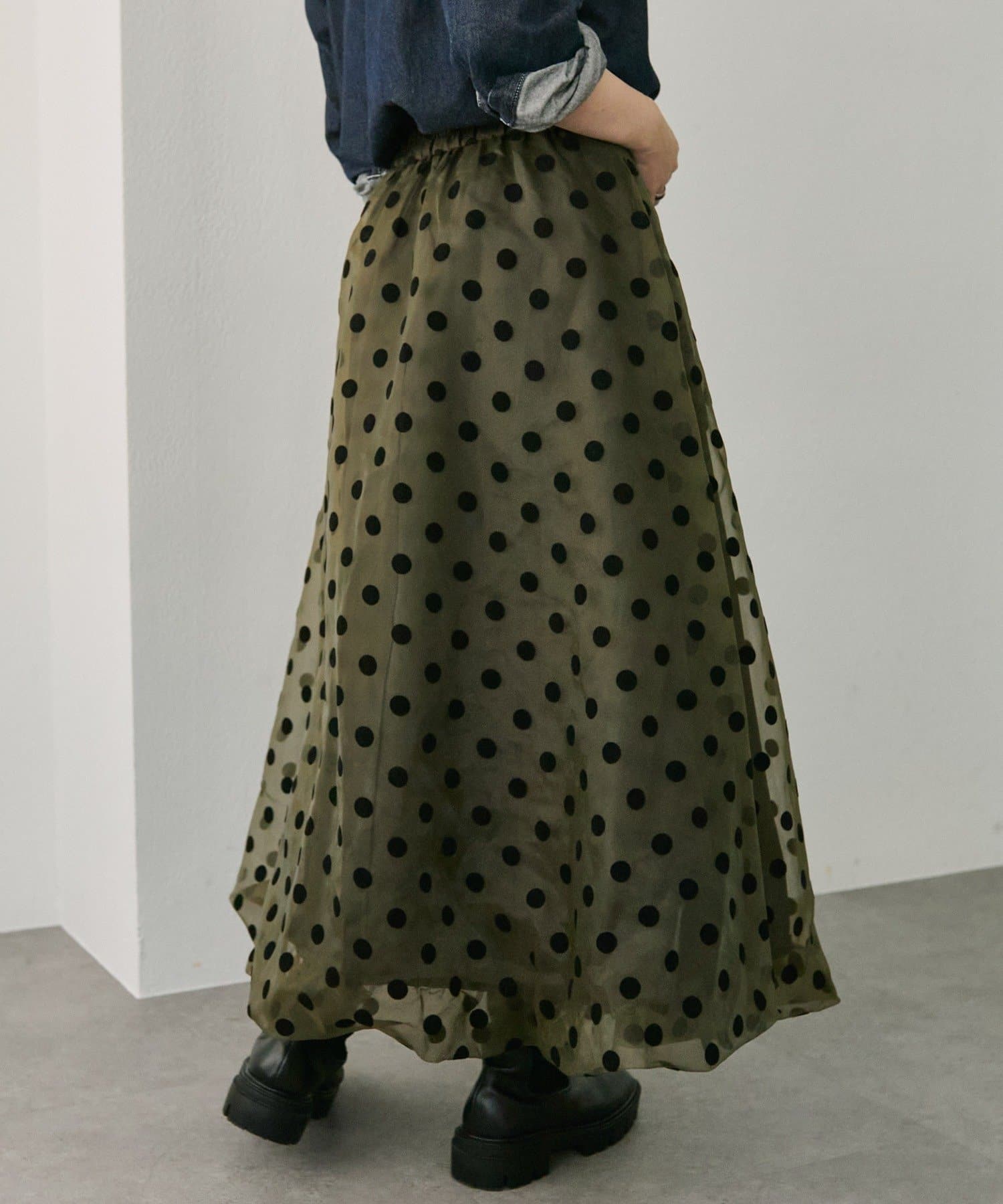 ・シアーの生地にドット模様をあしらったAラインのスカート