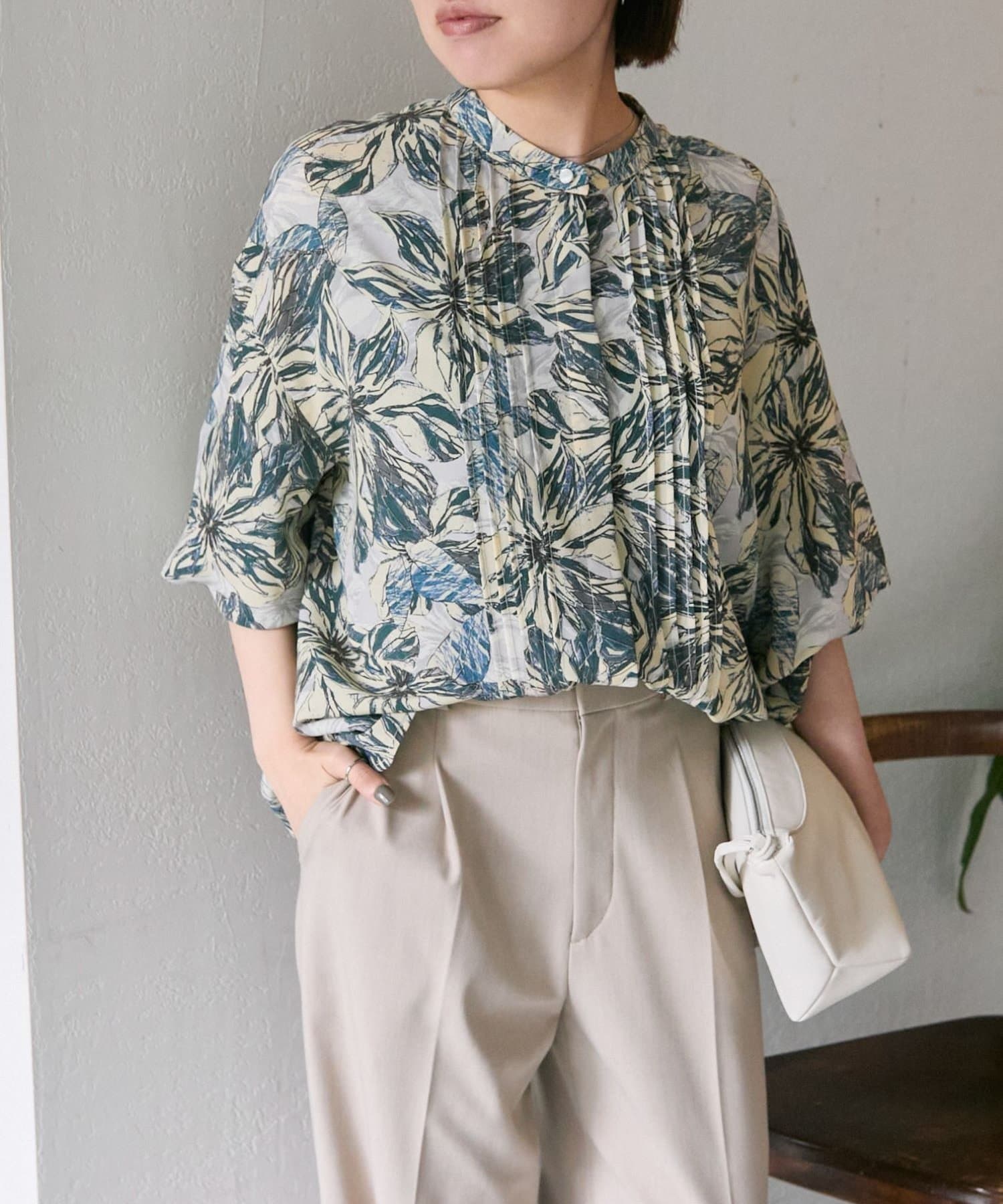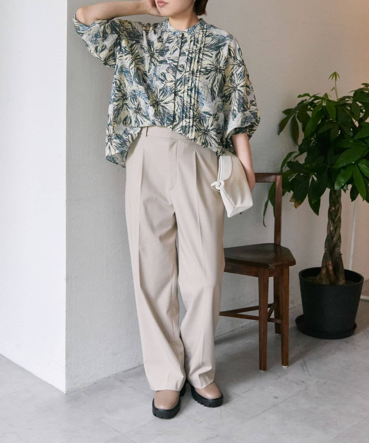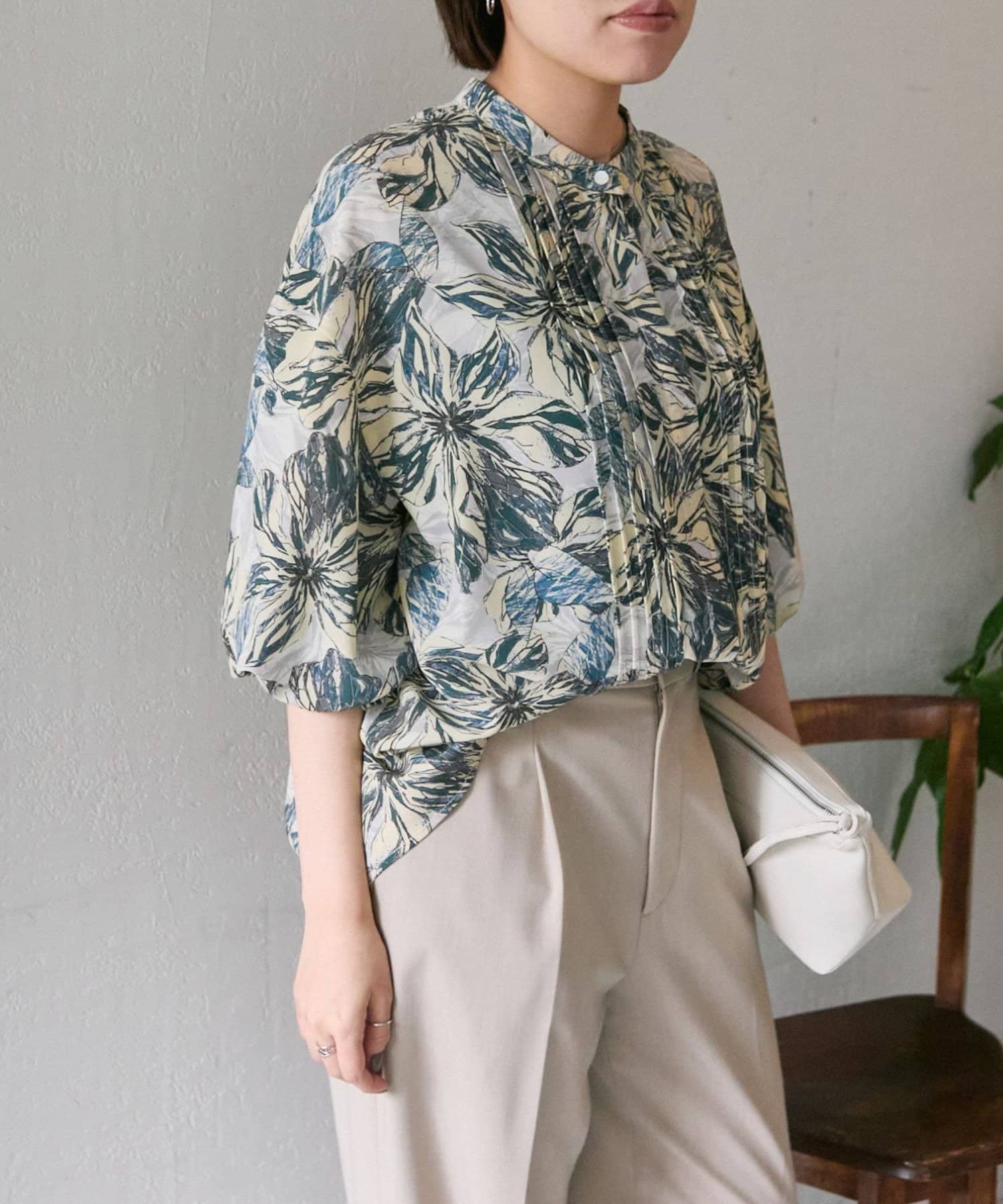 ボタニカル柄/花柄ピンタックブラウス【SUM1 STYLE(スミスタイル)】