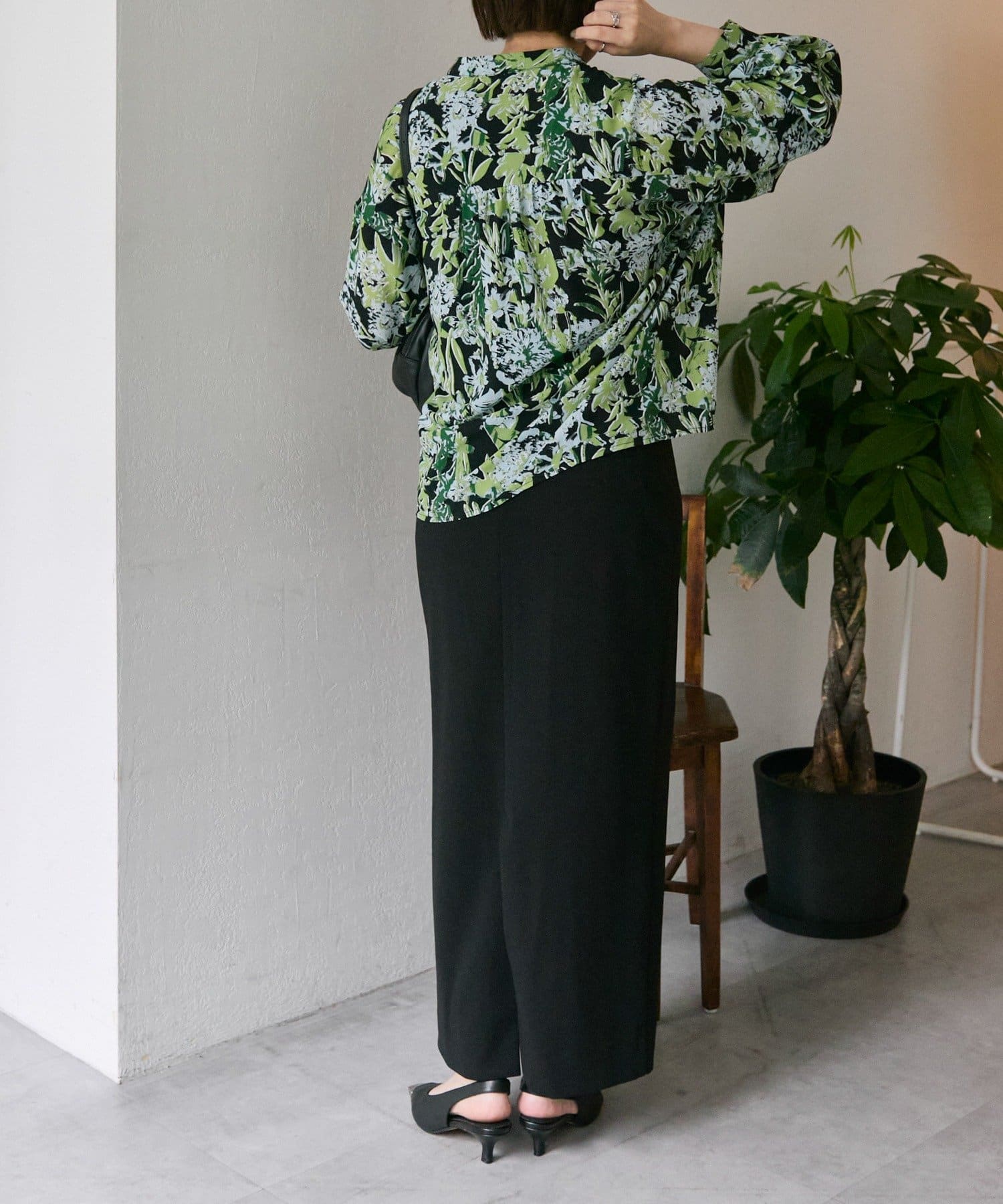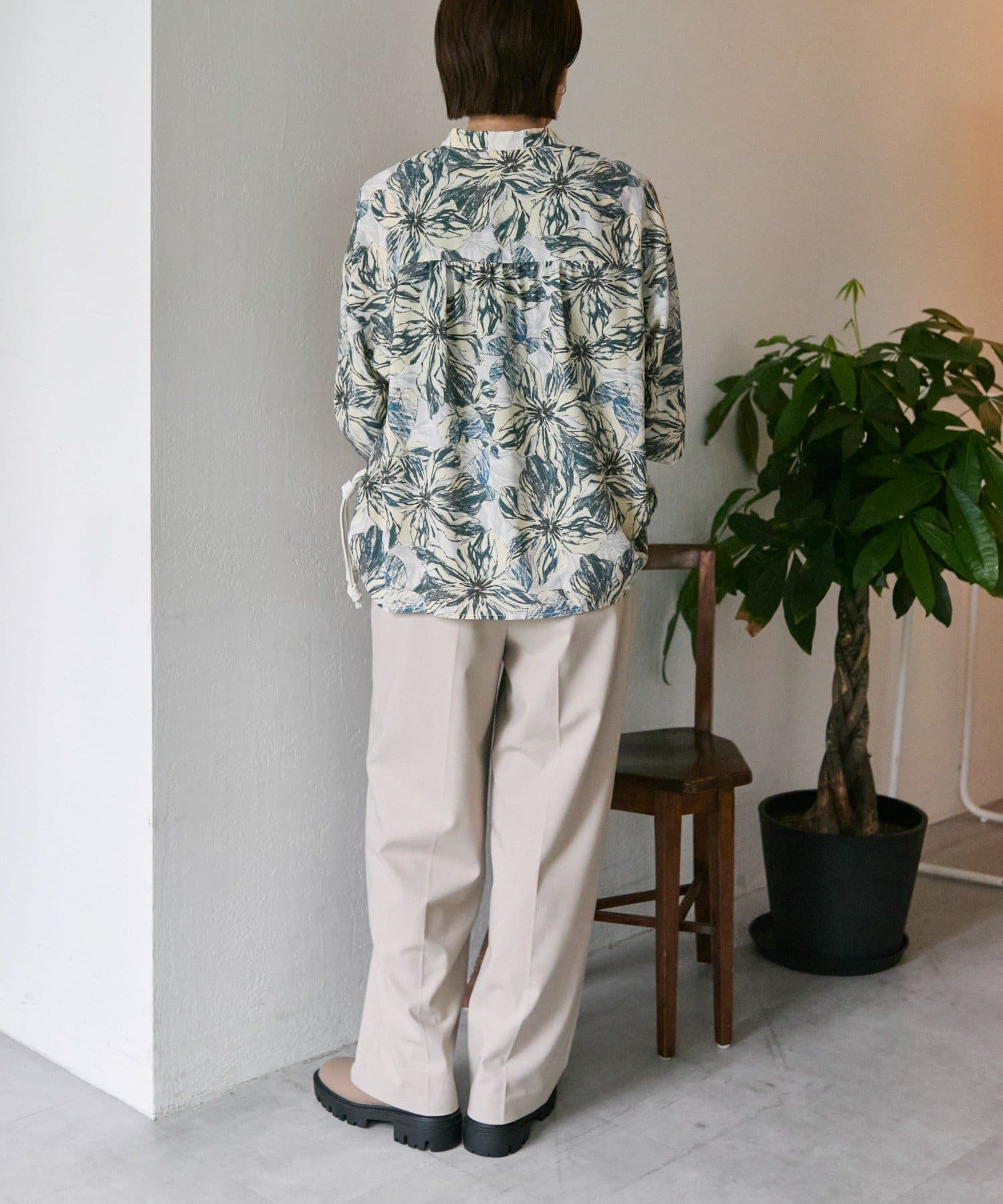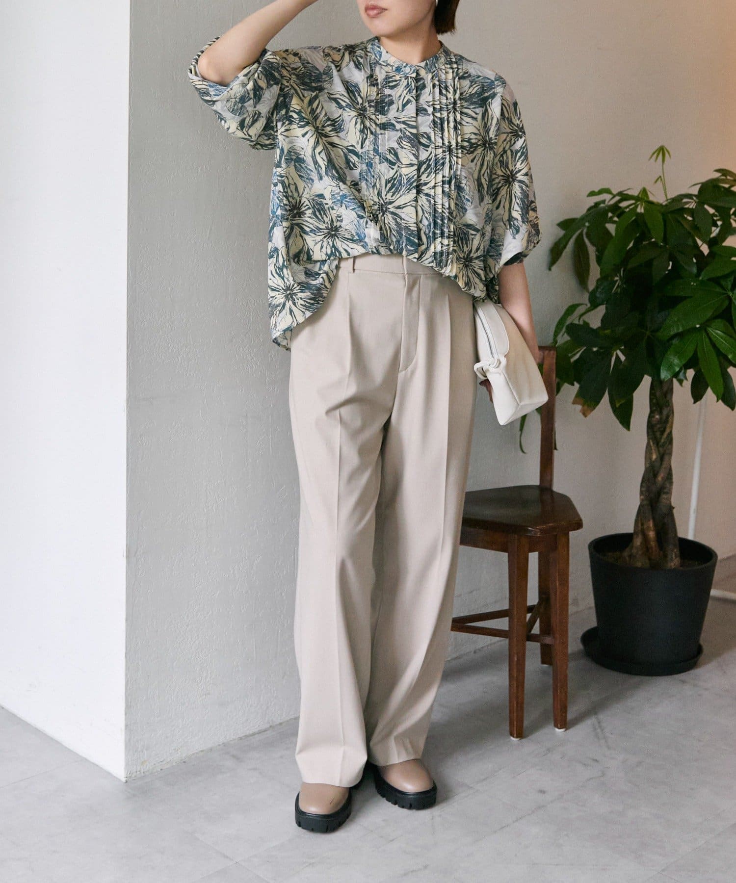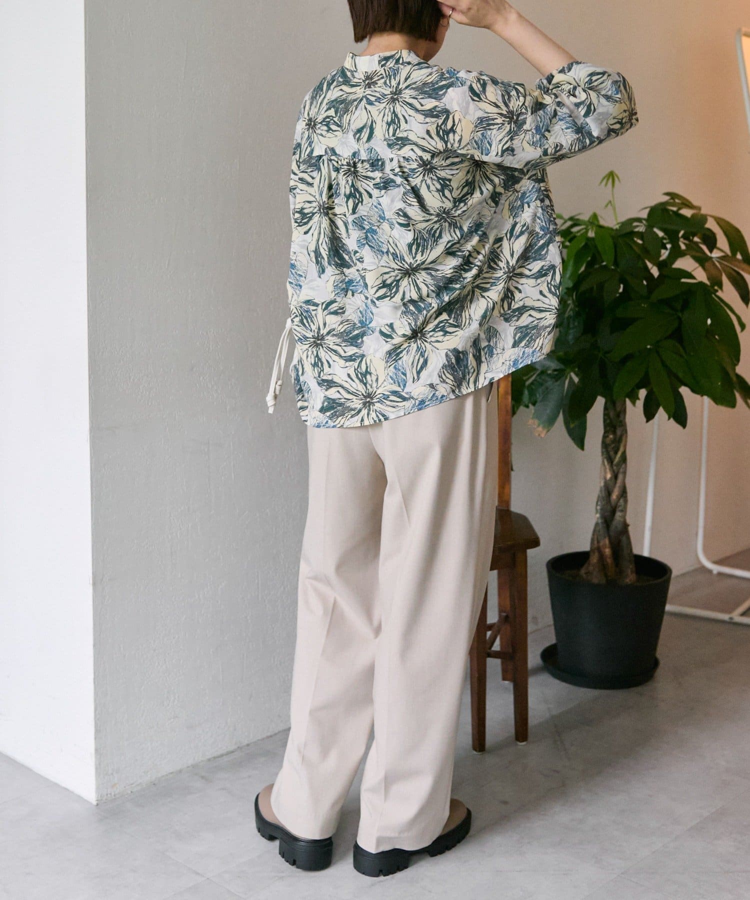 ボタニカル柄/花柄ピンタックブラウス【SUM1 STYLE(スミスタイル)】