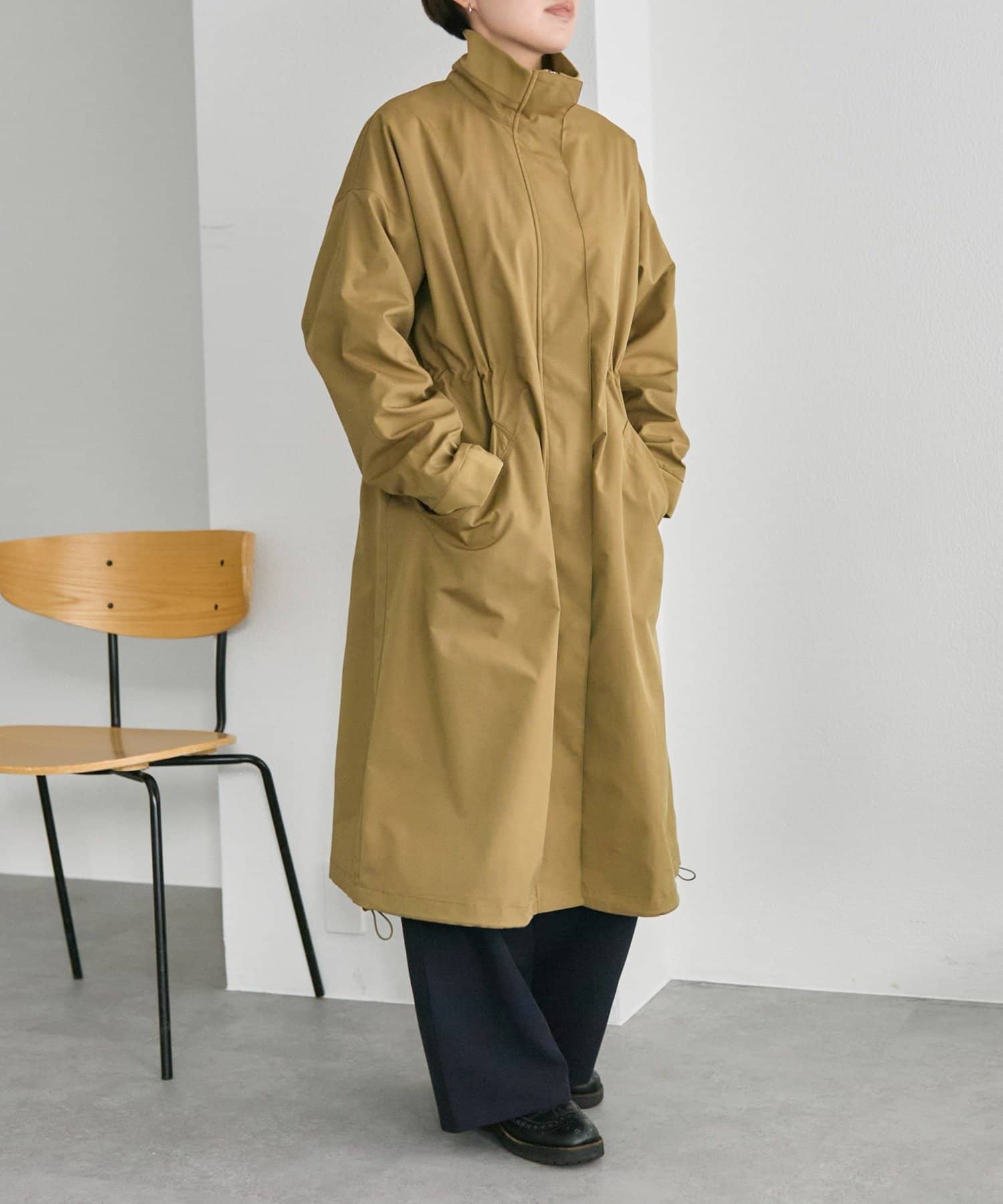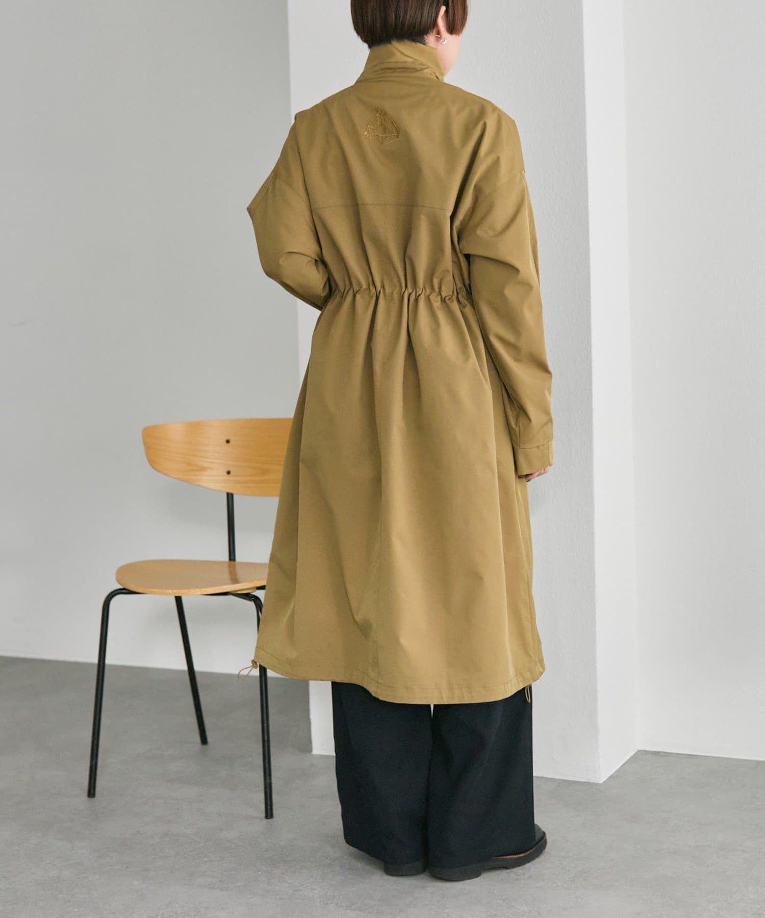 ウエスト部分のドロストを引いてメリハリのあるシルエットで着用するのがおすすめです。