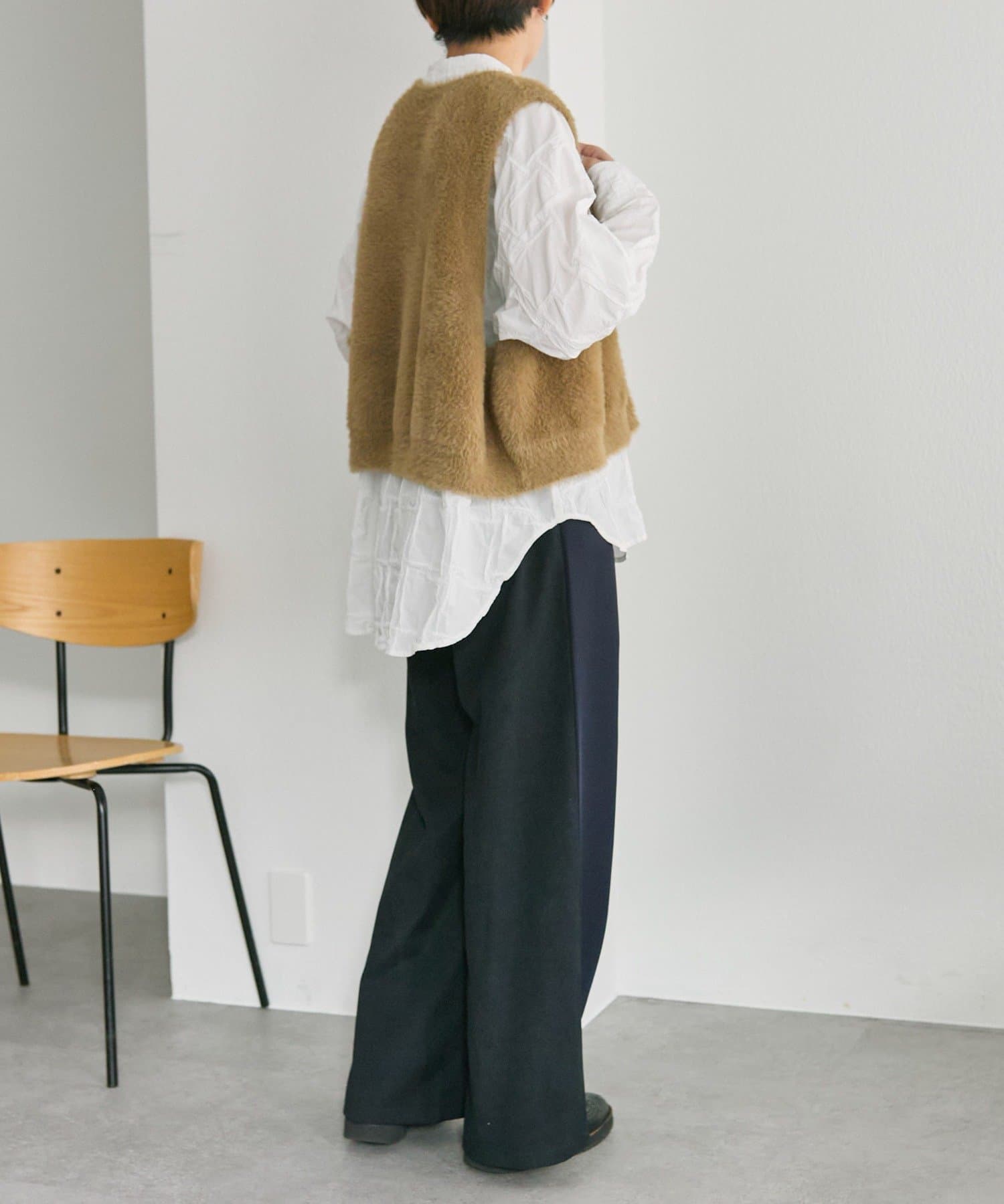 いつものスタイリングの上から羽織るだけでOK。