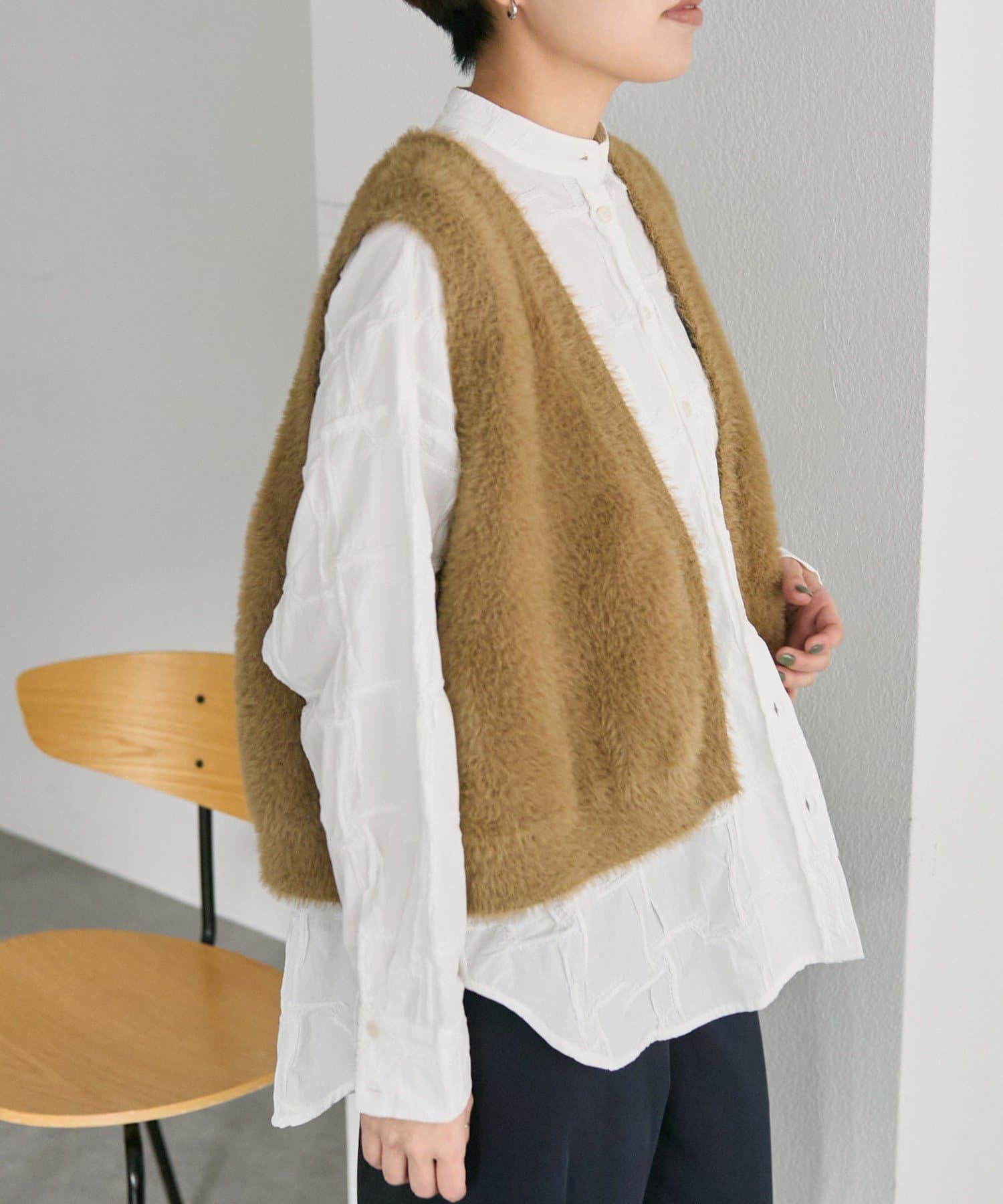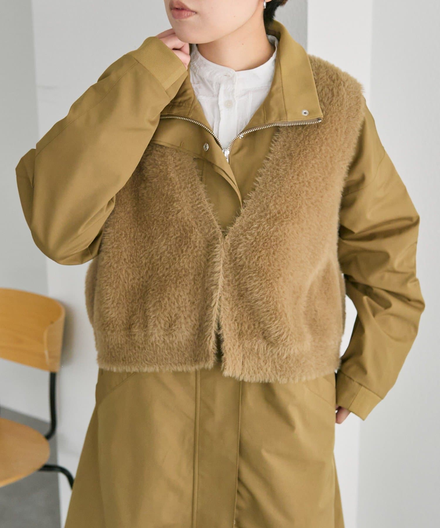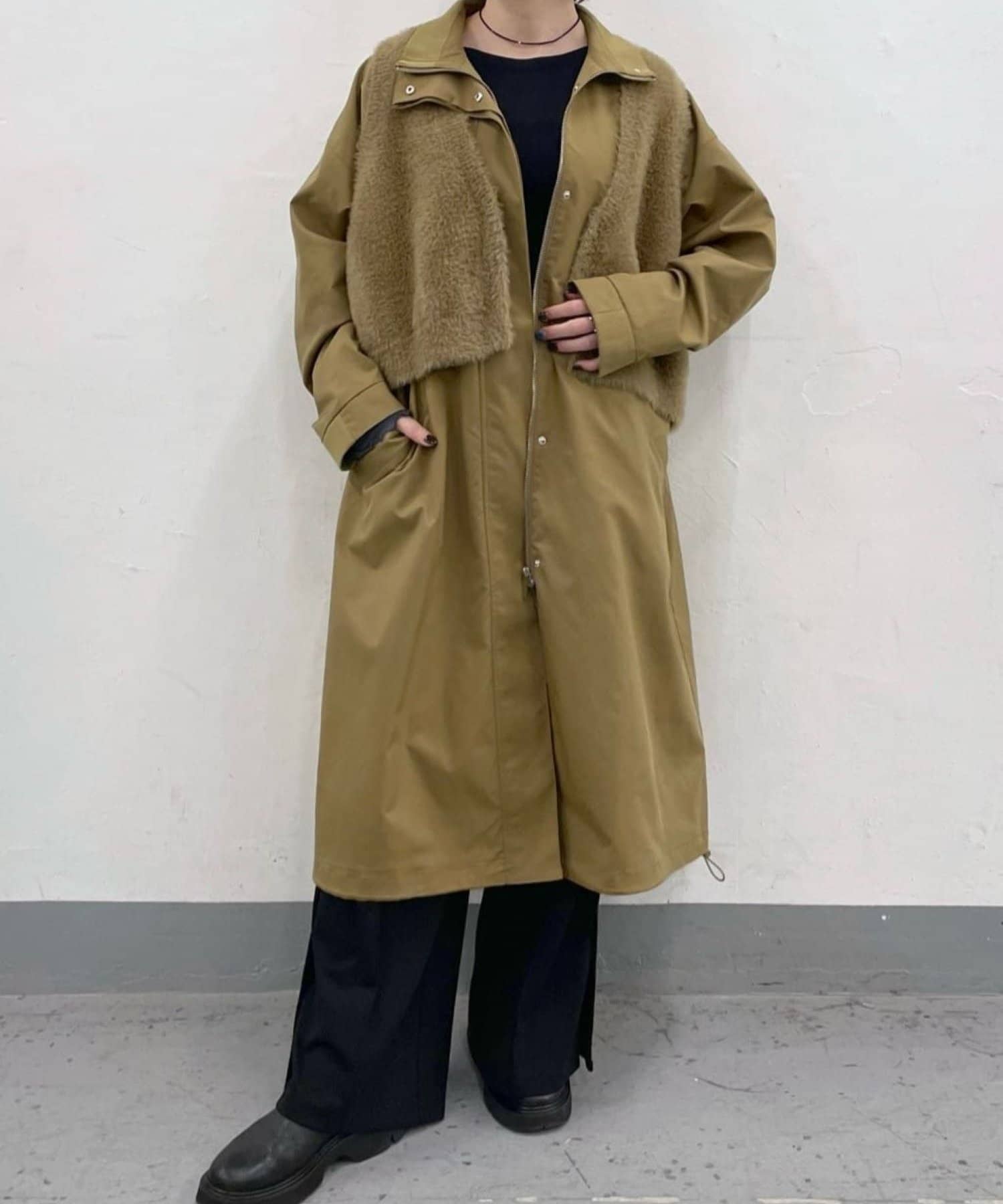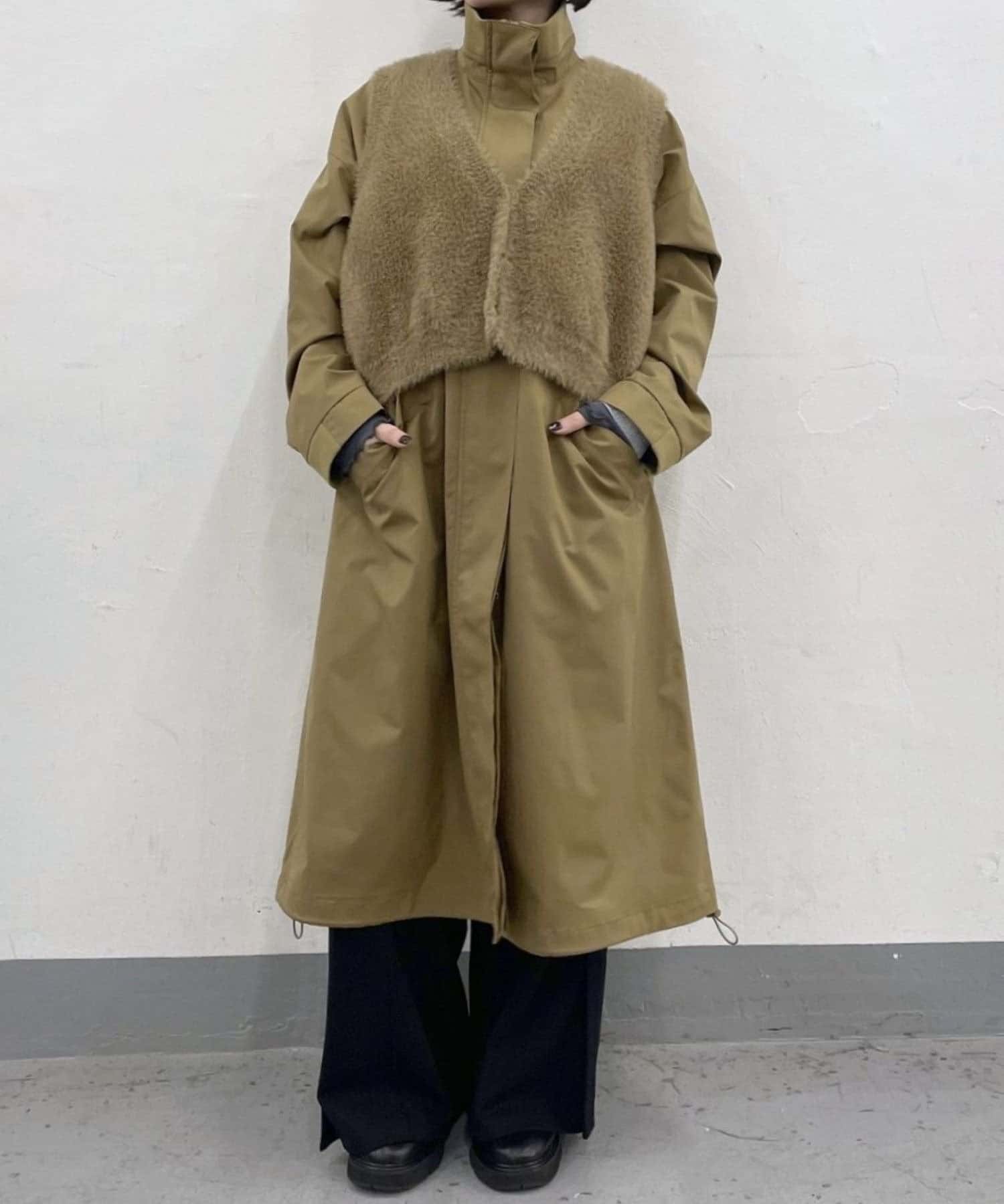 レイヤードコーデが楽しめるファーベスト付きコート
