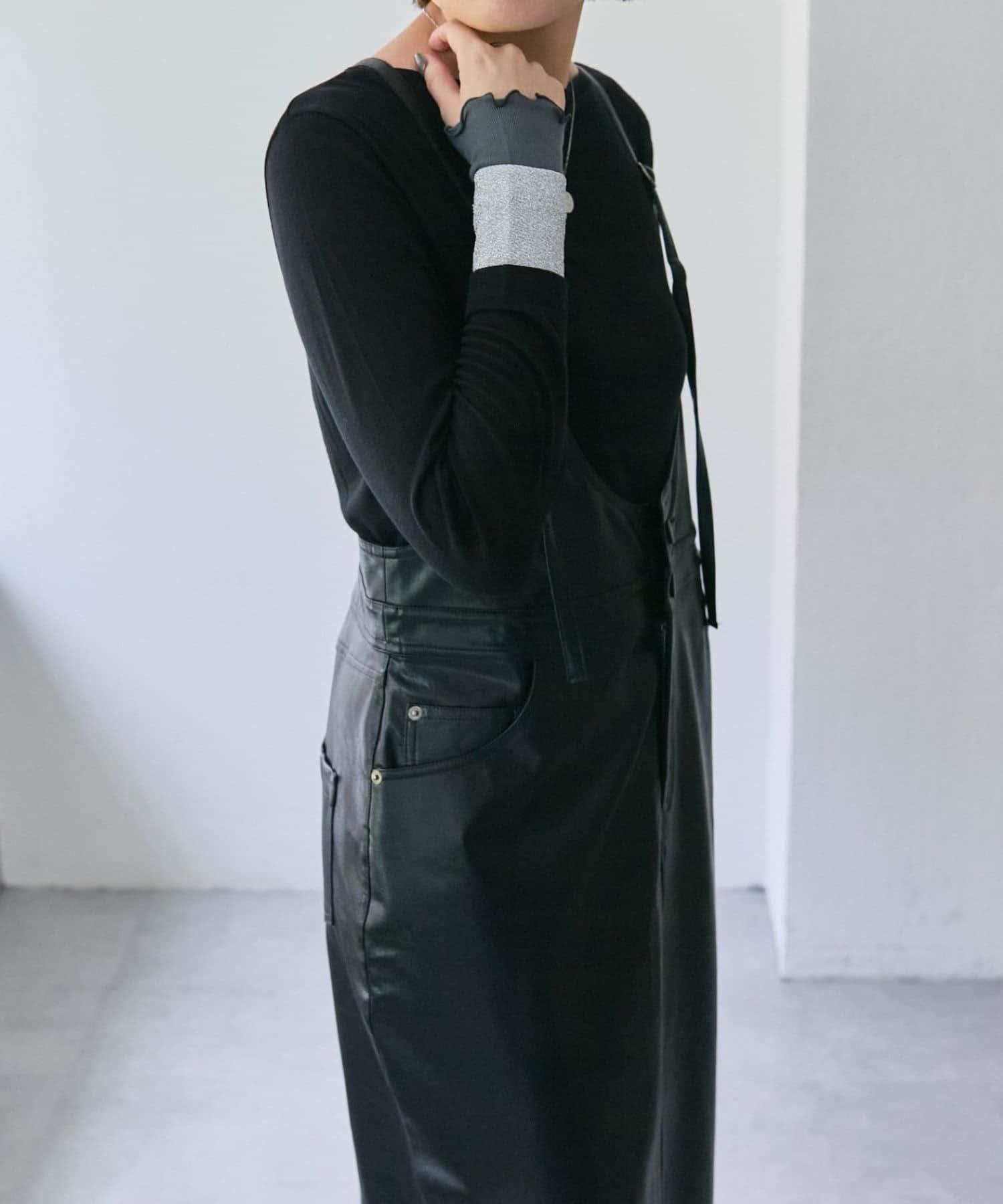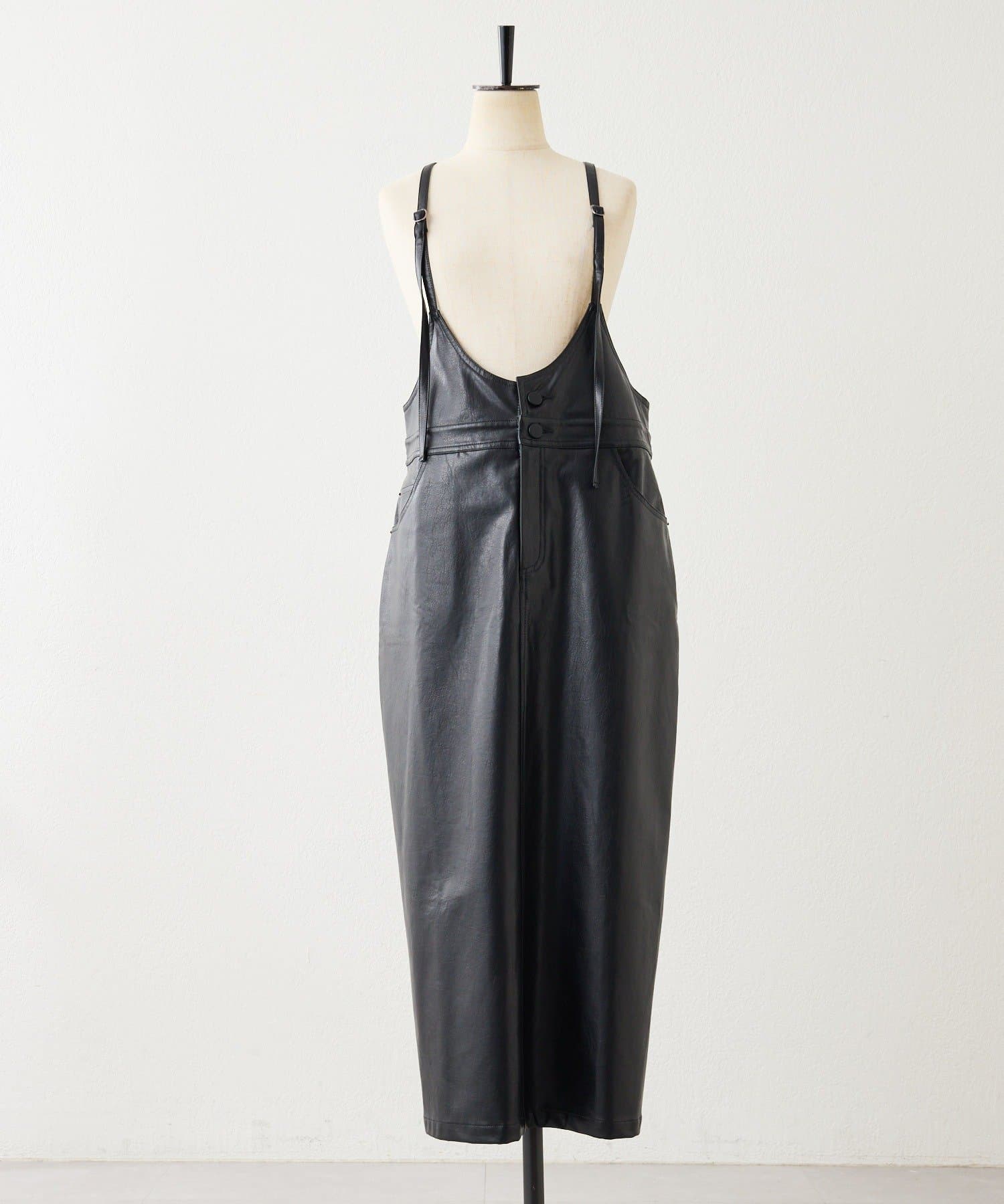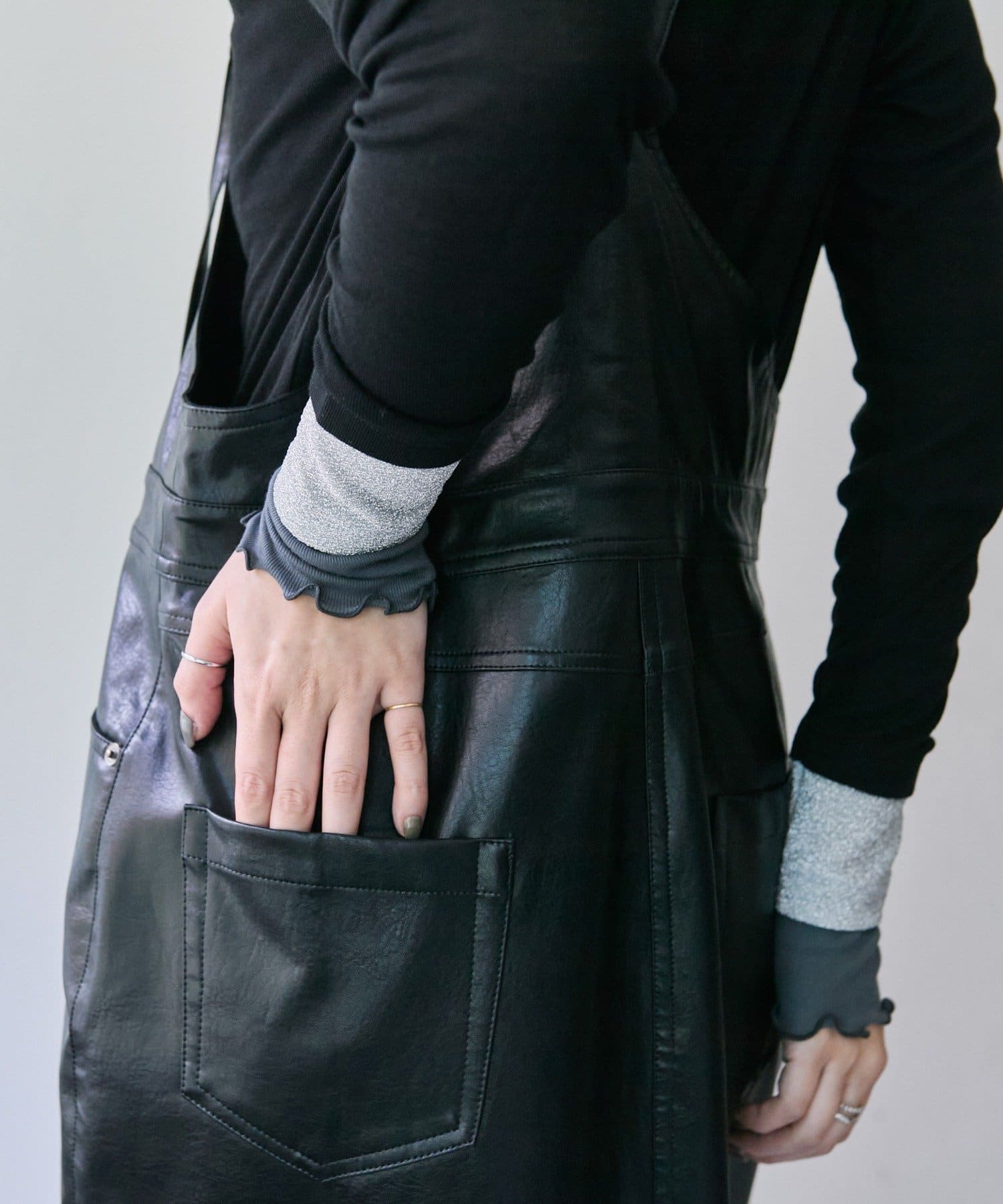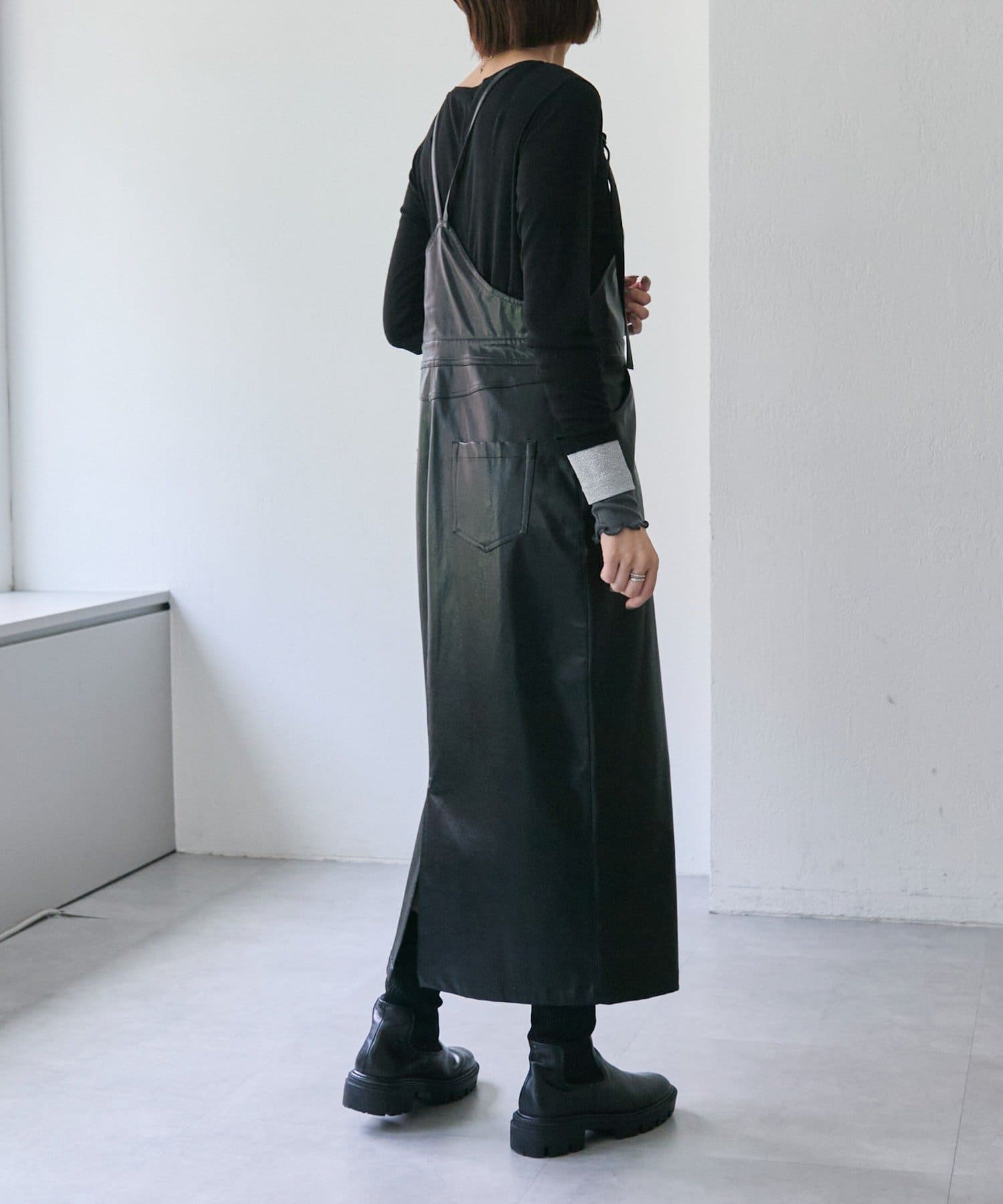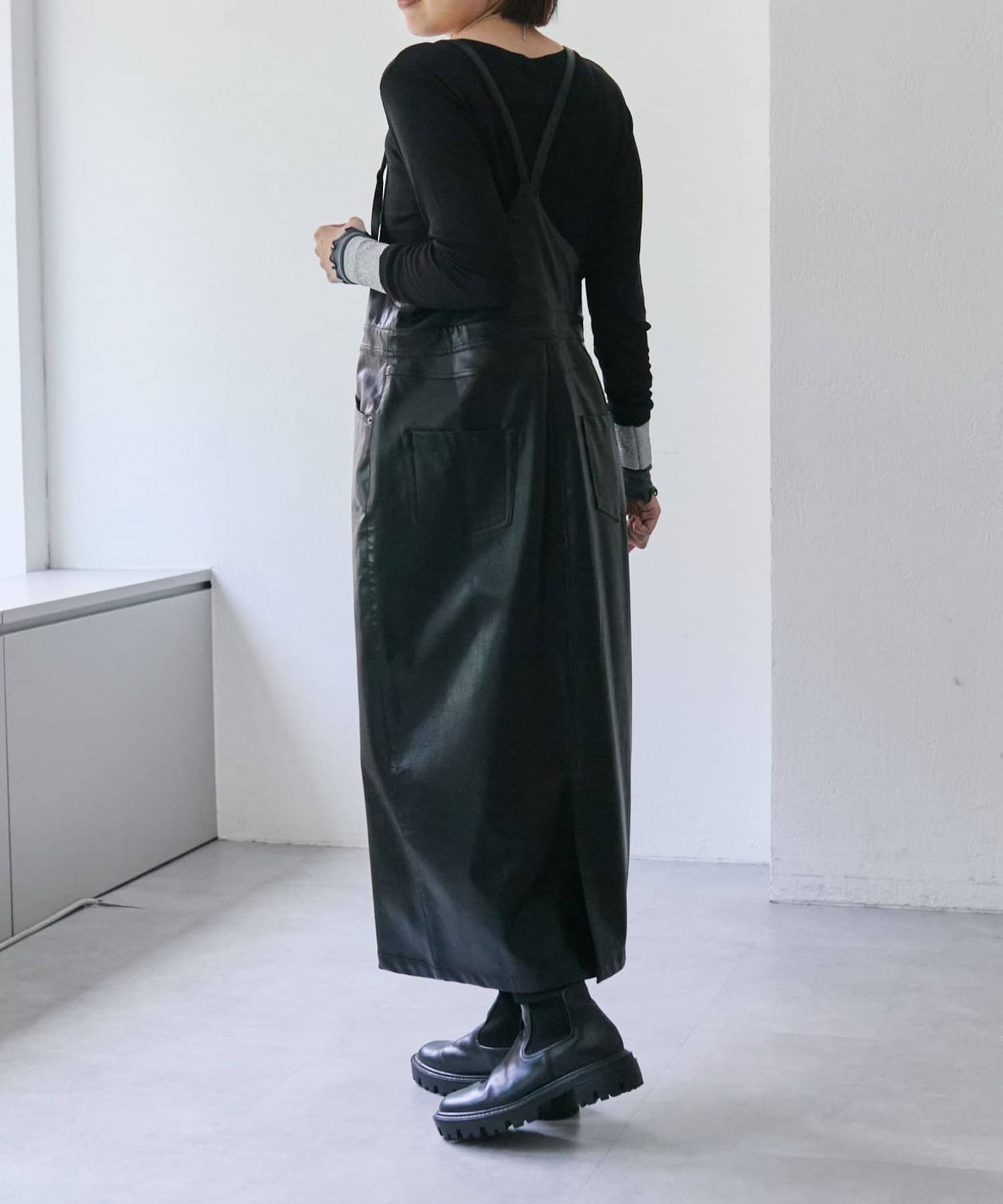 ・光沢感のあるフェイクレザーを使用したジャンスカ