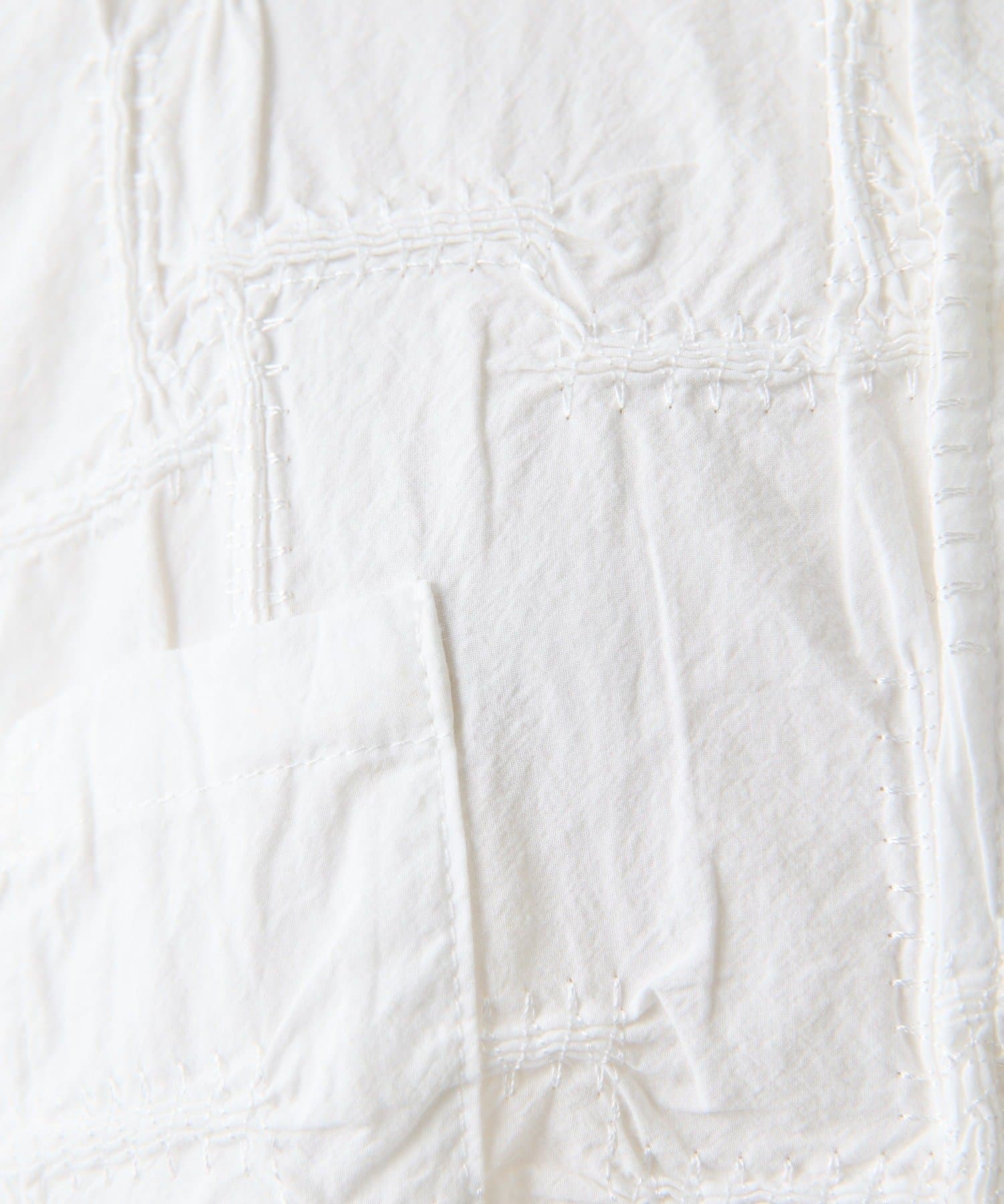 ・ギャザーを寄せて縫い付けたユニークなブロック模様が目を惹く1枚