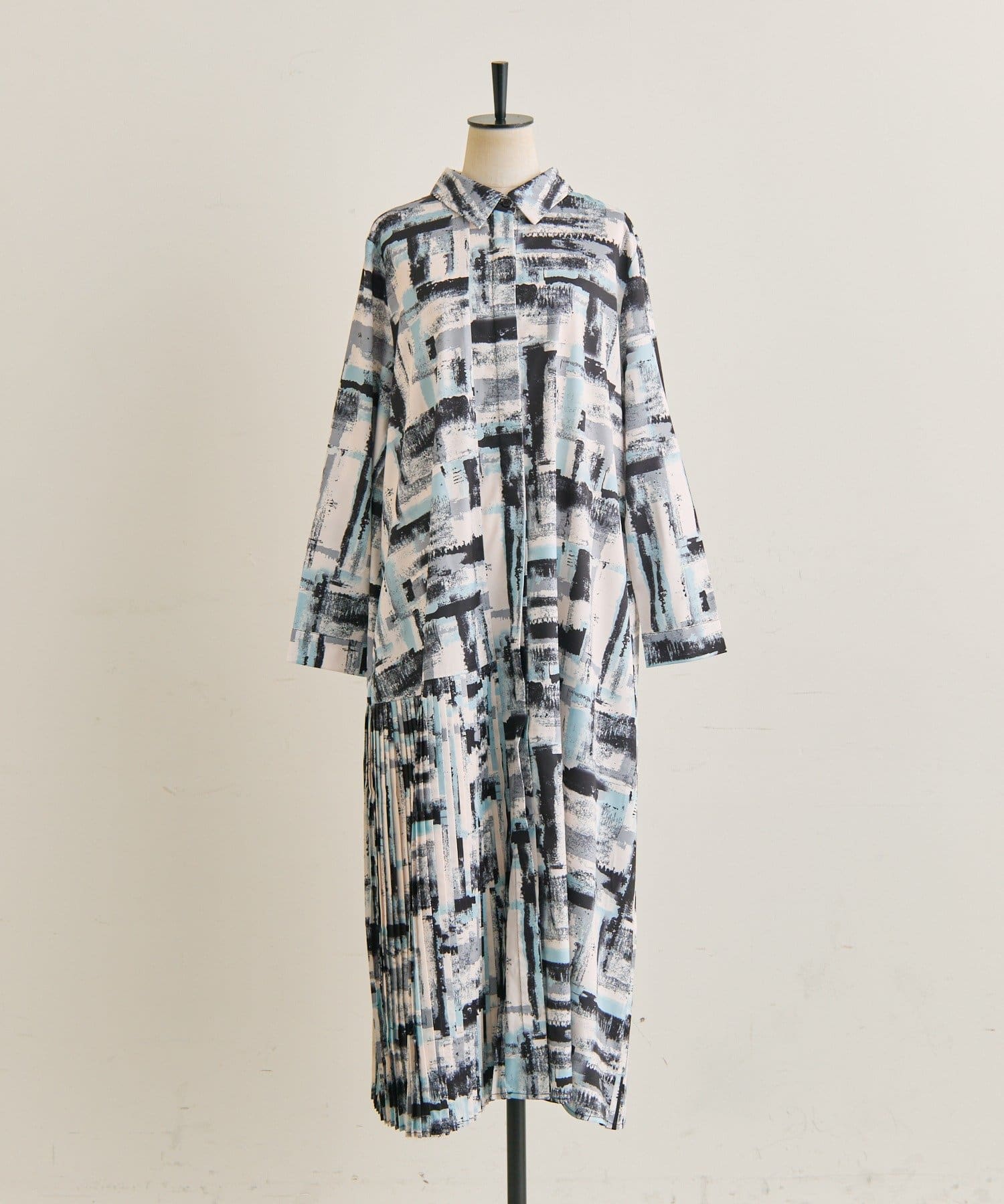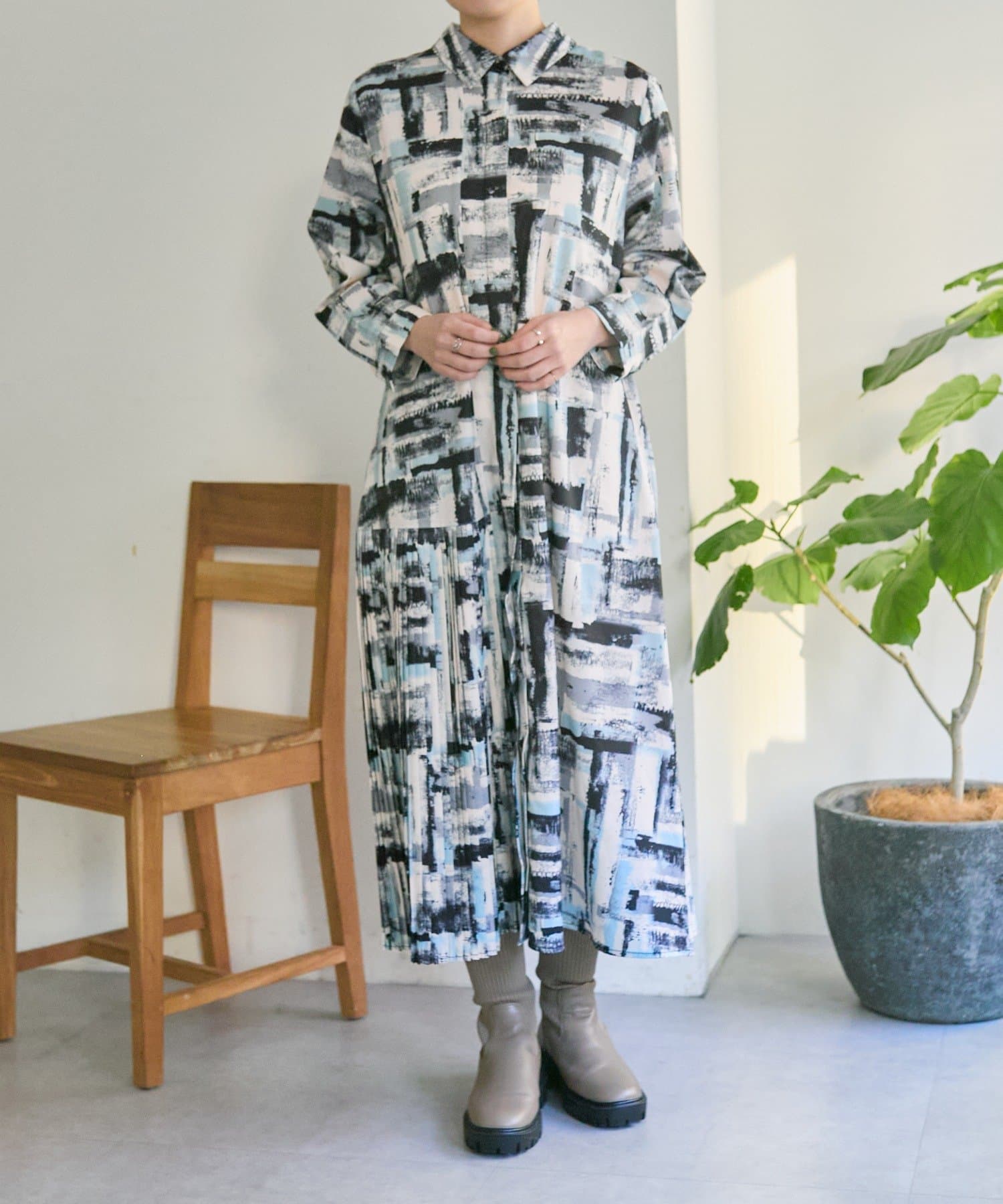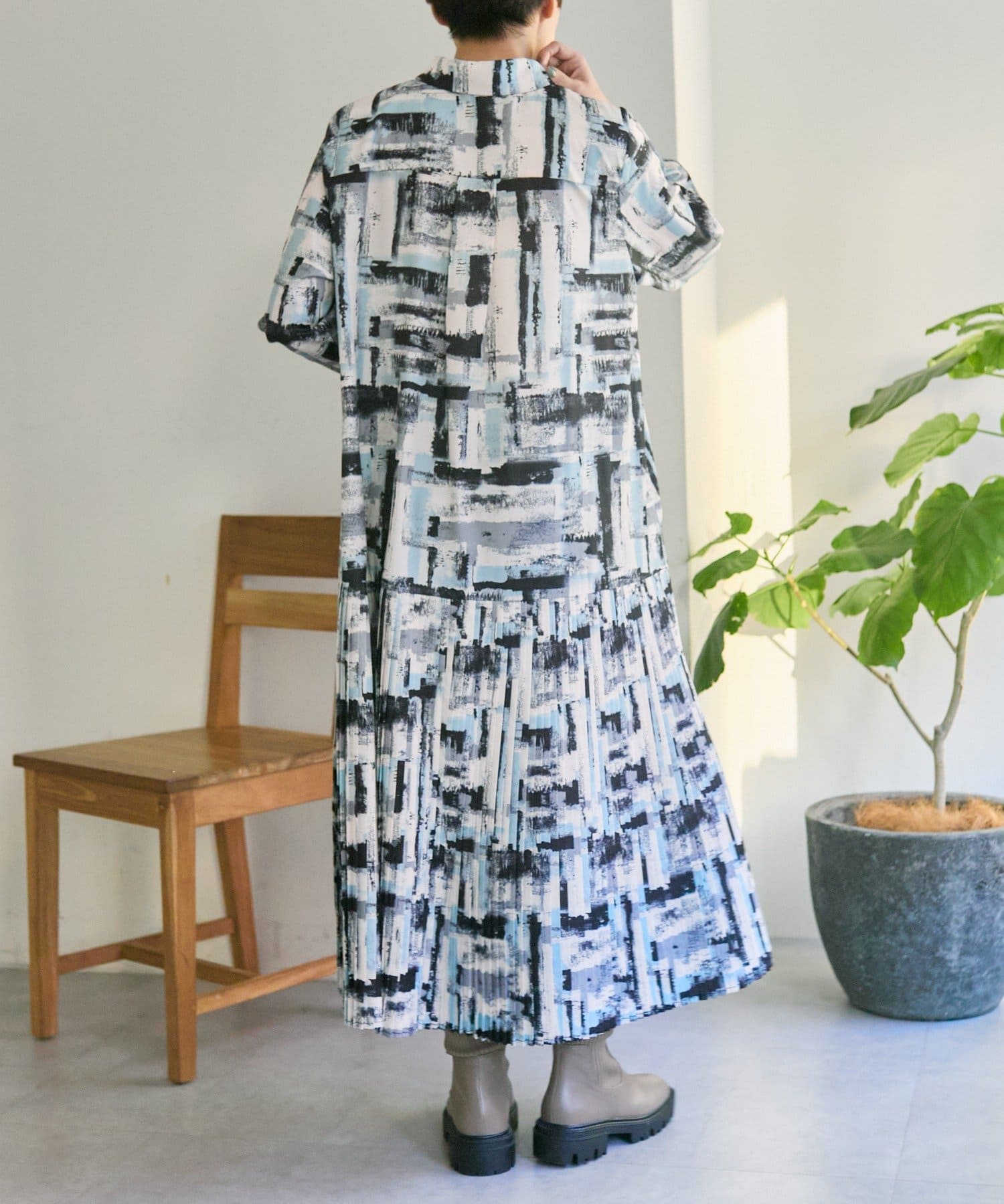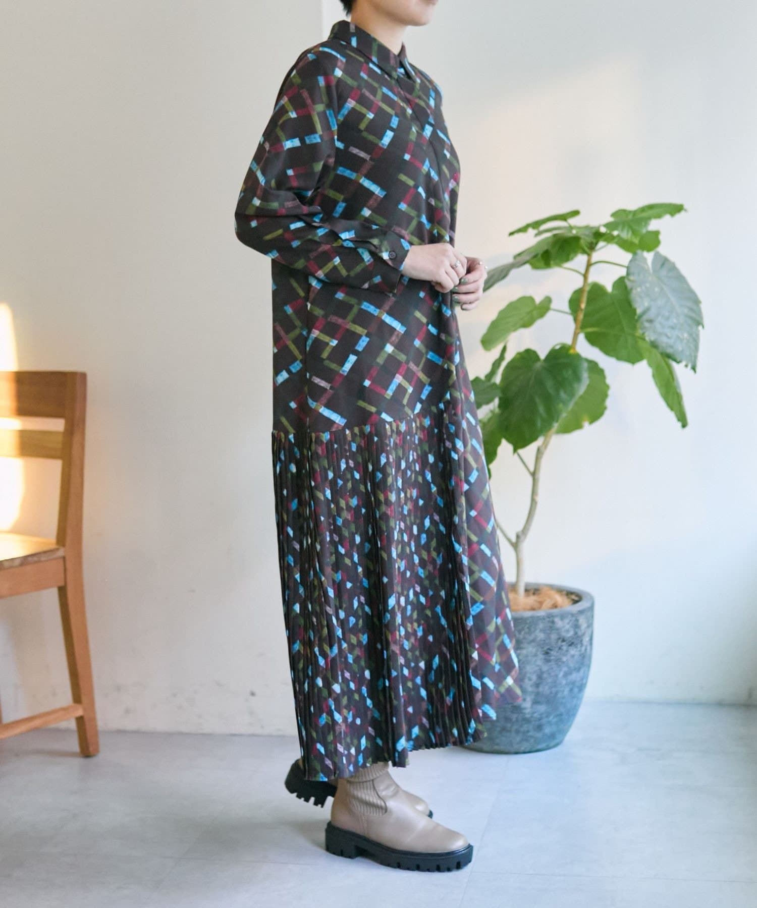 《オケージョン/1枚で決まる/総柄》襟付きプリーツワンピース【SUM1 STYLE(スミスタイル)】