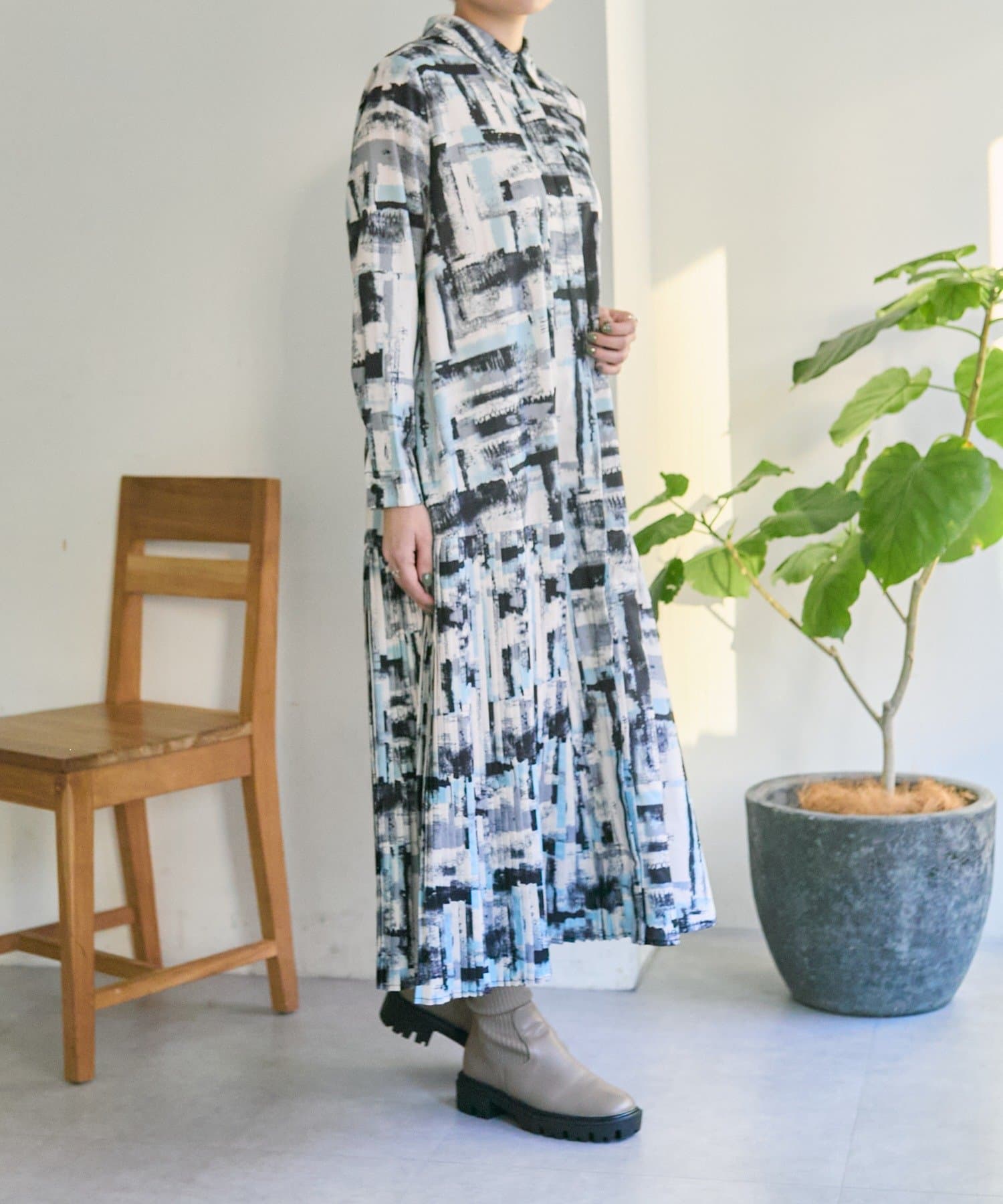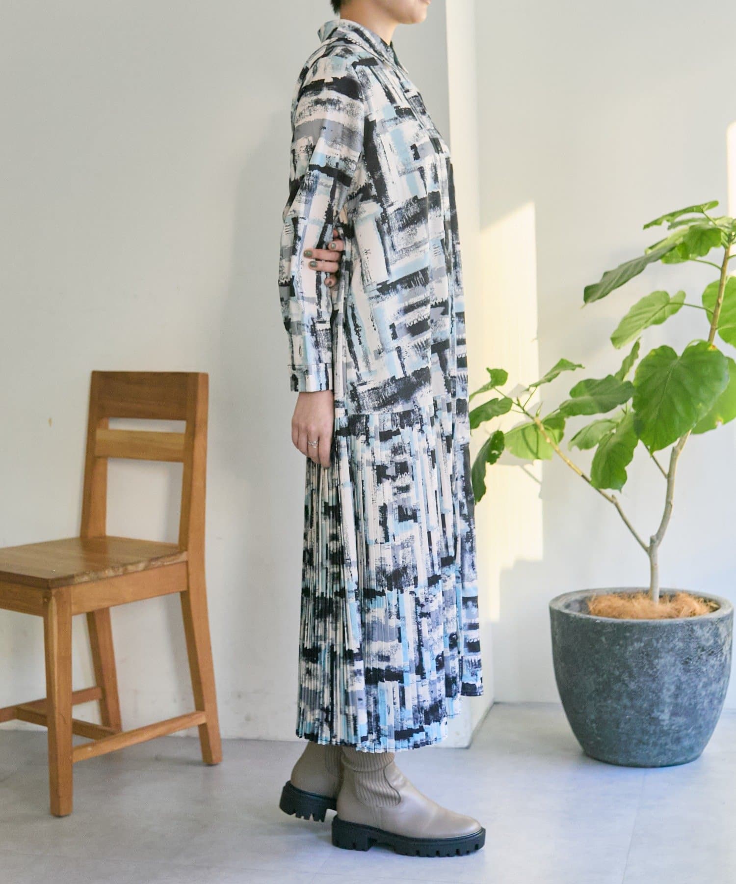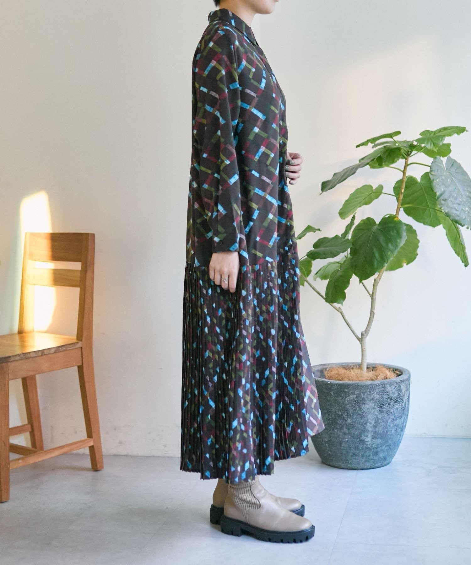 ・earでは定番のプリーツワンピシリーズに襟付きデザイン登場