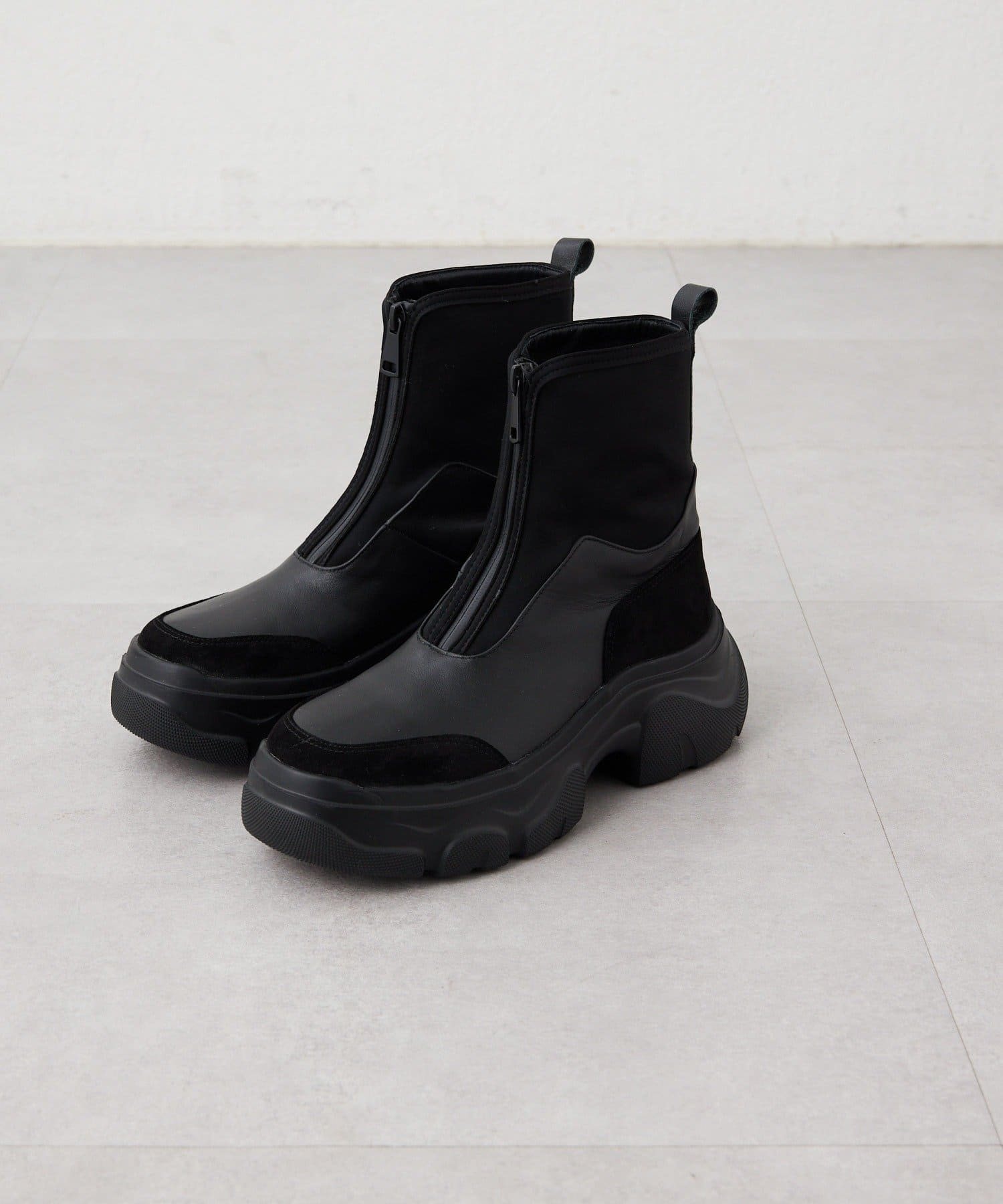 異素材の組み合わせがおしゃれで、厚底でスタイルアップも叶います。
