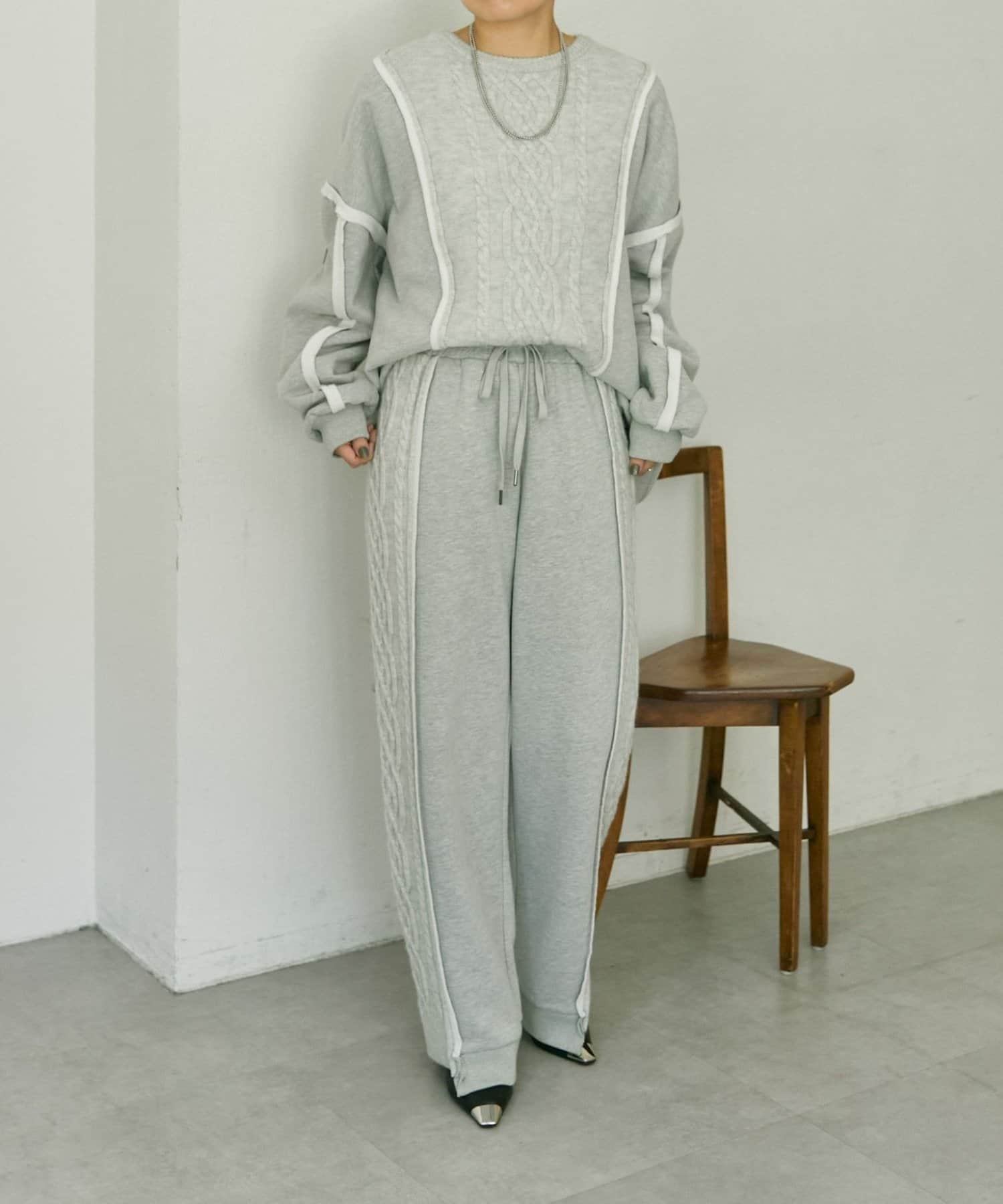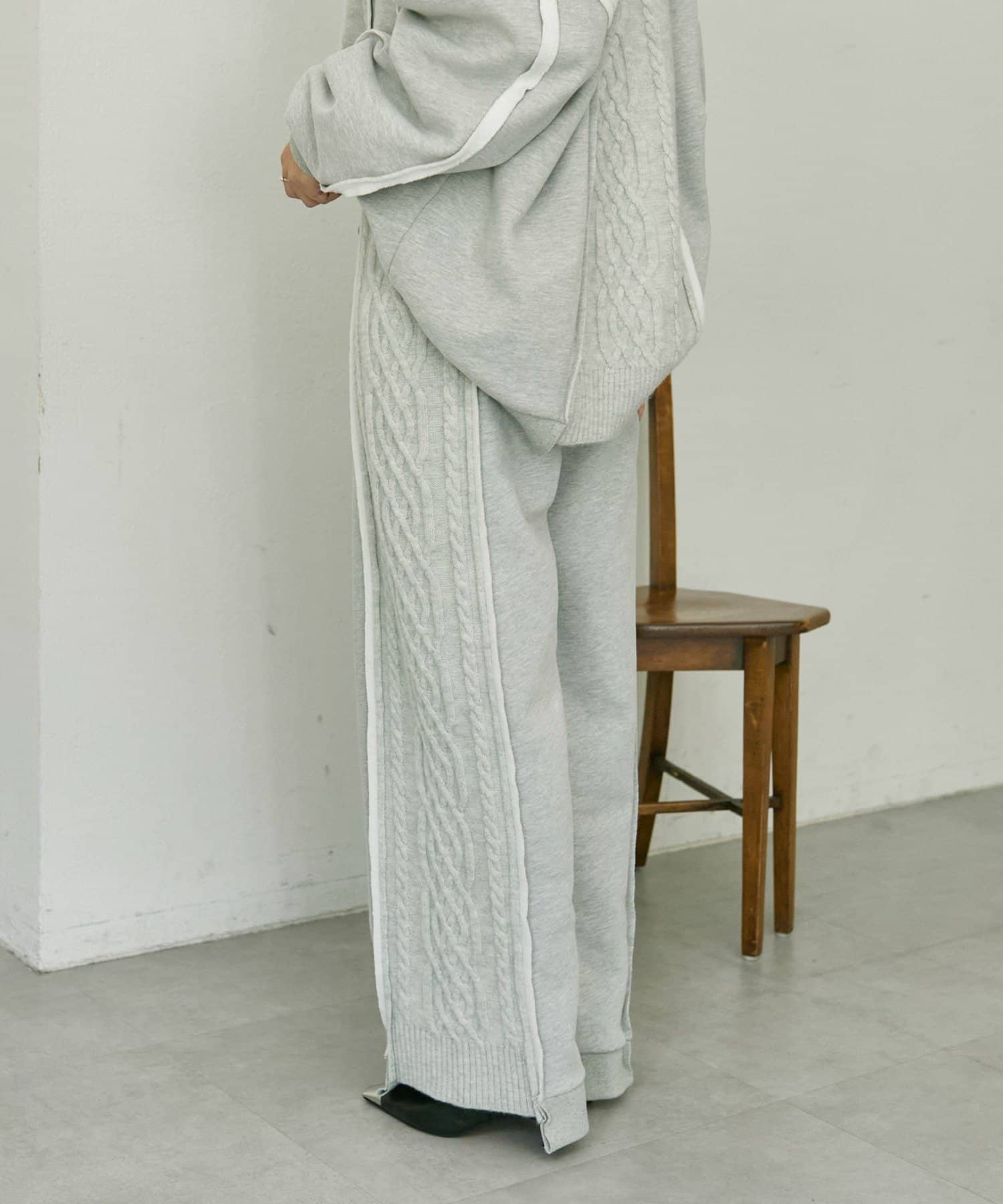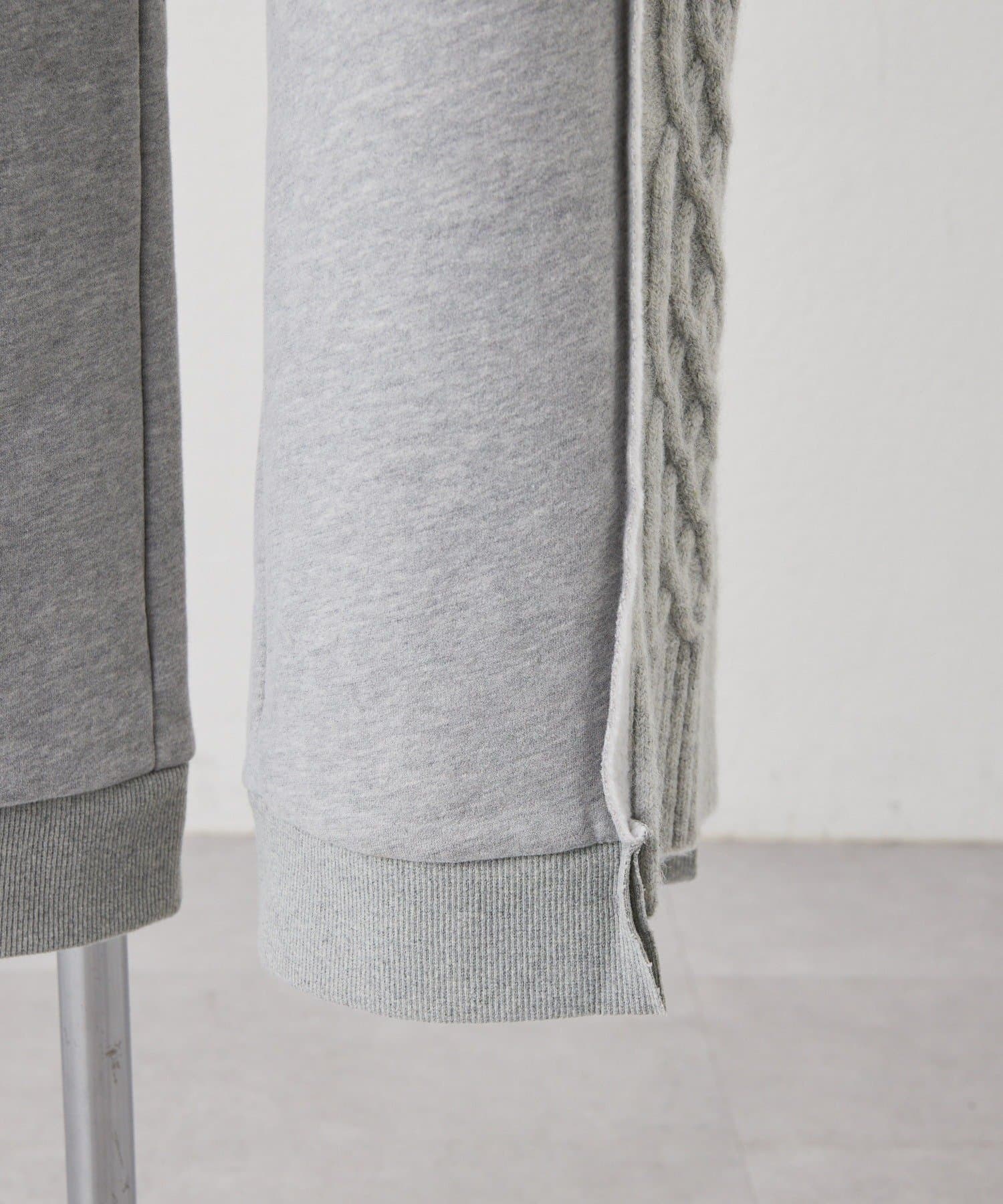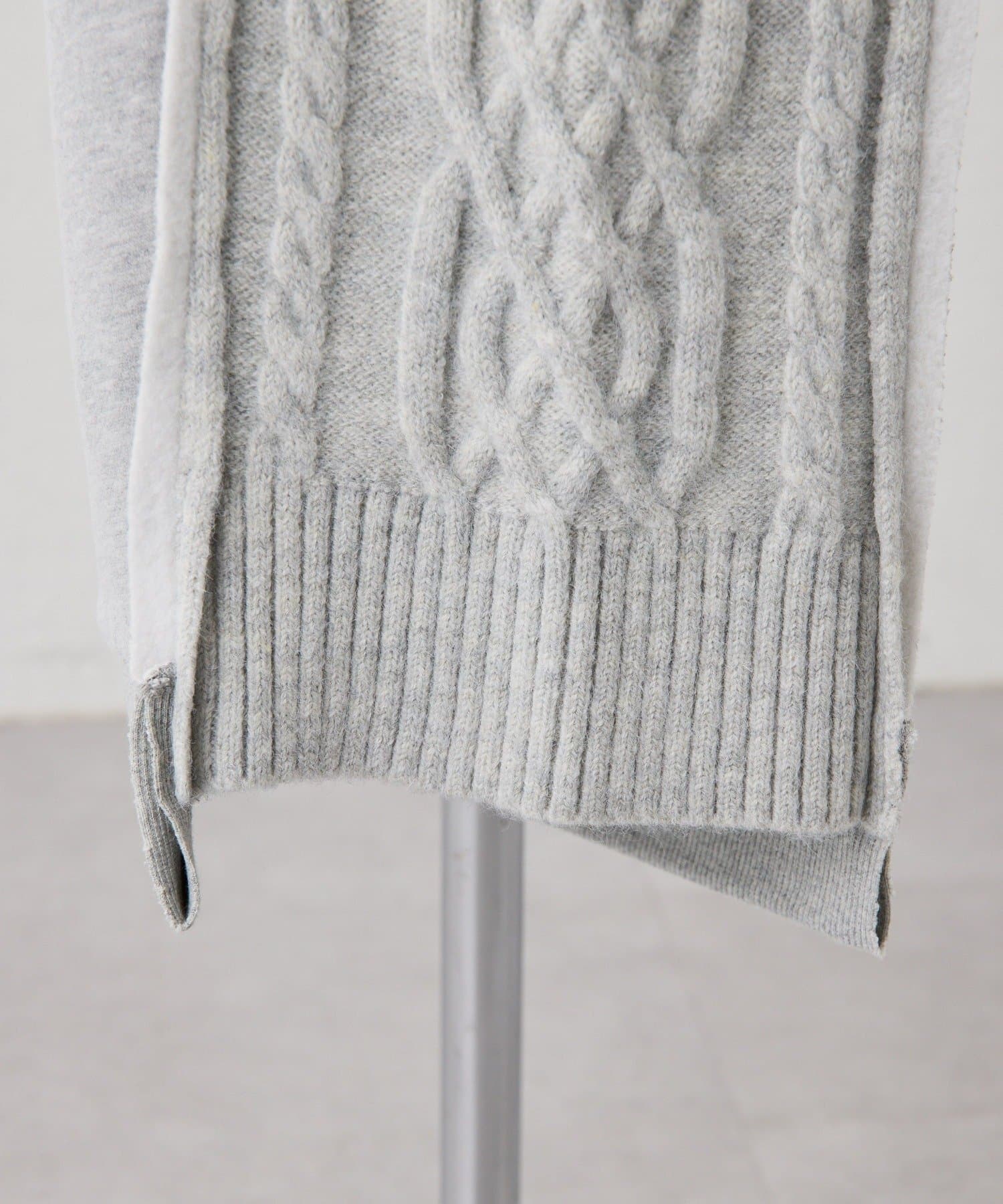・スウェット生地にケーブル編みニット生地をドッキングしたデザイン