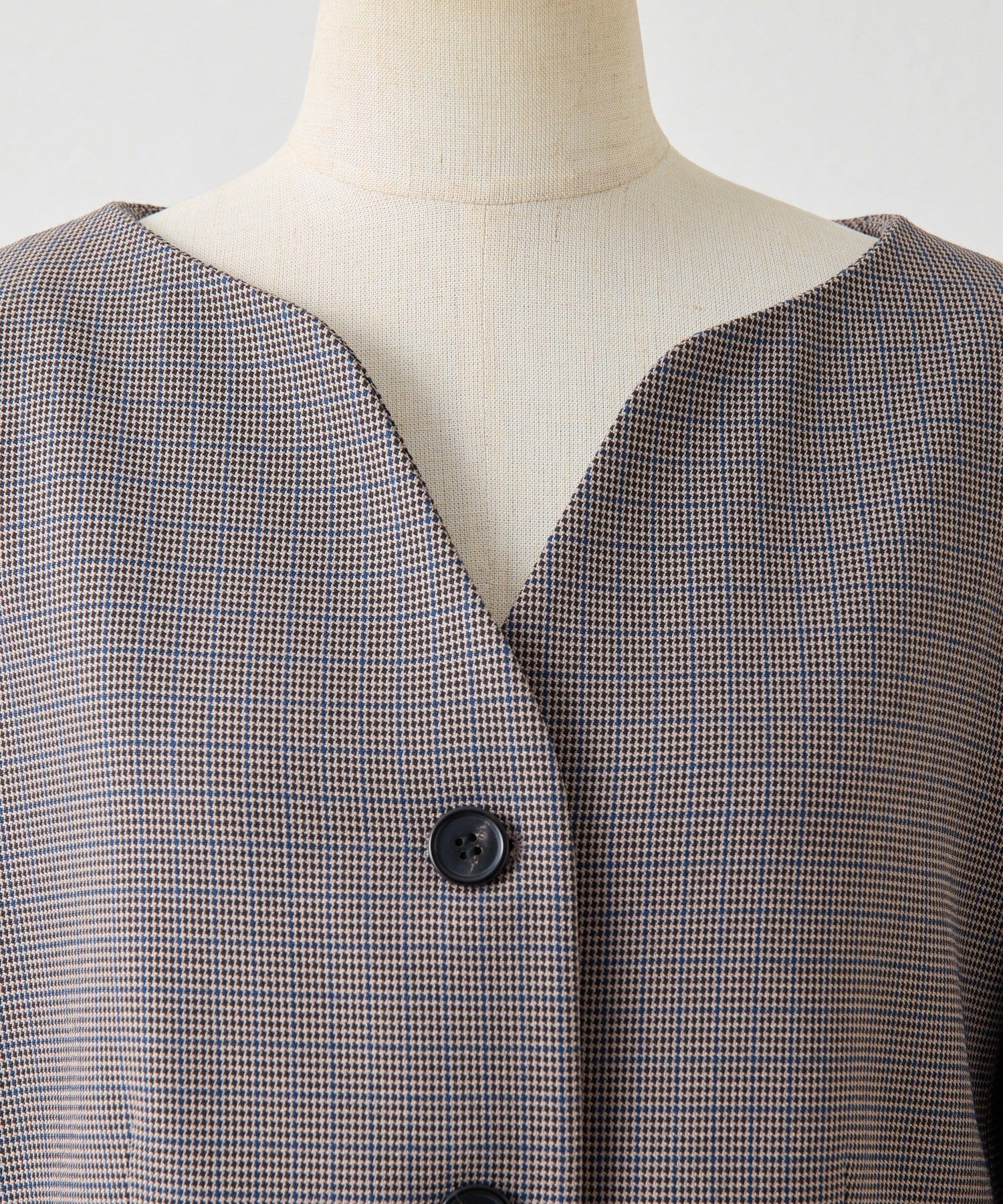 ・首元のデザインが印象的で、Vネックでお顔周りすっきり見せつつも