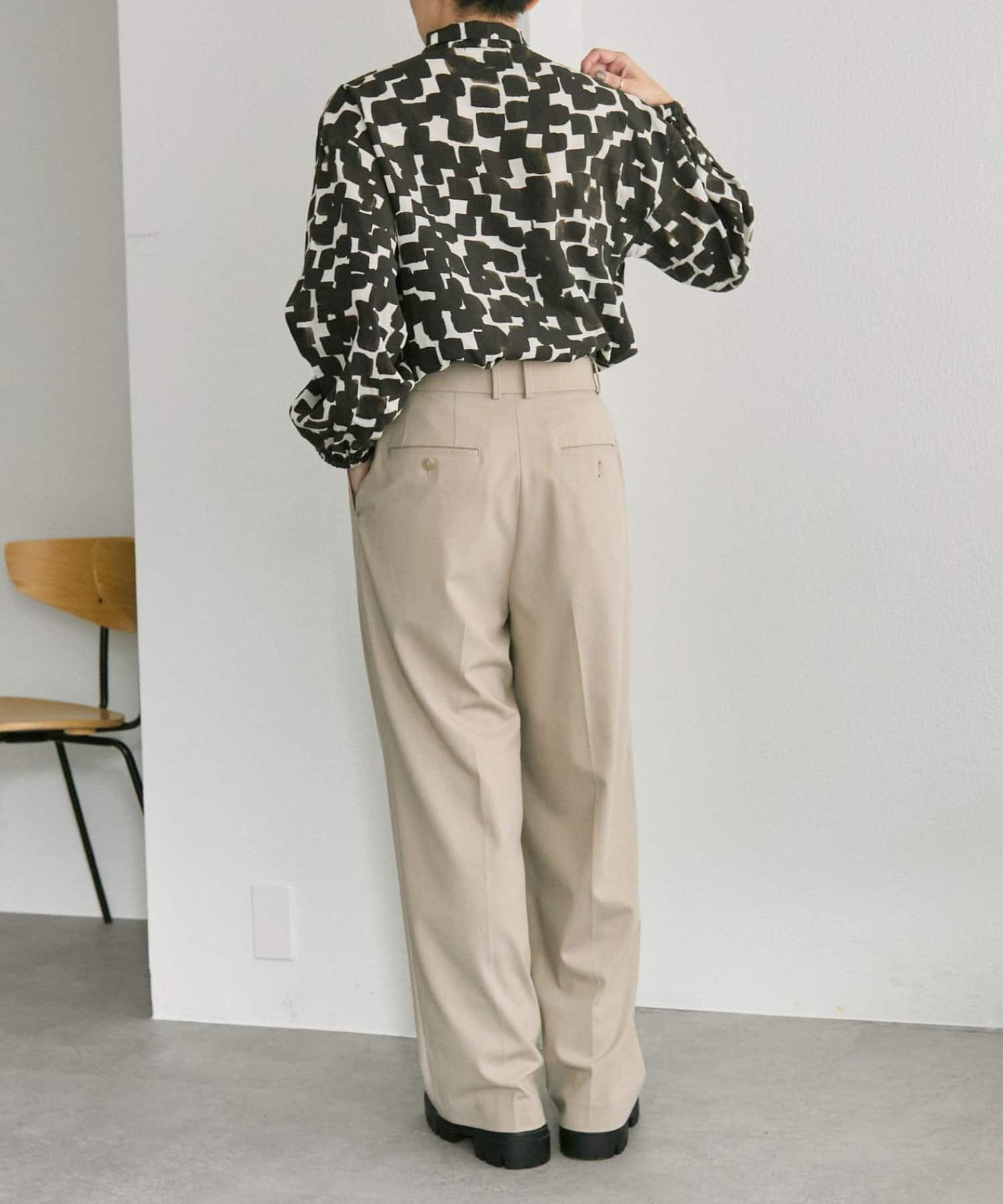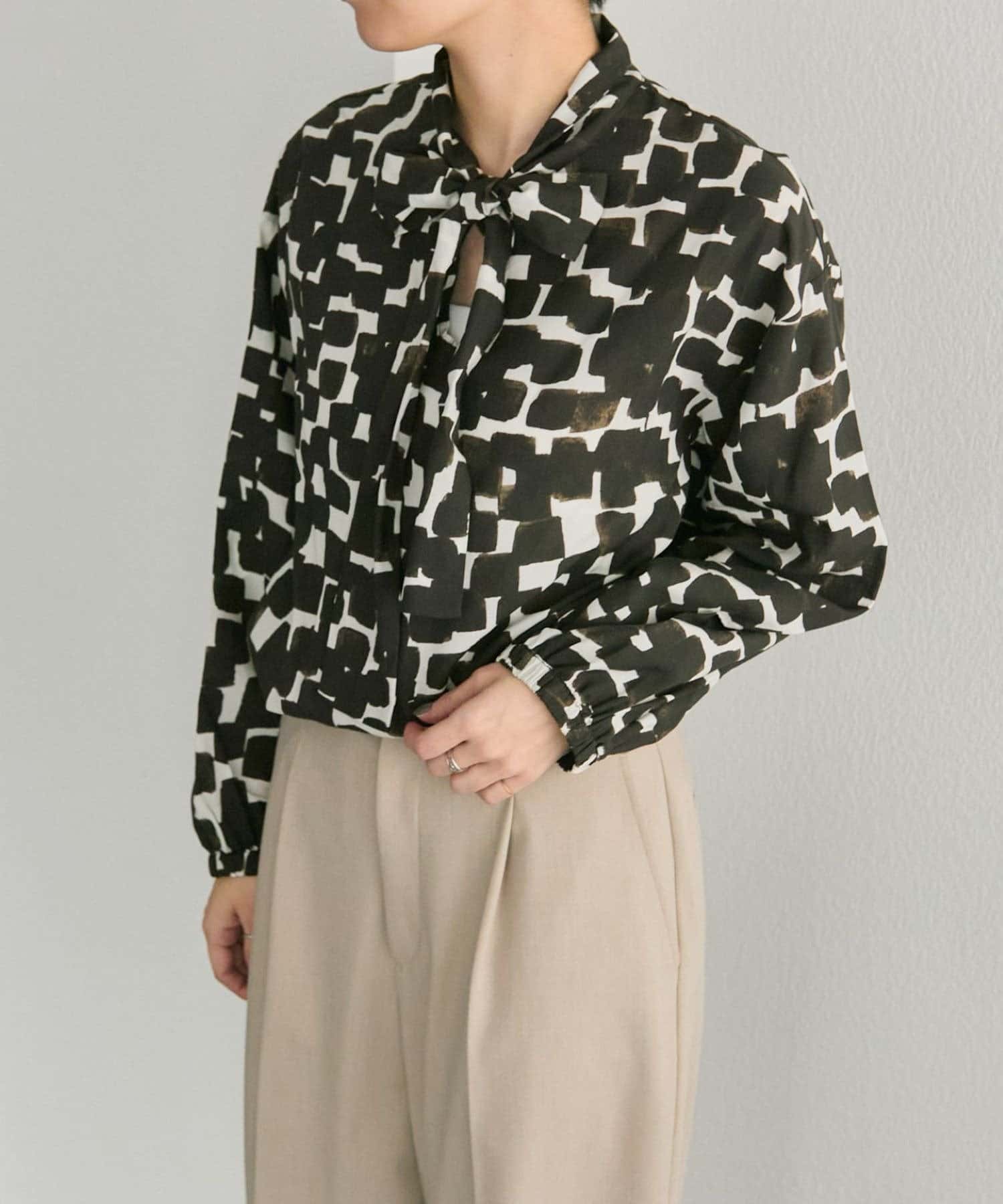 ・首元のリボンタイが目を引く、フェミニンな印象のブラウス