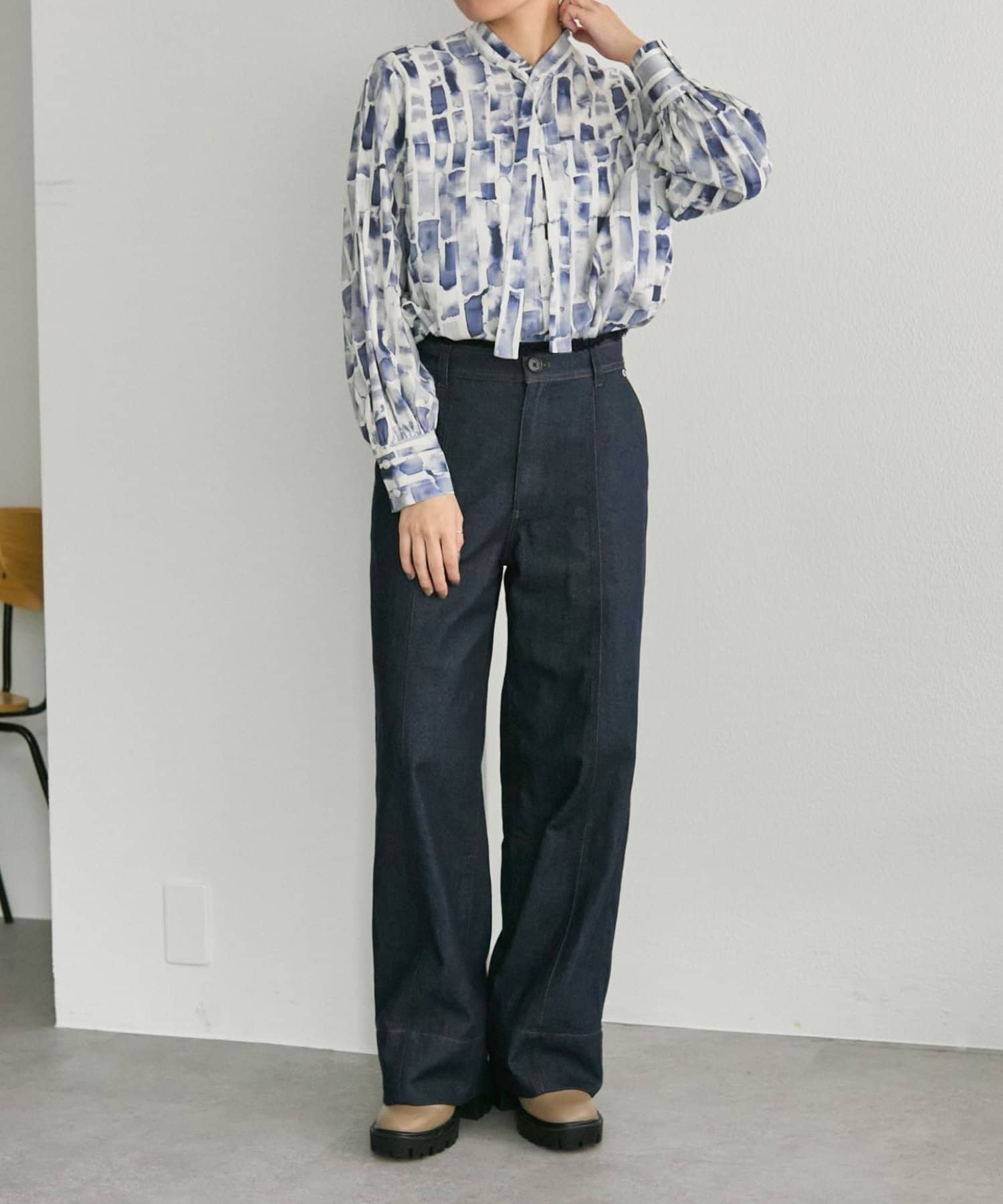 ユニークなデザインニットや総柄のブラウスなど幅広く合わせていただけますし