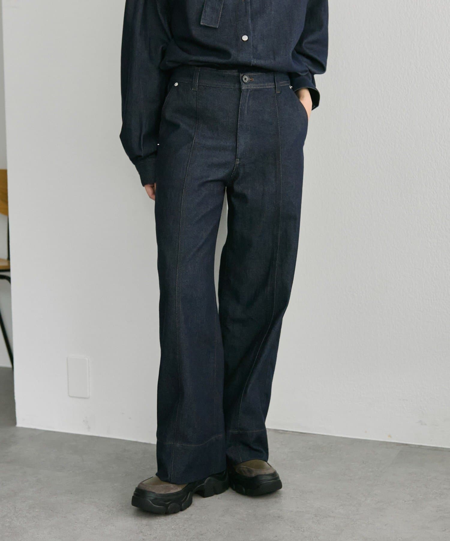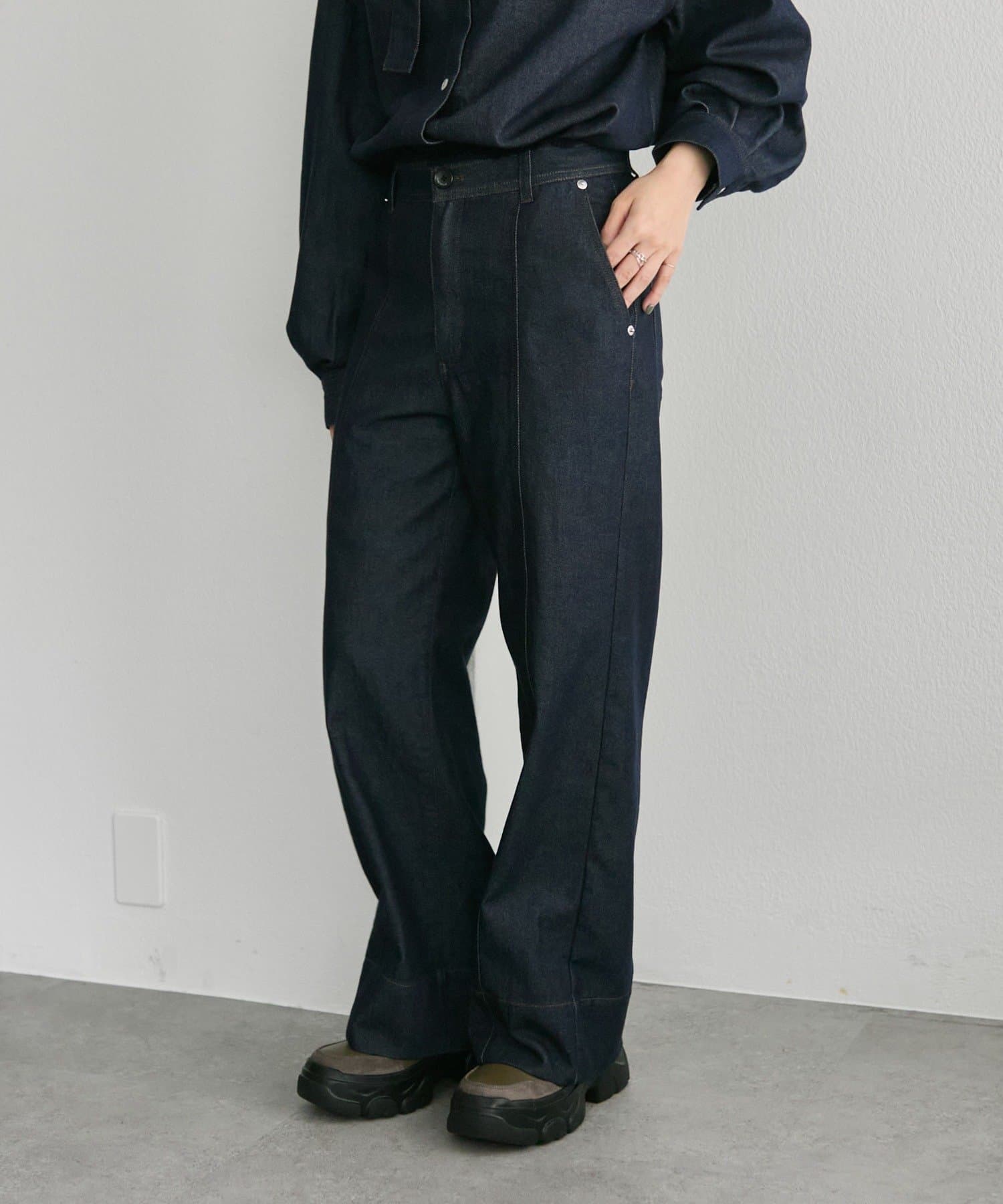 《セットアップ着用も可》センターラインデニムパンツ【SUM1 STYLE(スミスタイル)】