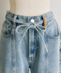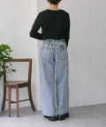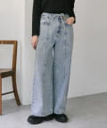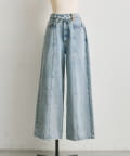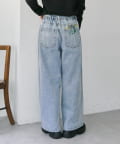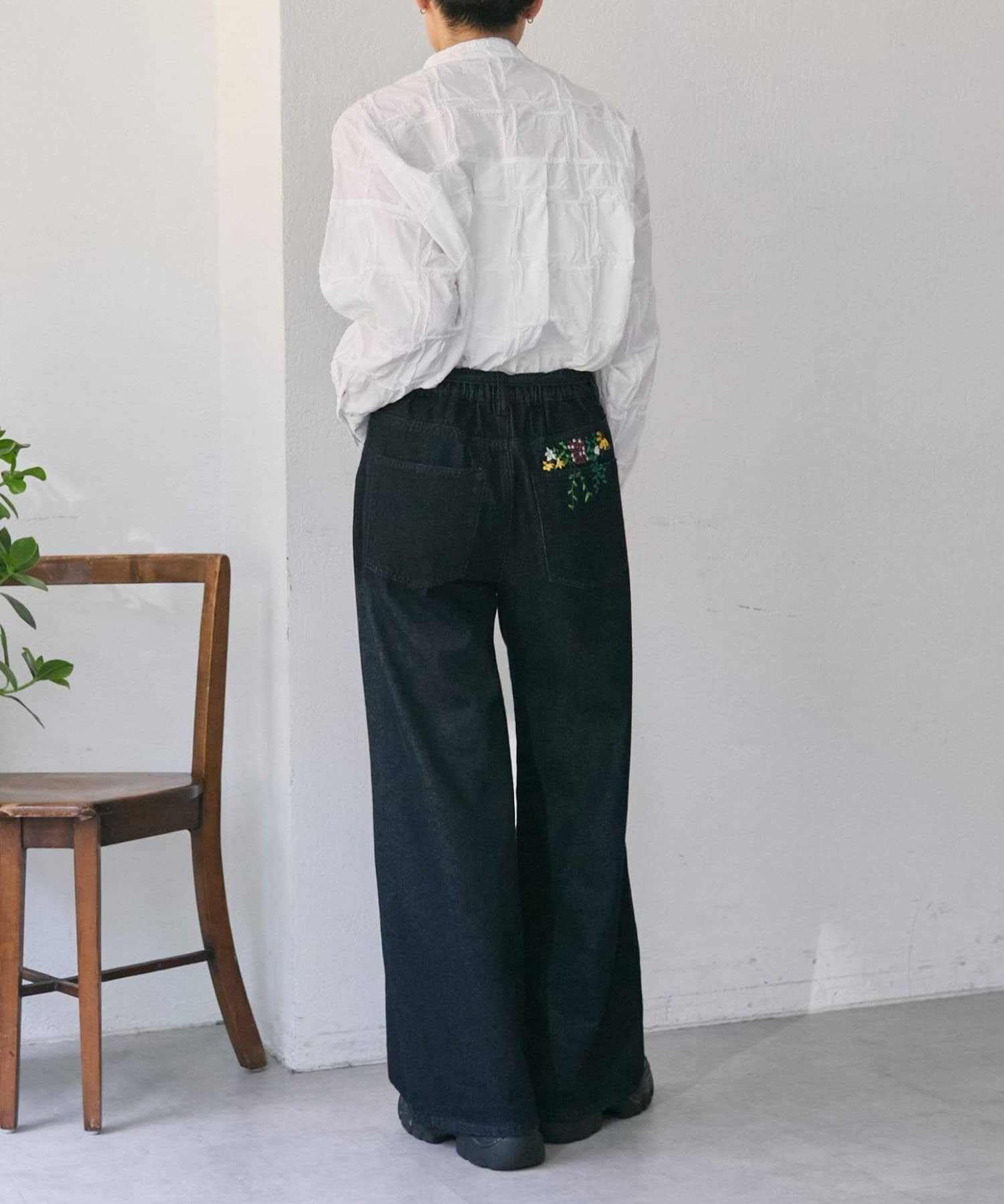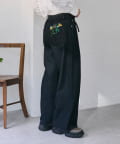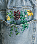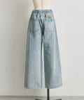 花刺しゅうがポイントのワイドシルエットデニム