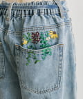 ・バックポケット部分の鮮やかな花刺しゅうがポイント