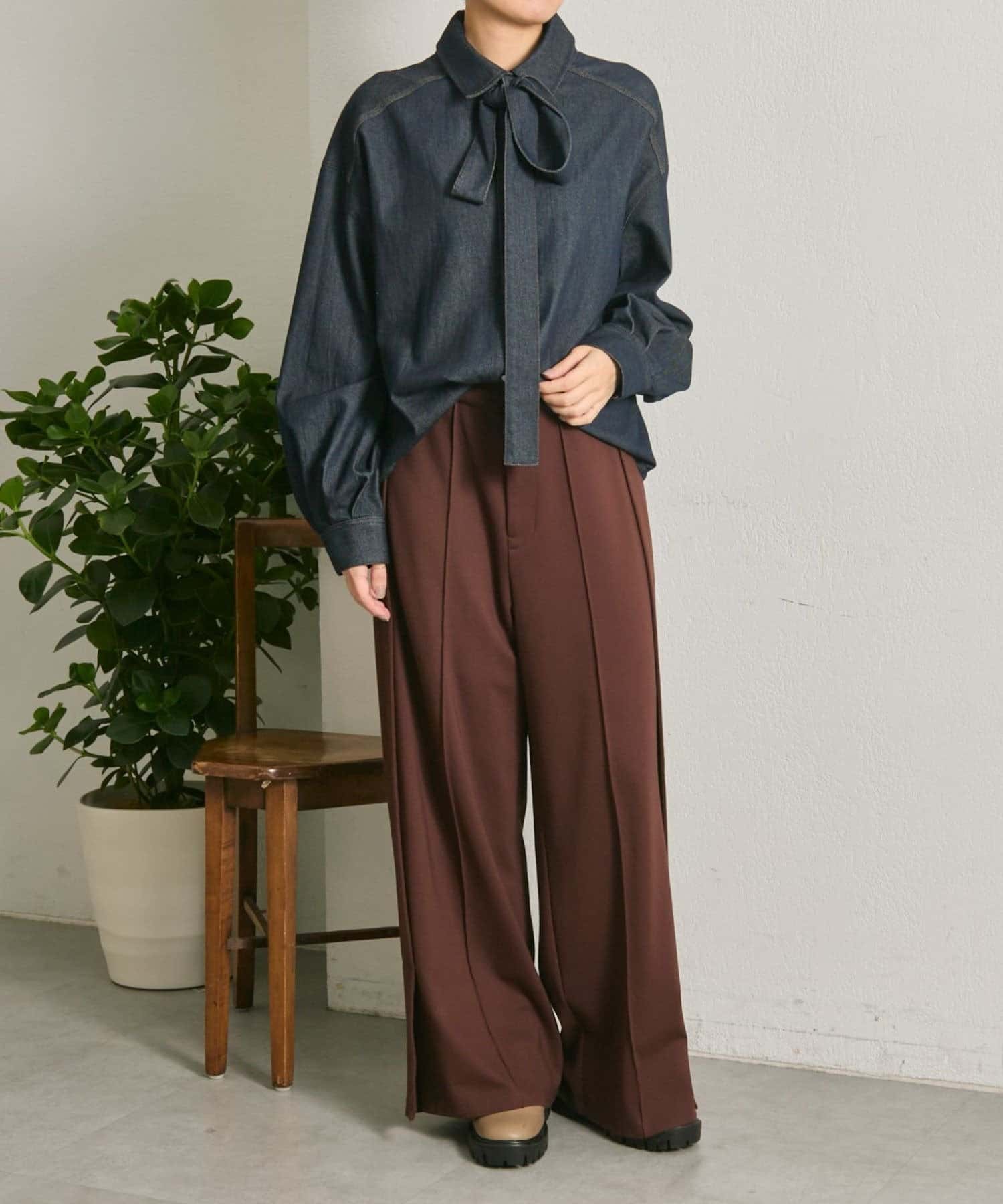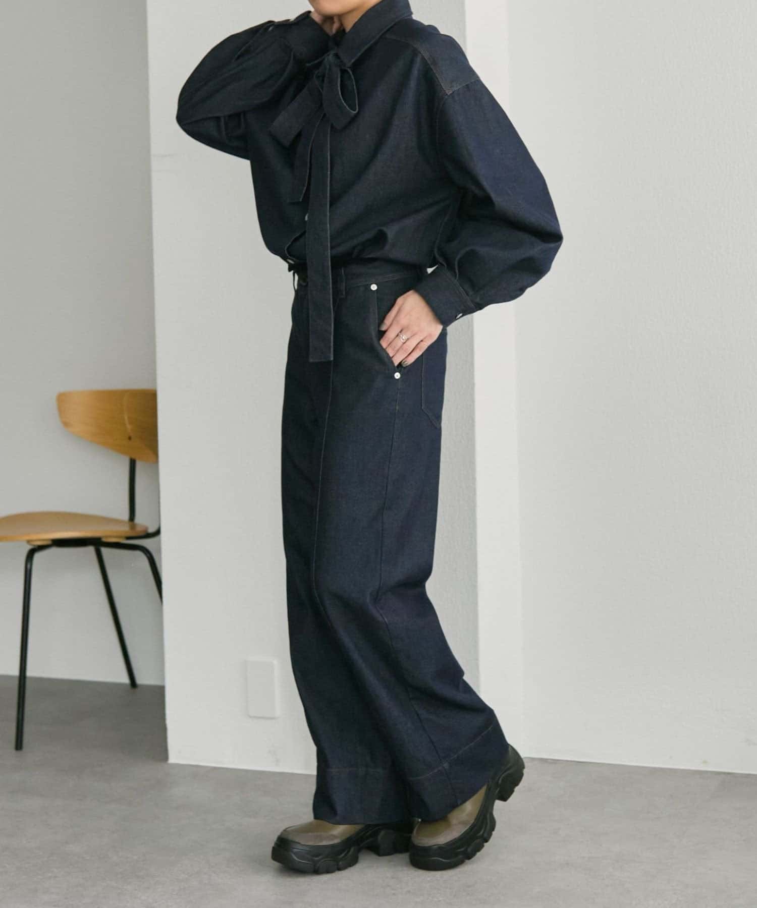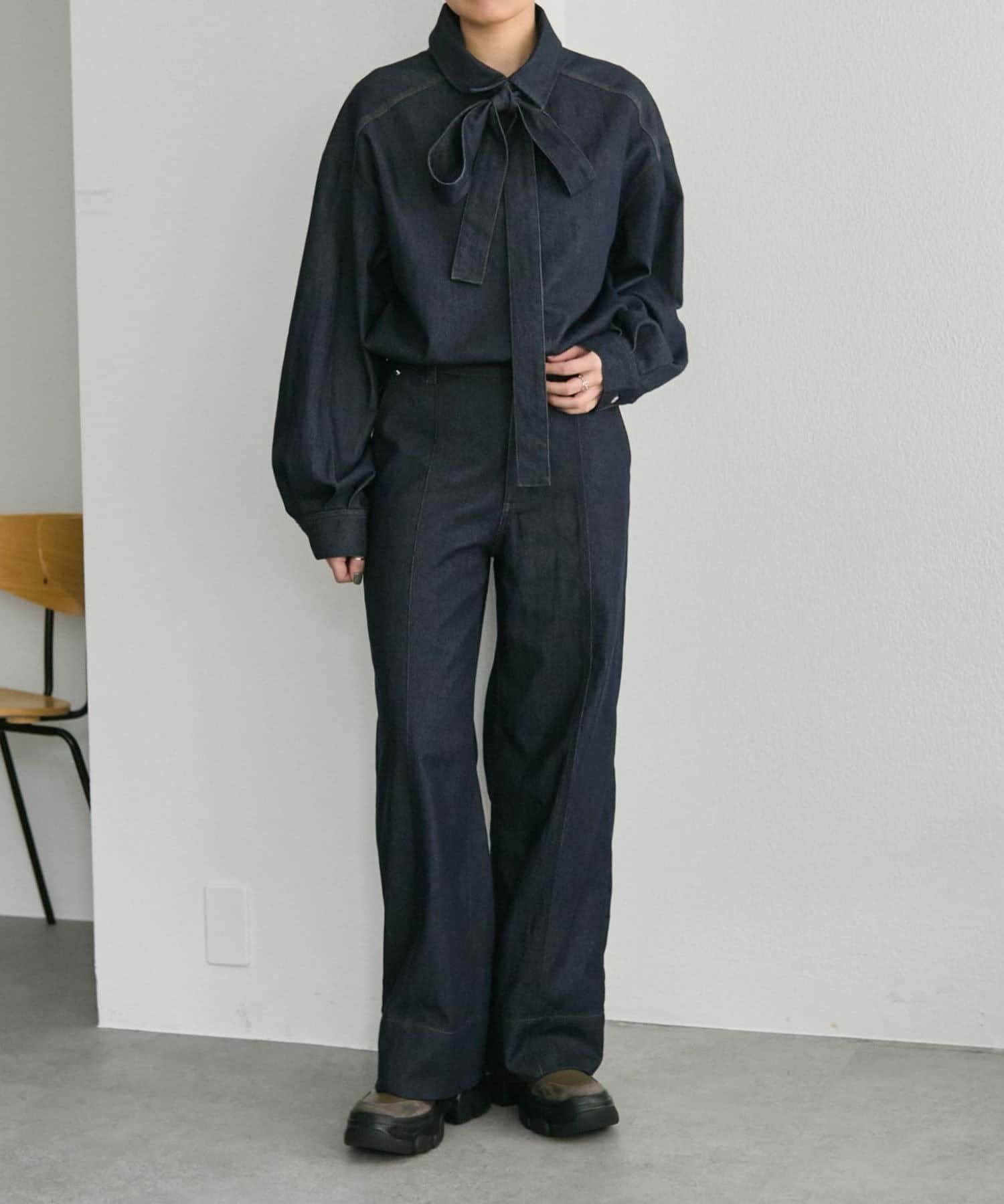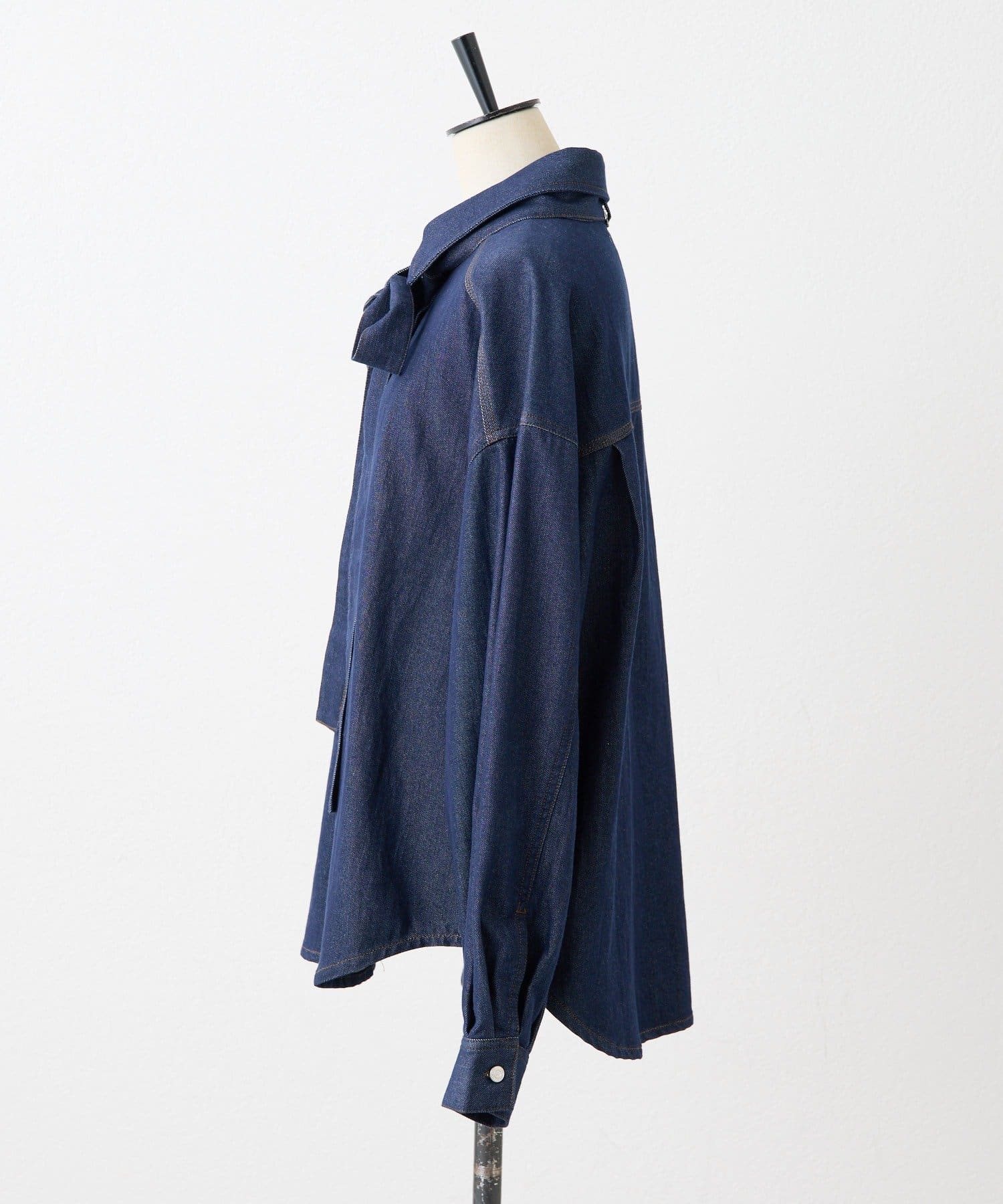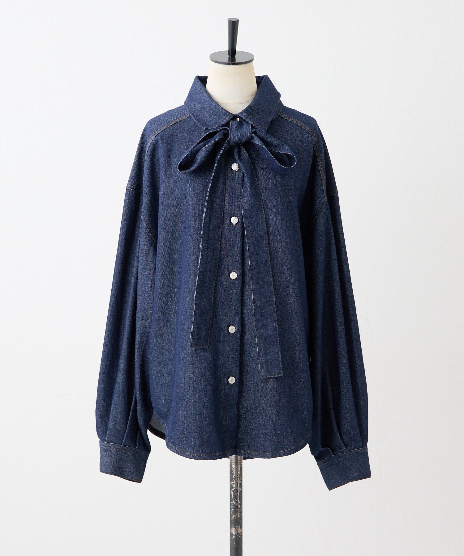 《リボンは取り外し可能》デニムリボンシャツ【SUM1 STYLE(スミスタイル)】