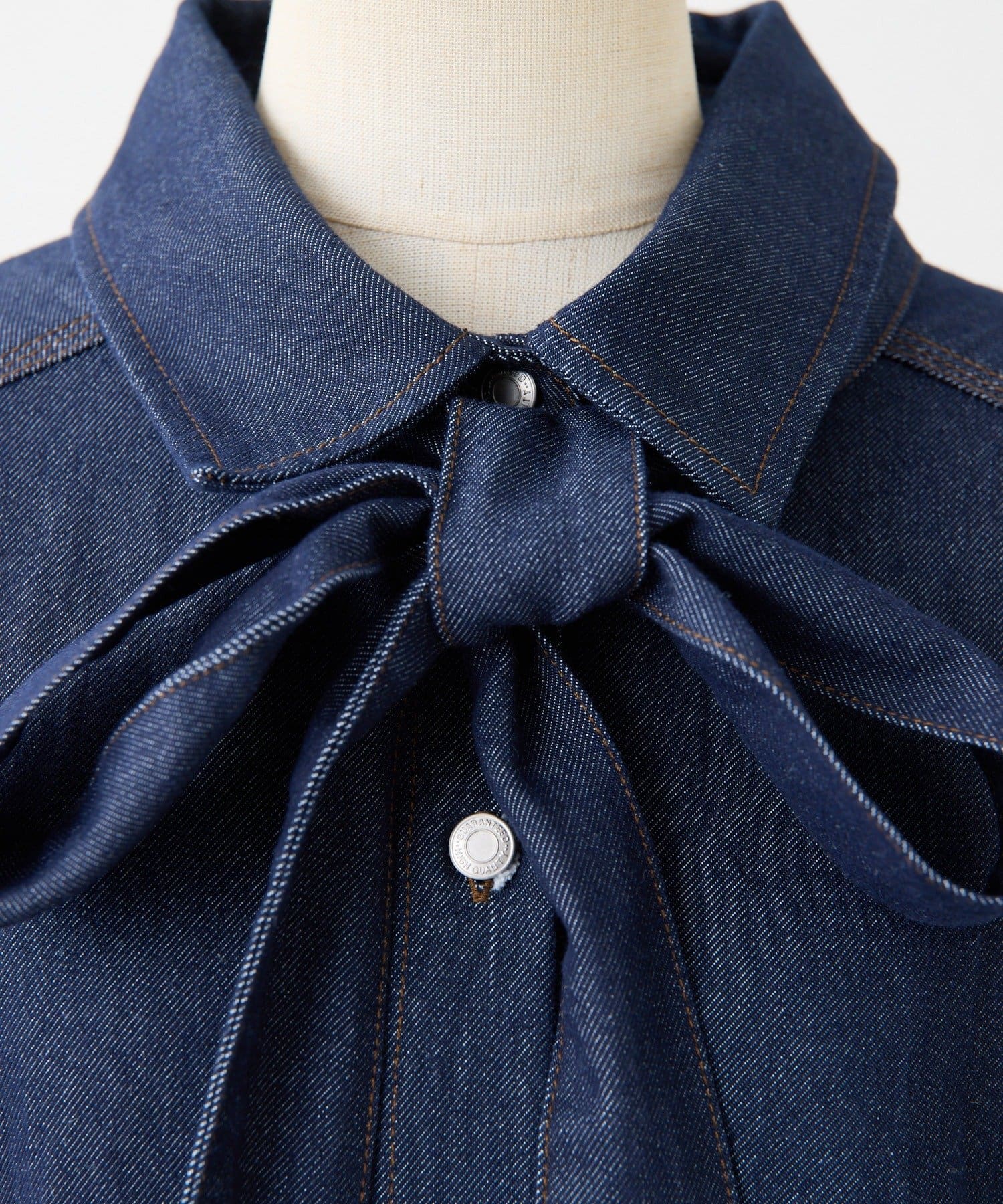 コーデ華やぐビッグリボンがポイントのデニムシャツ