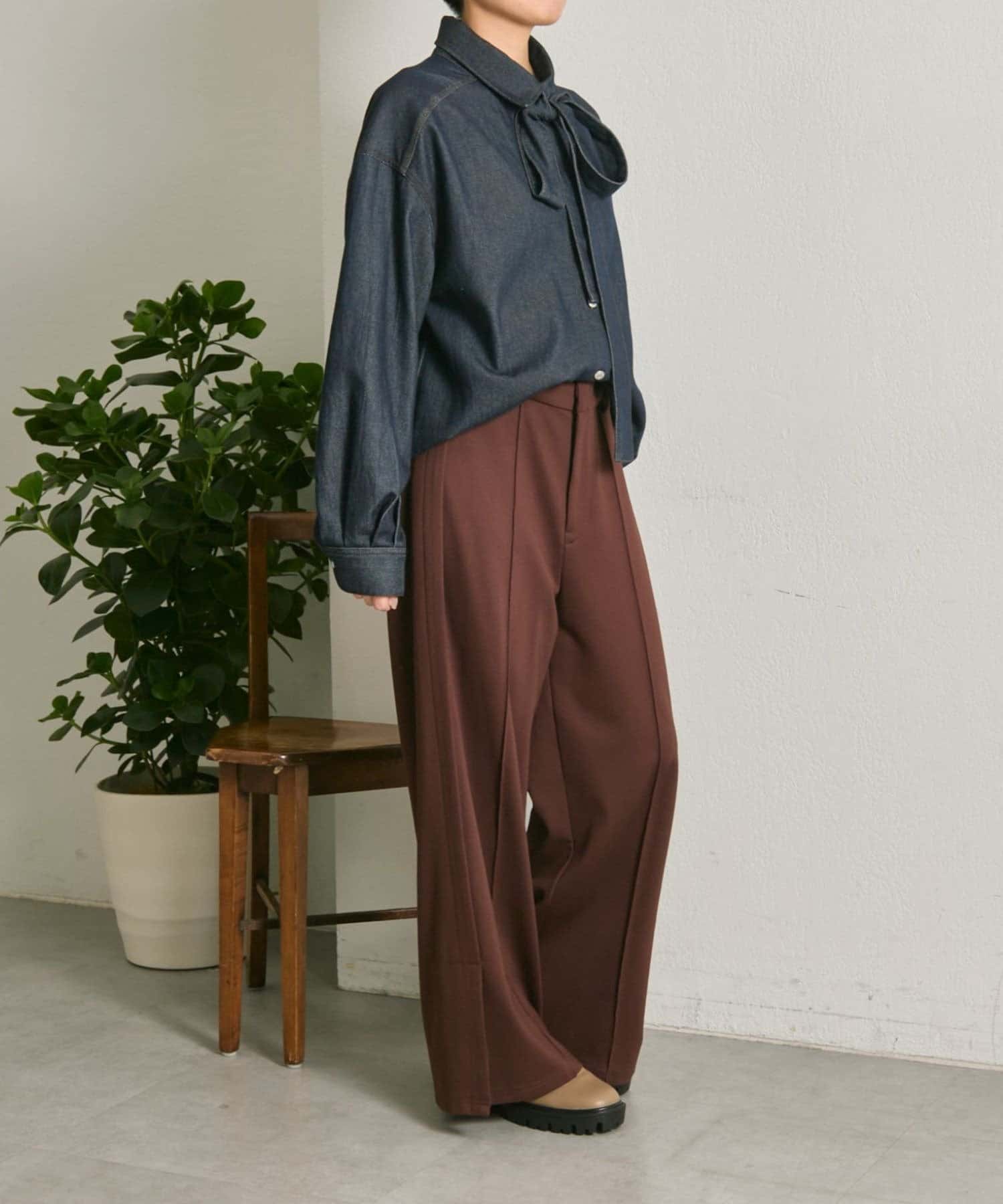 別売りのデニムパンツと合わせたセットアップ着用もおすすめです。