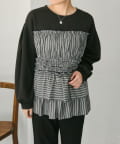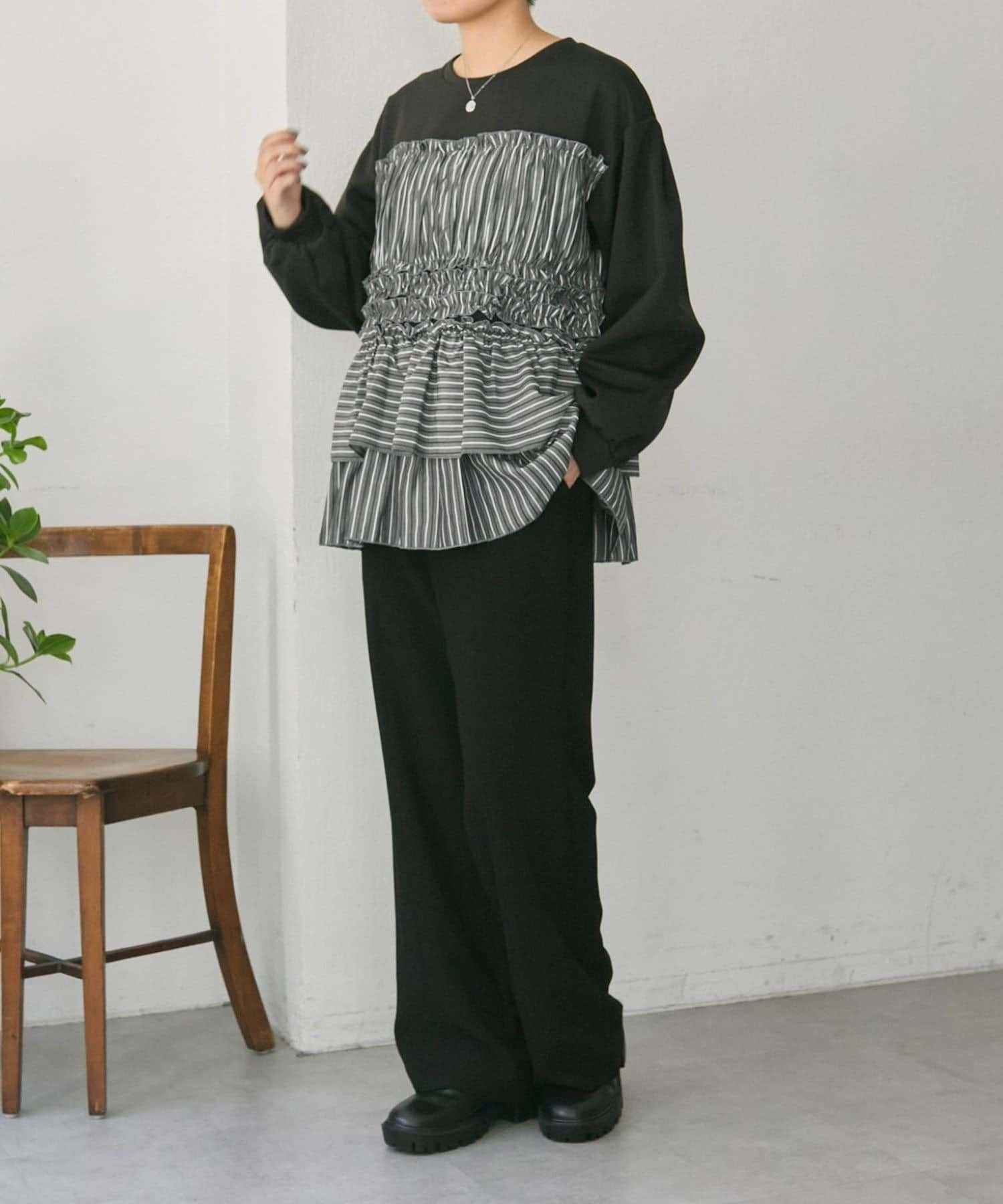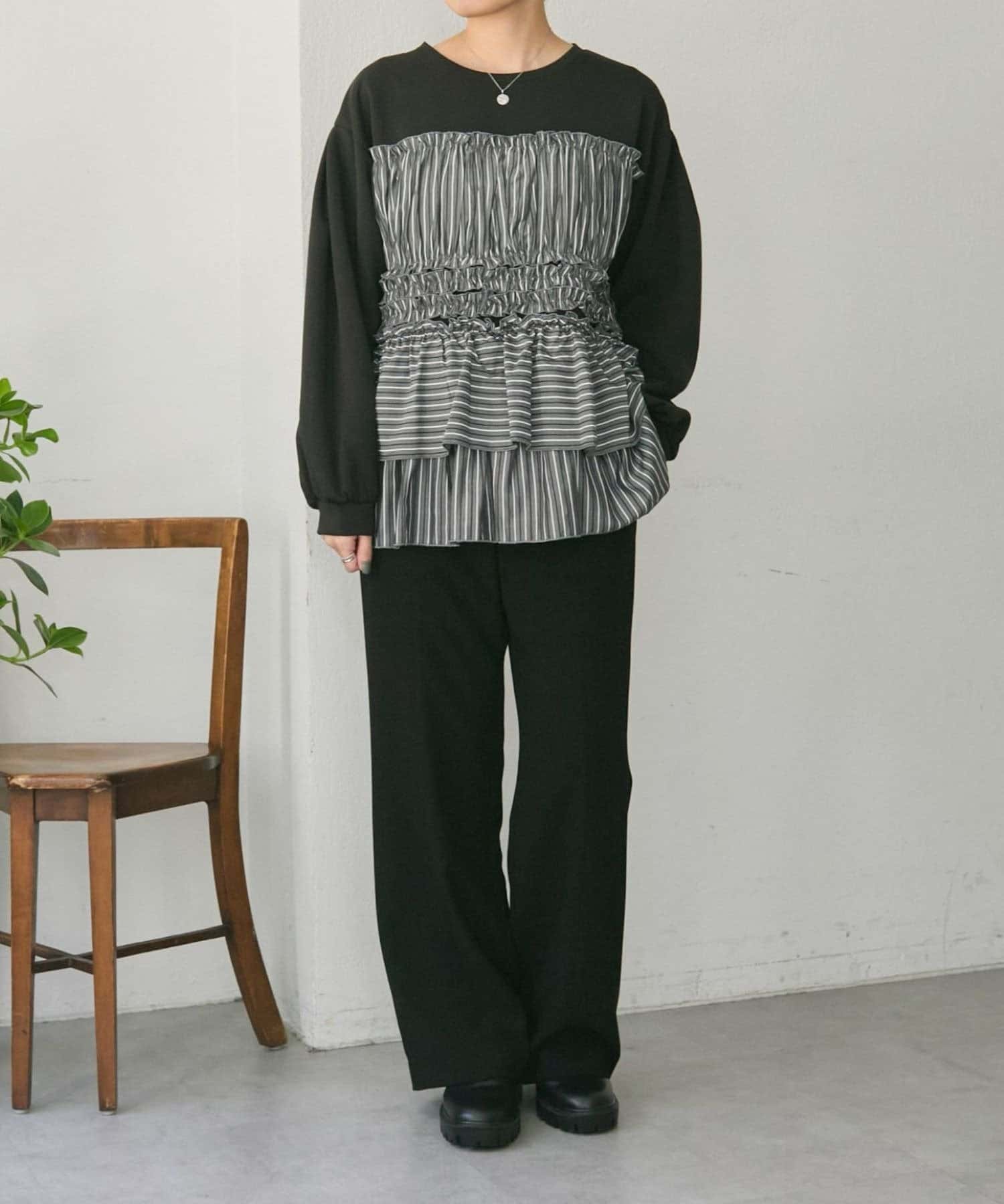 TOP > ear PAPILLONNER > レディース > トップス > Tシャツ/カットソー > フリルシャツ切替スウェット【SUM1 STYLE(スミスタイル)】