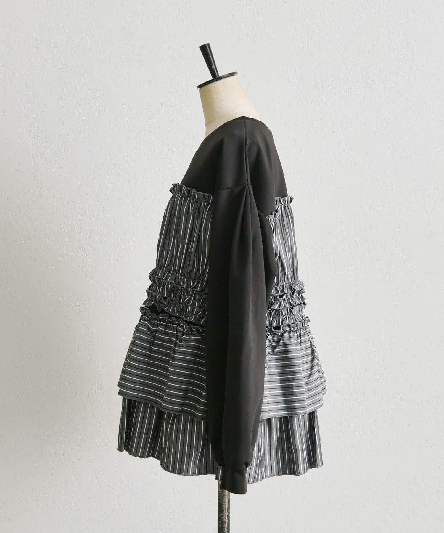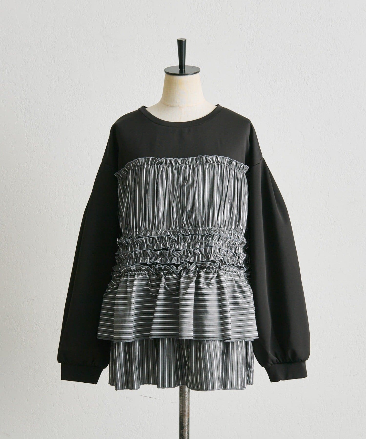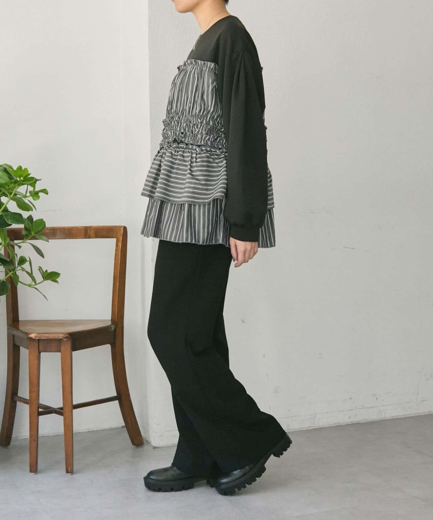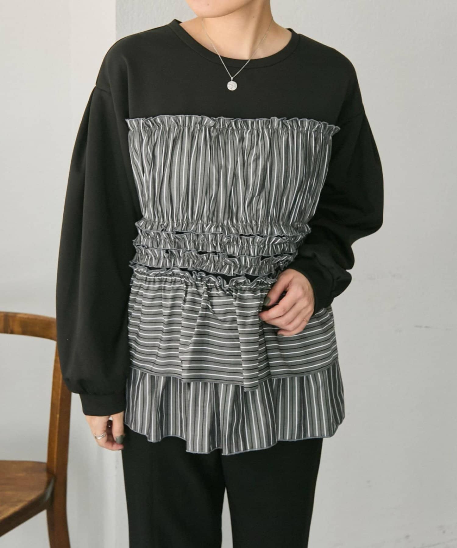 ear PAPILLONNER(イア パピヨネ) フリルシャツ切替スウェット【SUM1 STYLE(スミスタイル)】