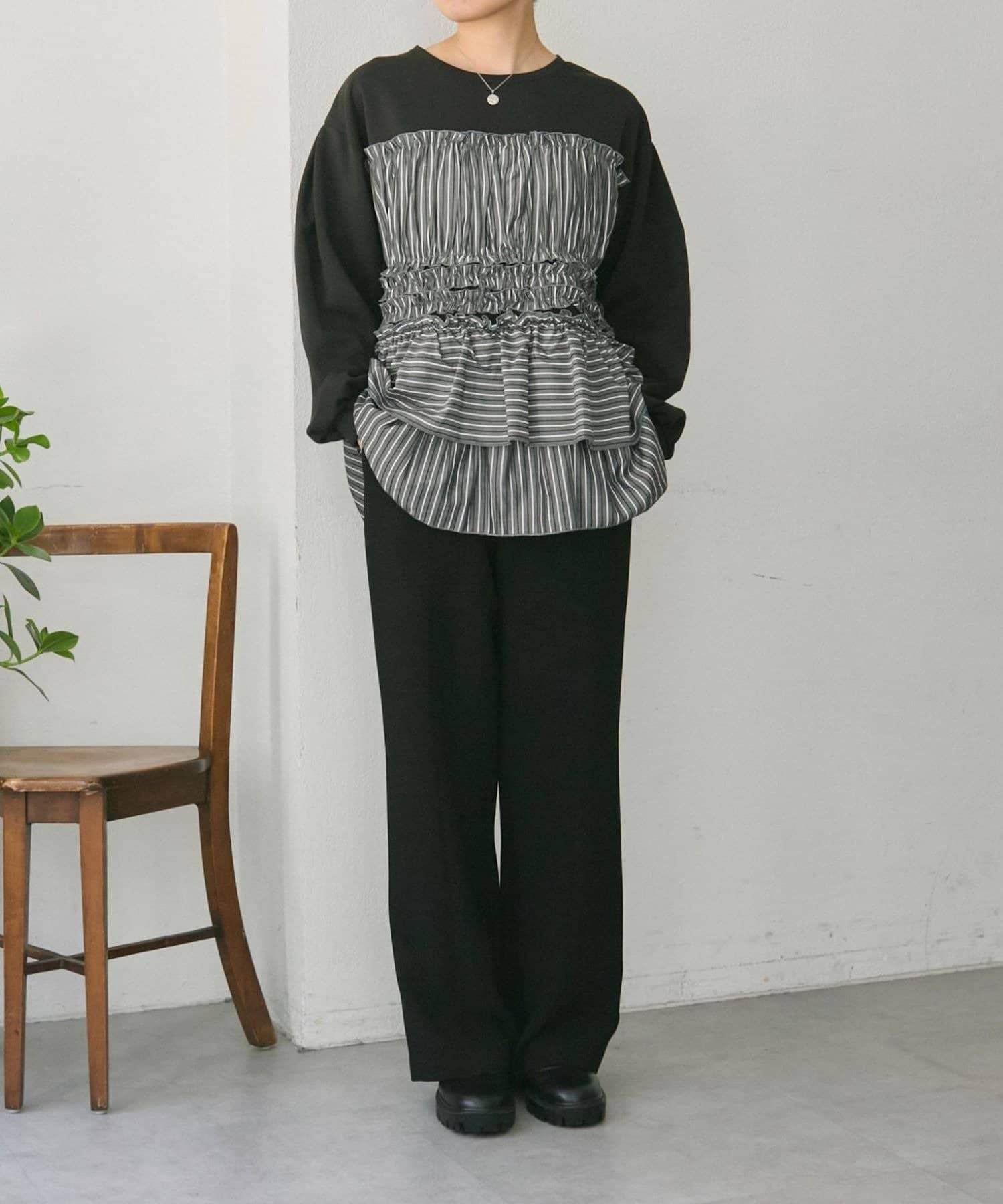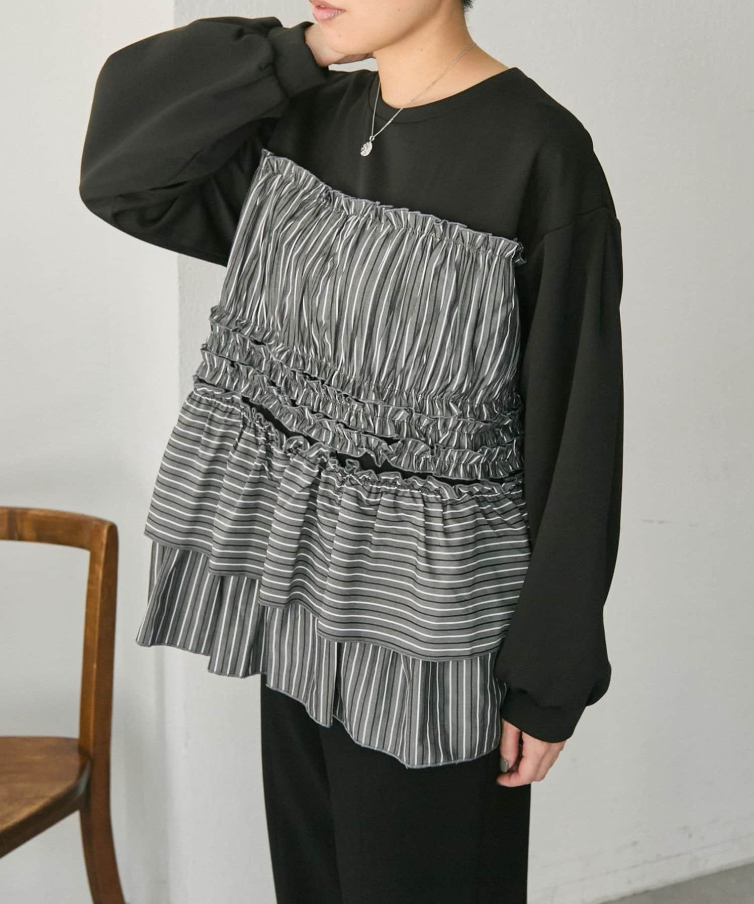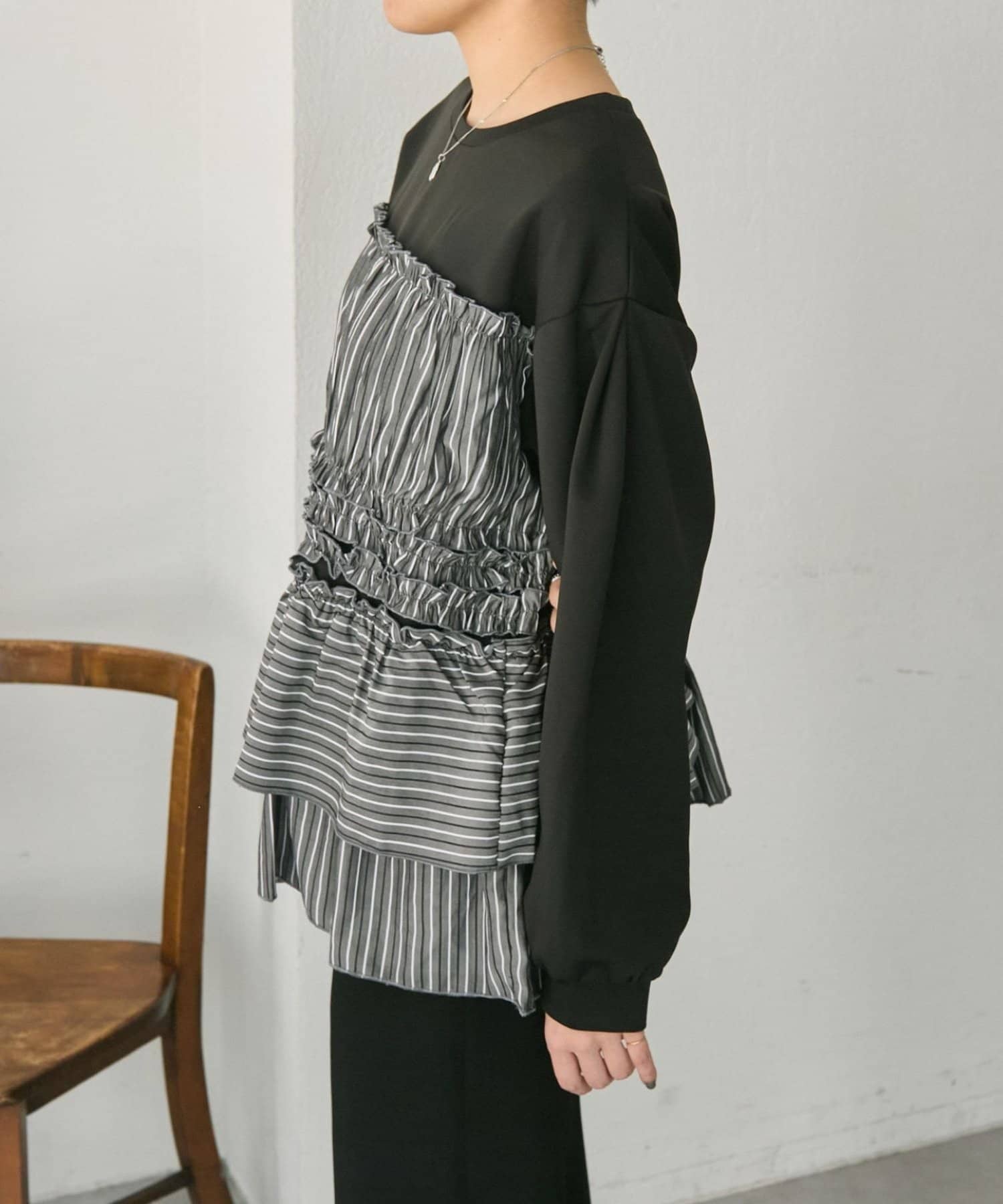 フリルシャツ切替スウェット【SUM1 STYLE(スミスタイル)】