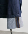 袖口の大幅なロールアップがポイントのデニムジャケット