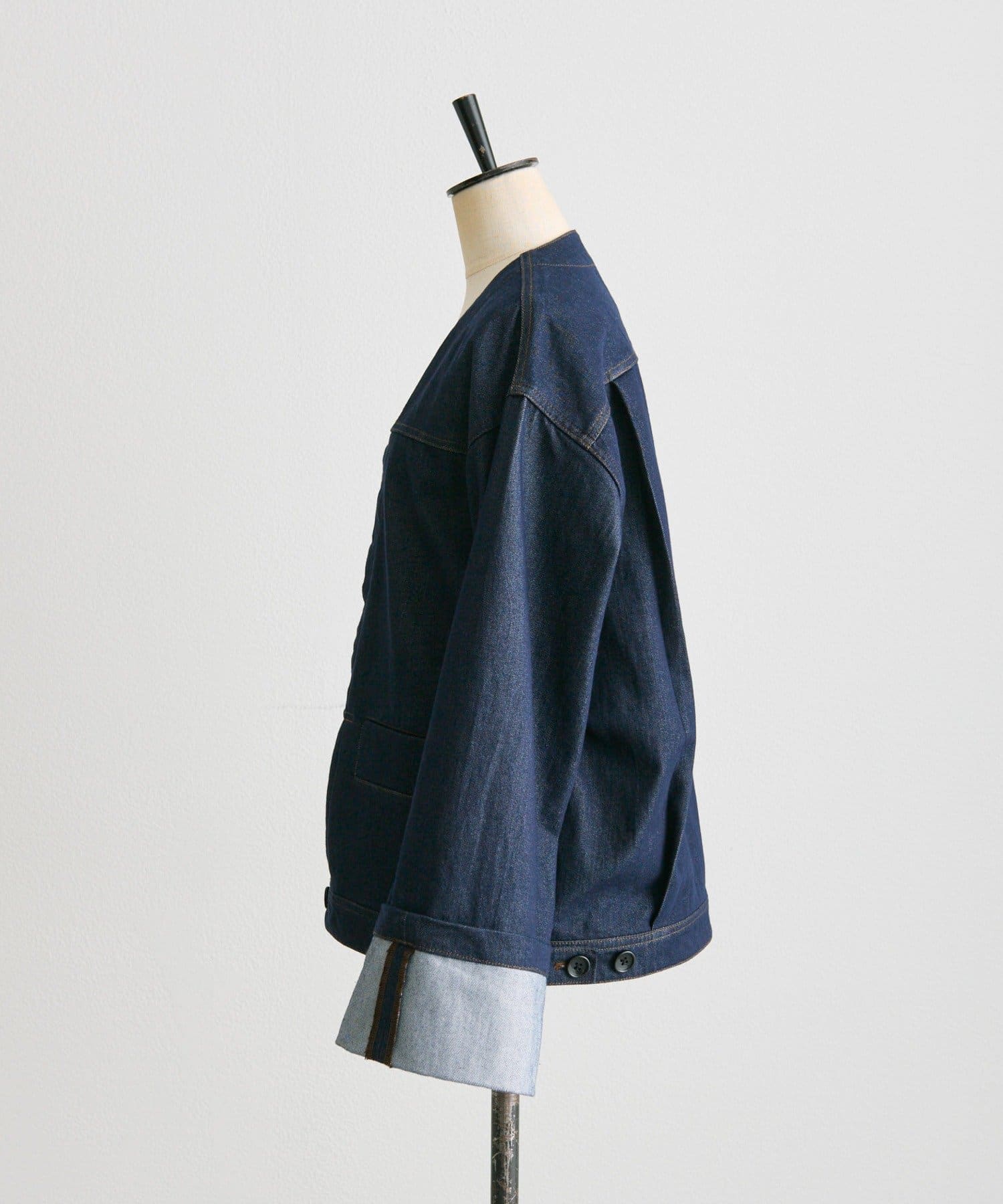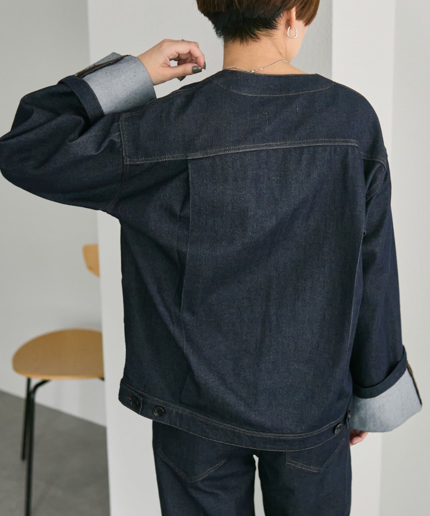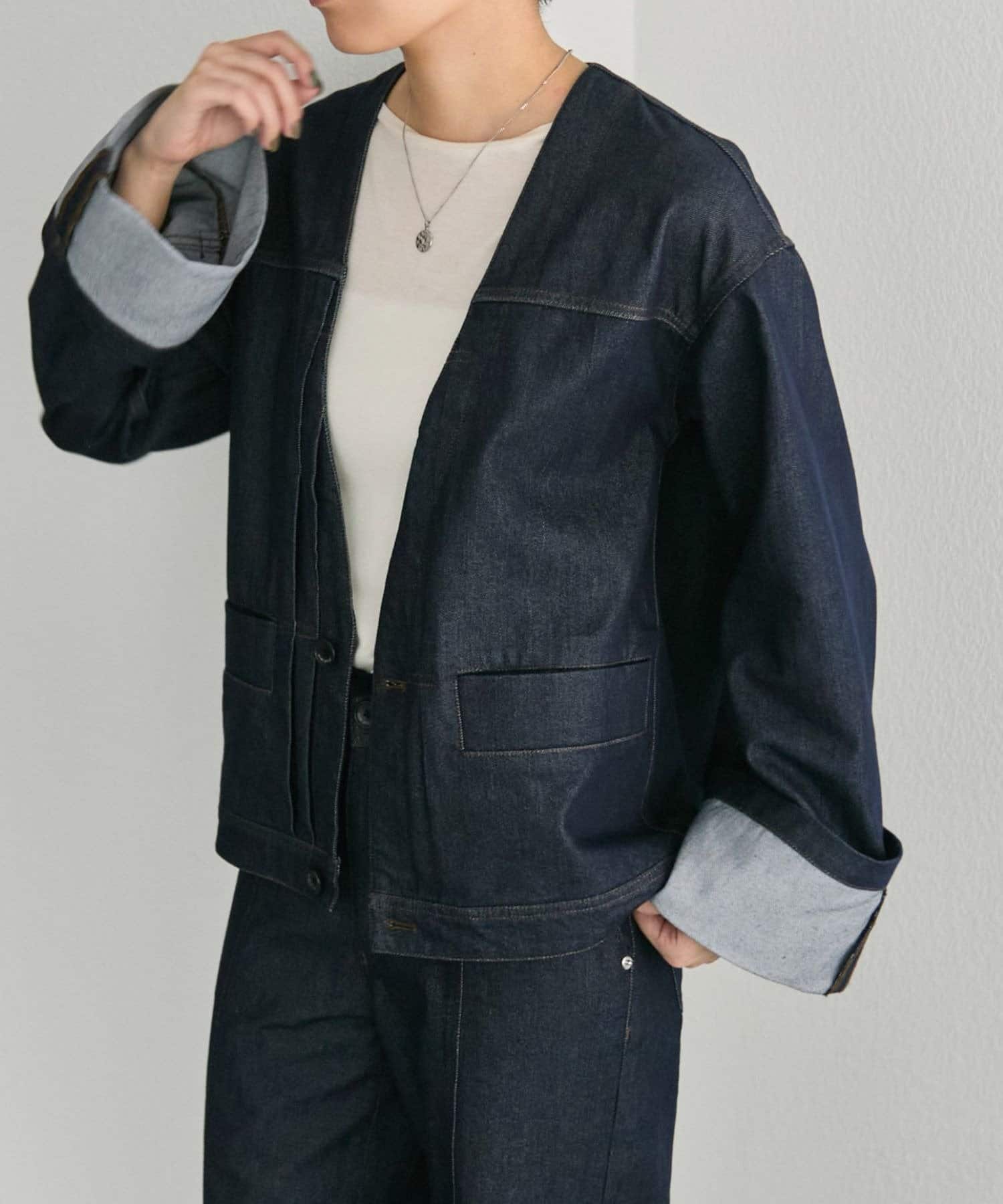 ノーカラーデニムジャケット