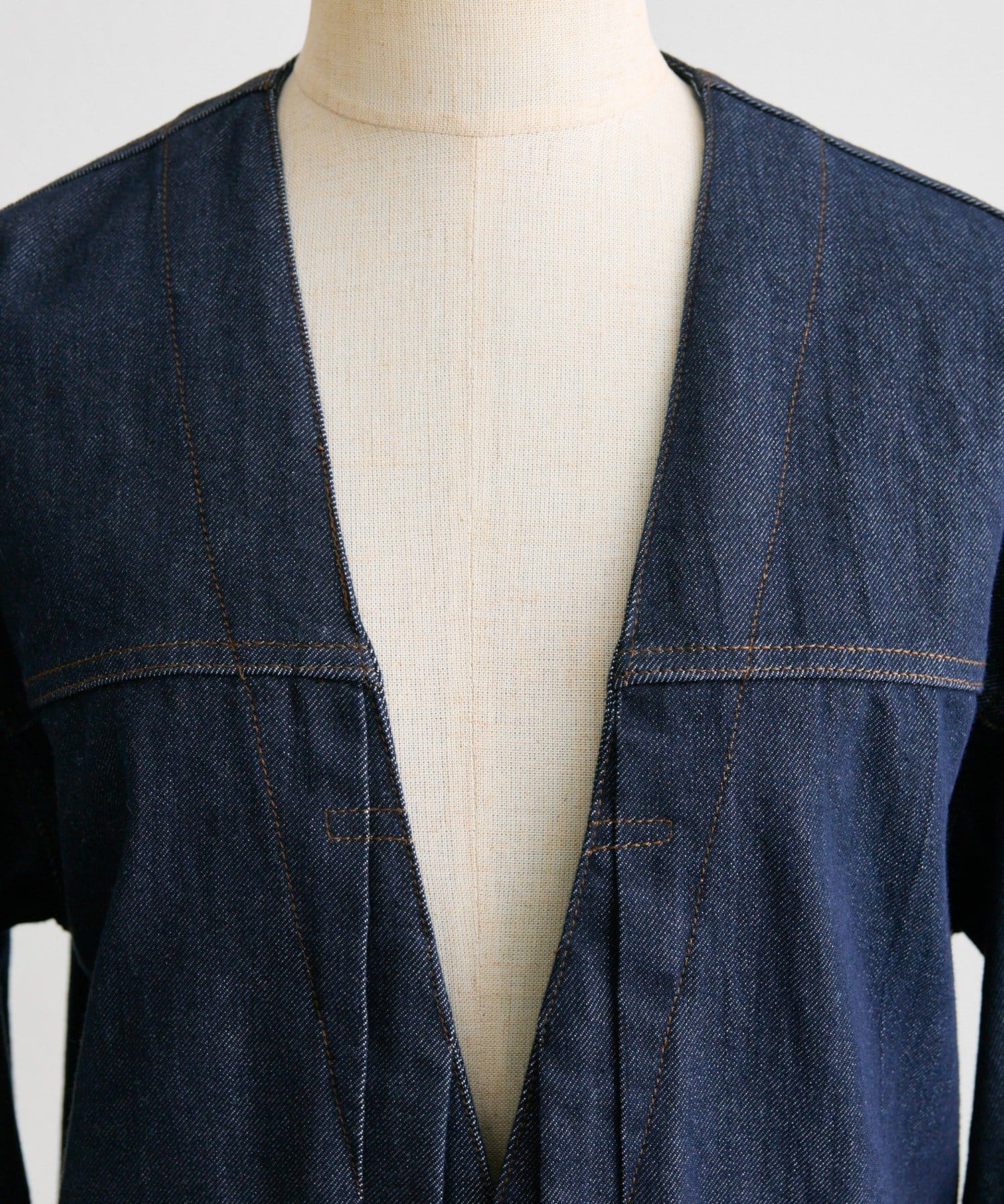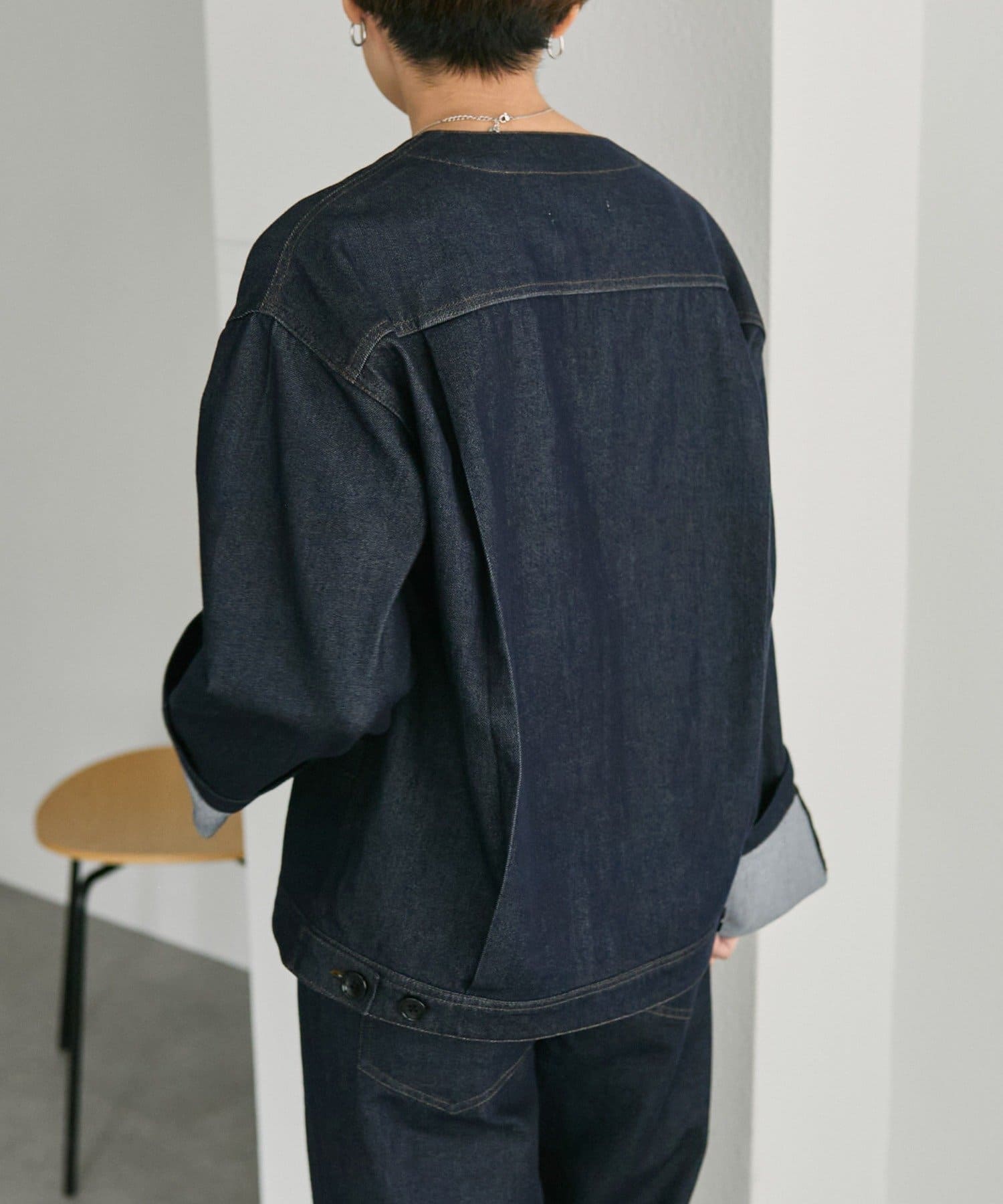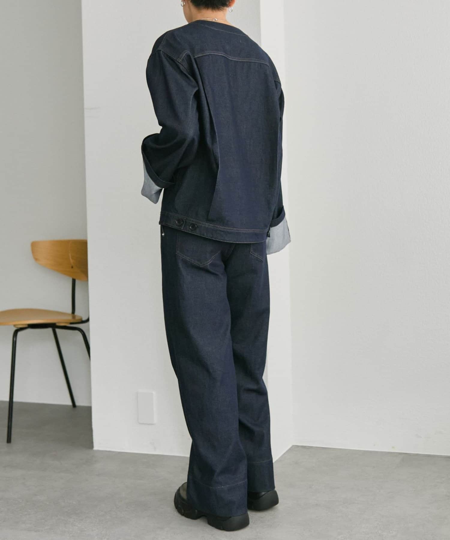ノーカラーデニムジャケット