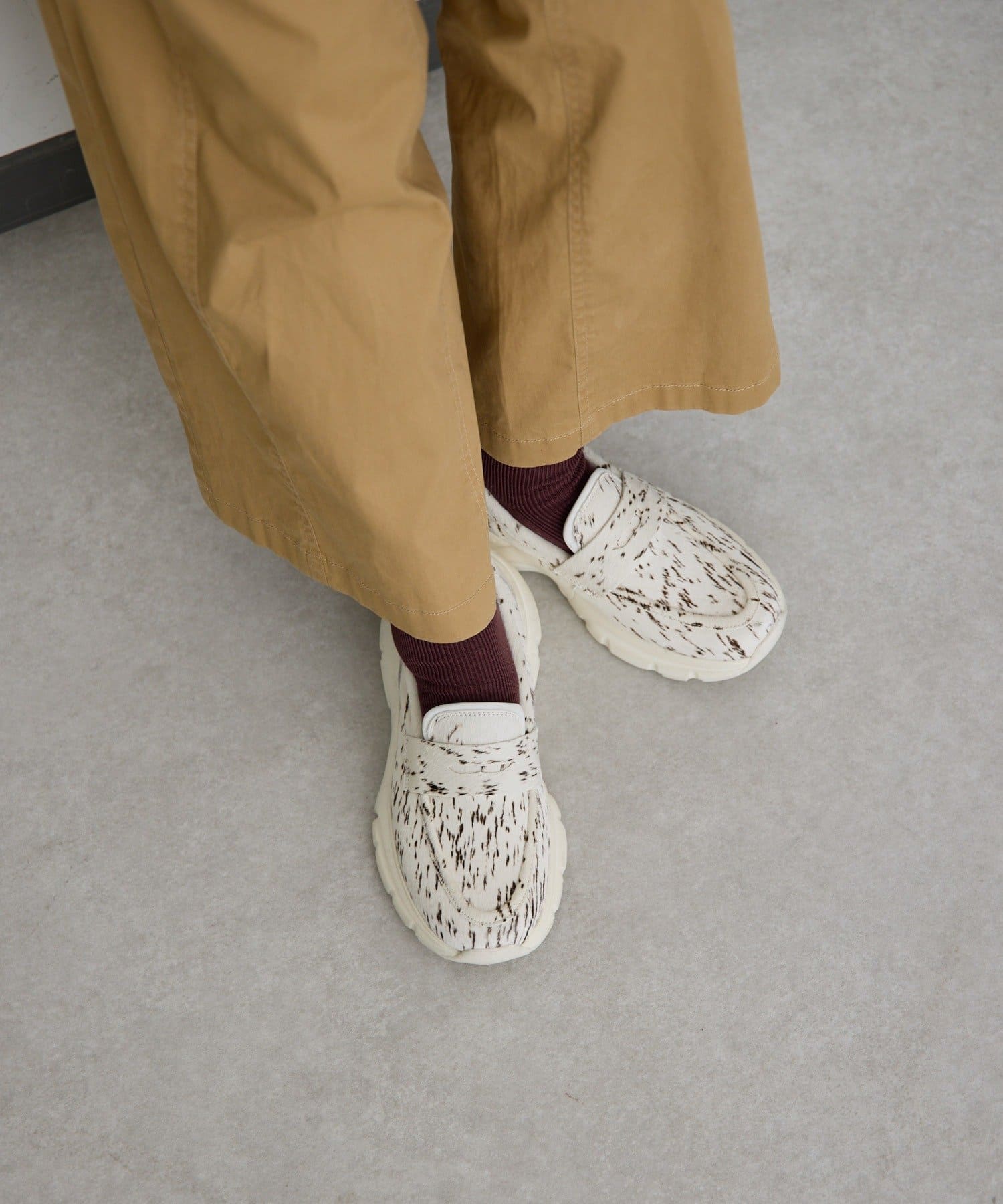 ・クラシックなローファーにスポーティなボリュームソールを組み合わせたデザイン