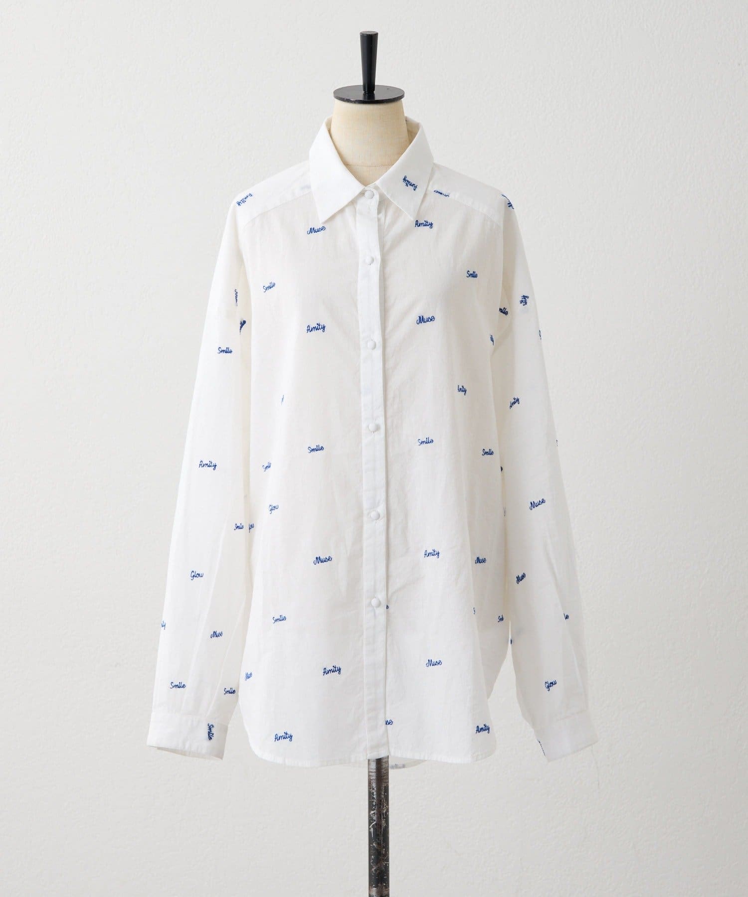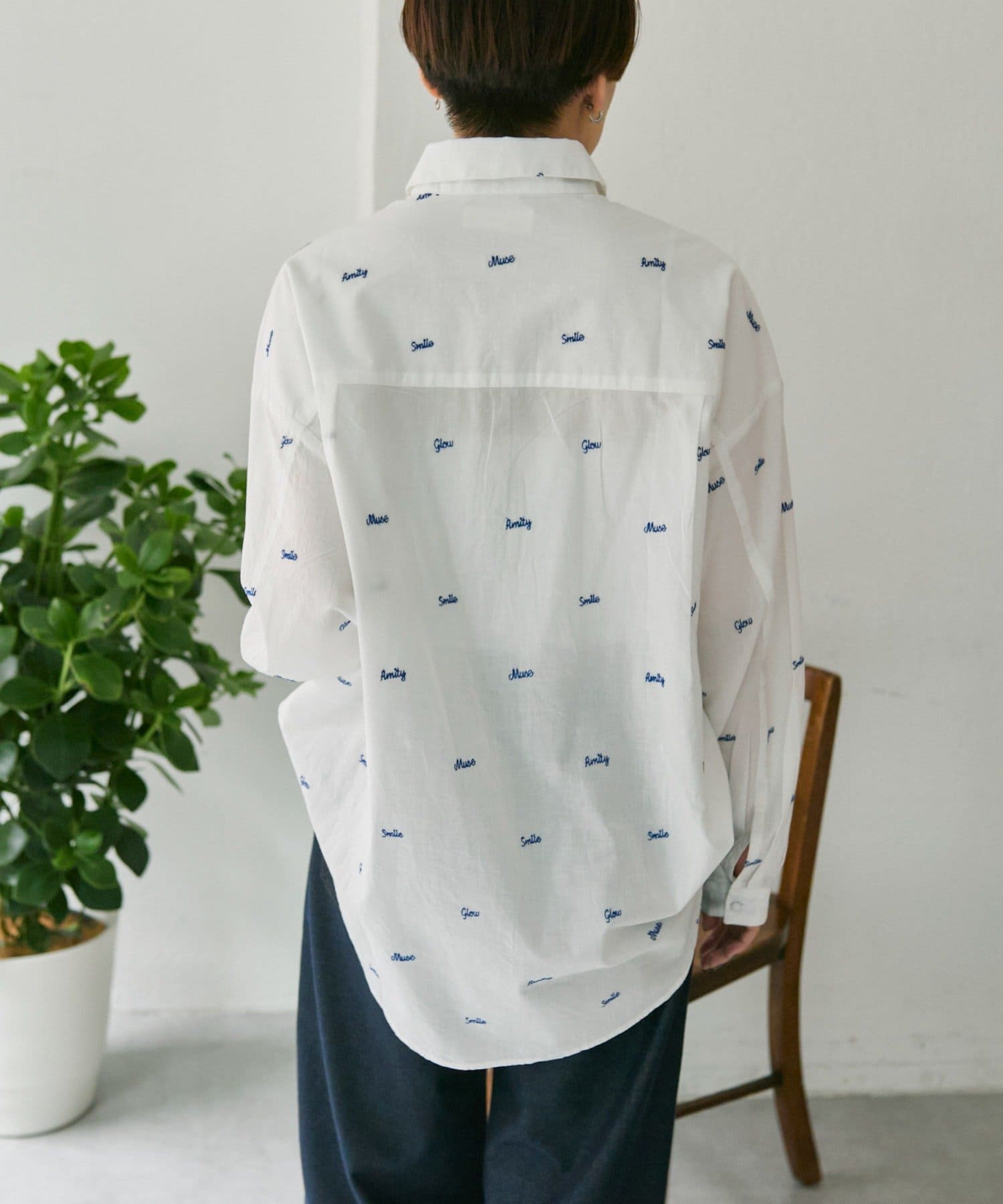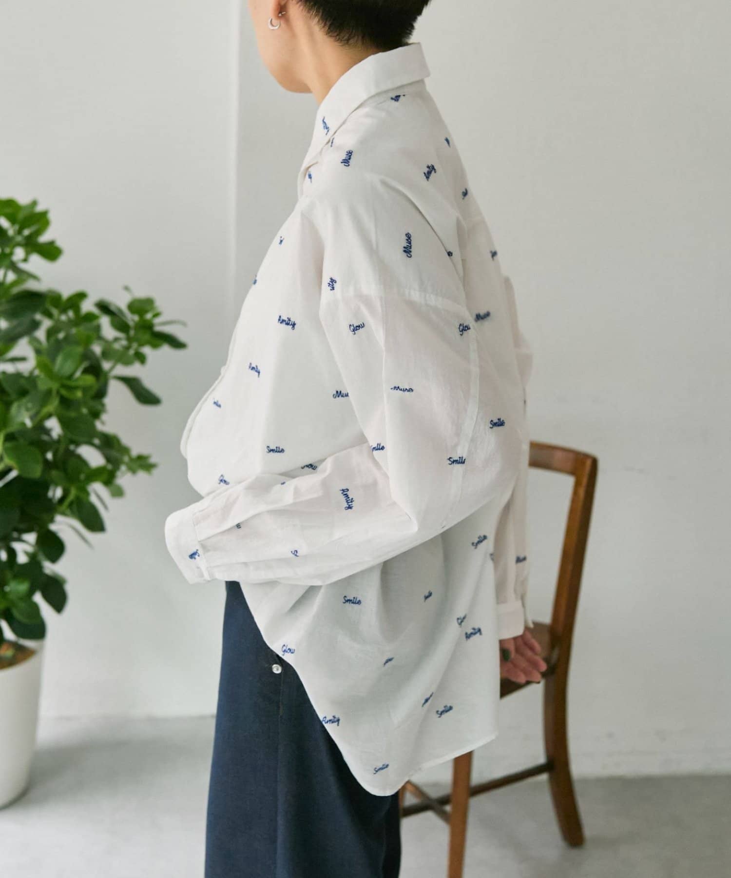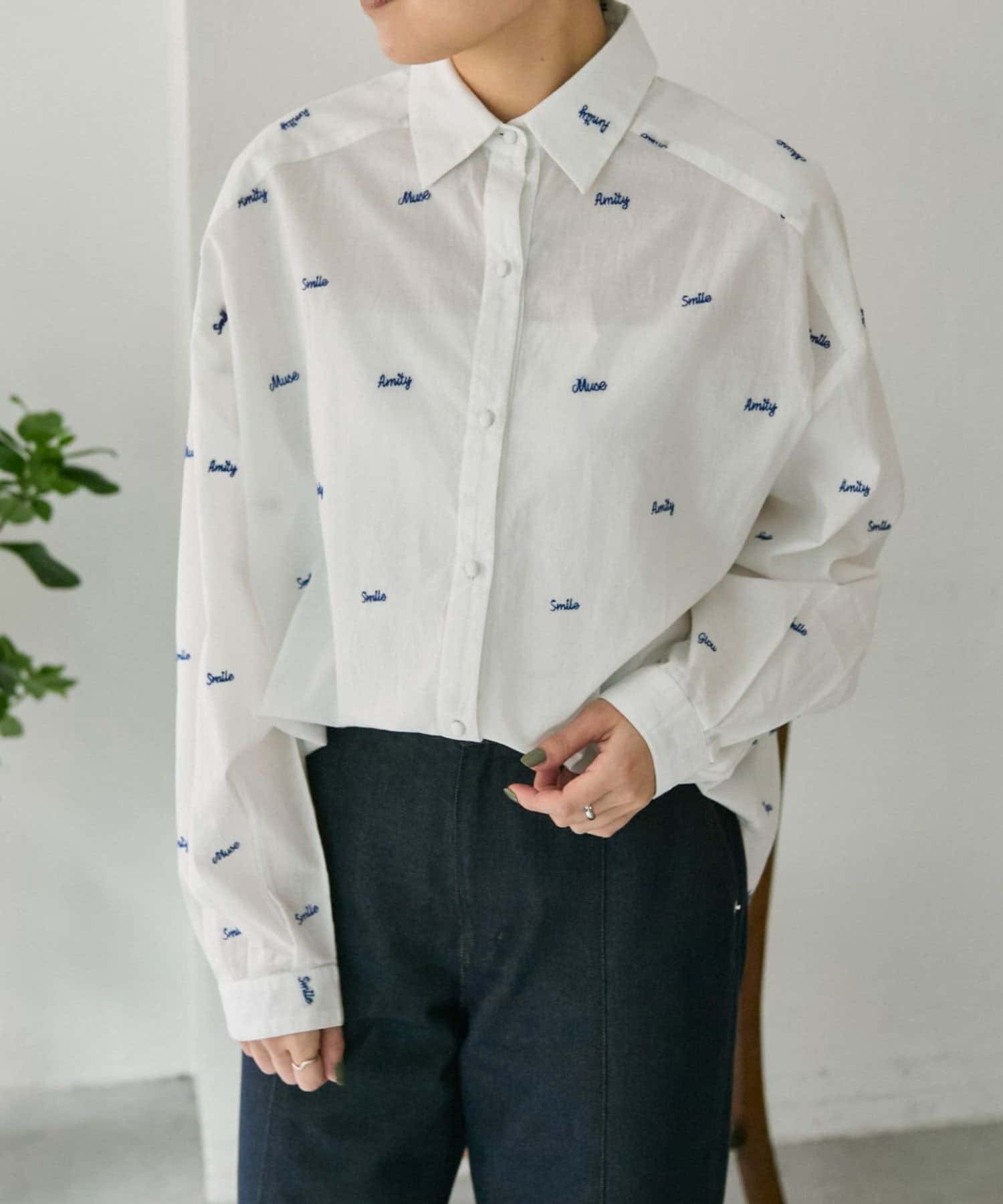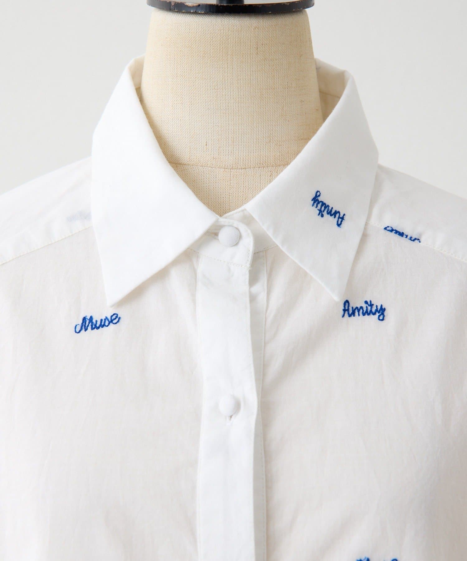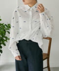 TOP > ear PAPILLONNER > レディース > トップス > シャツ/ブラウス(ボタン) > 《本体綿100%/透け感あり》ロゴ刺しゅうシャツ【SUM1 STYLE(スミスタイル)】