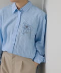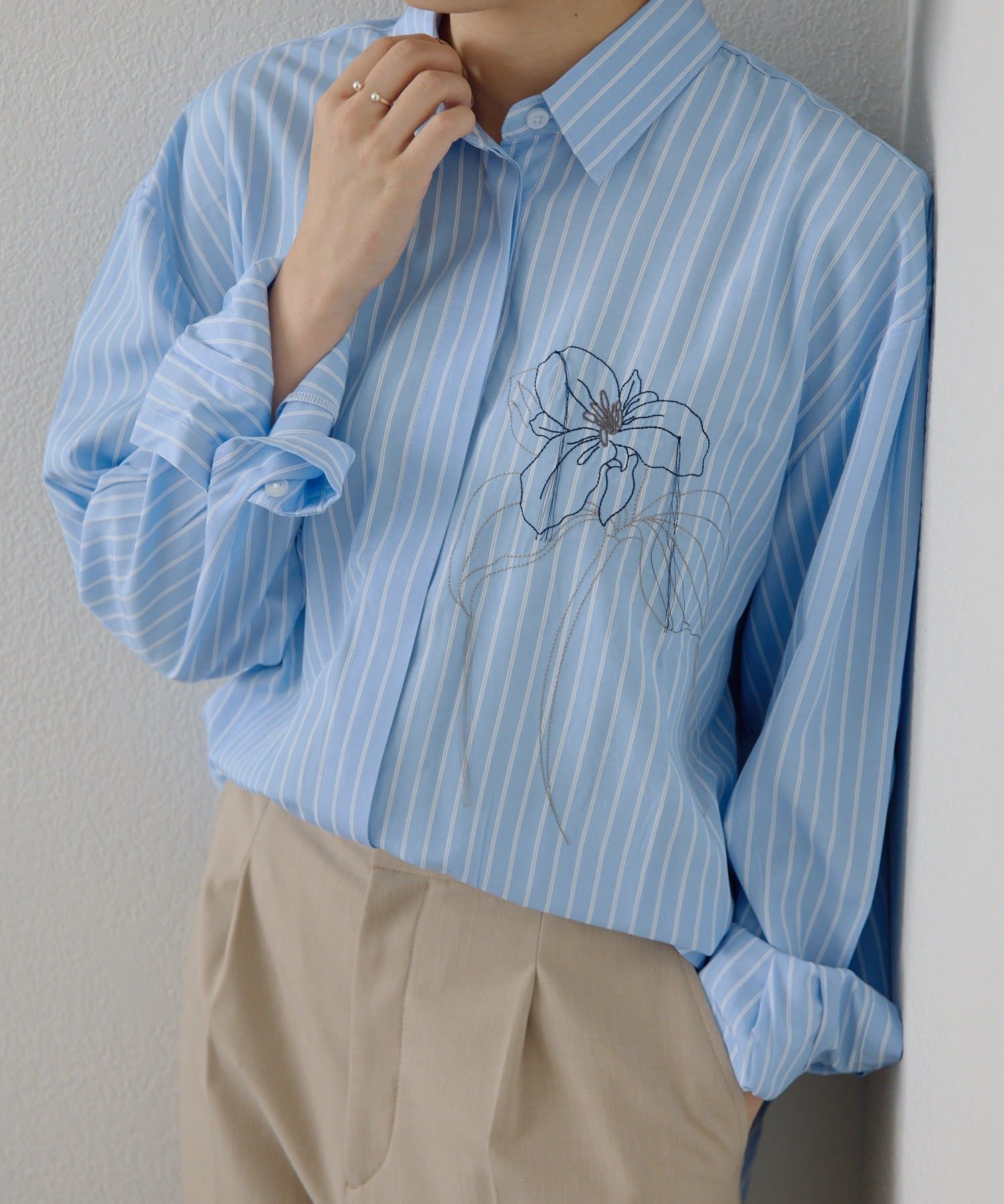 胸元の花刺しゅうがポイントのデザインシャツ