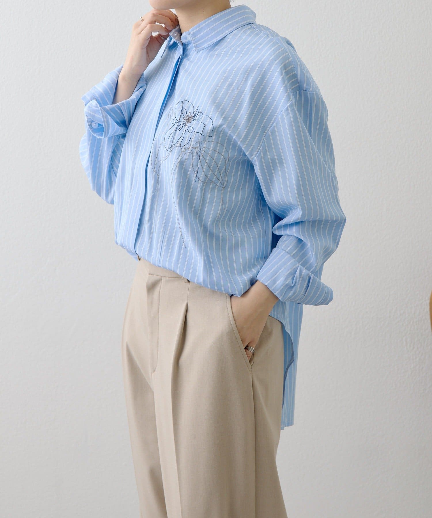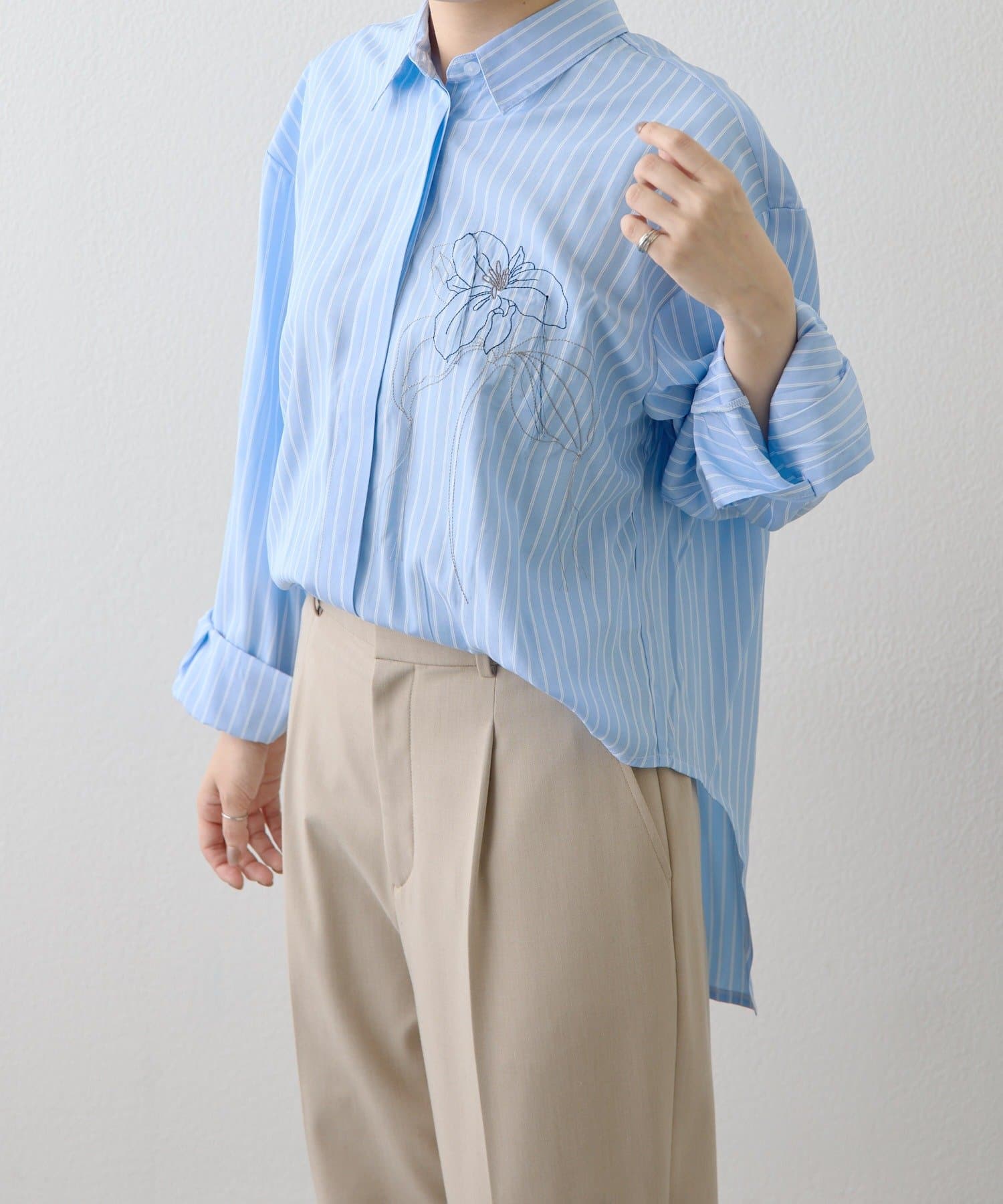 ハイカット花刺しゅうシャツ【SUM1 STYLE(スミスタイル)】