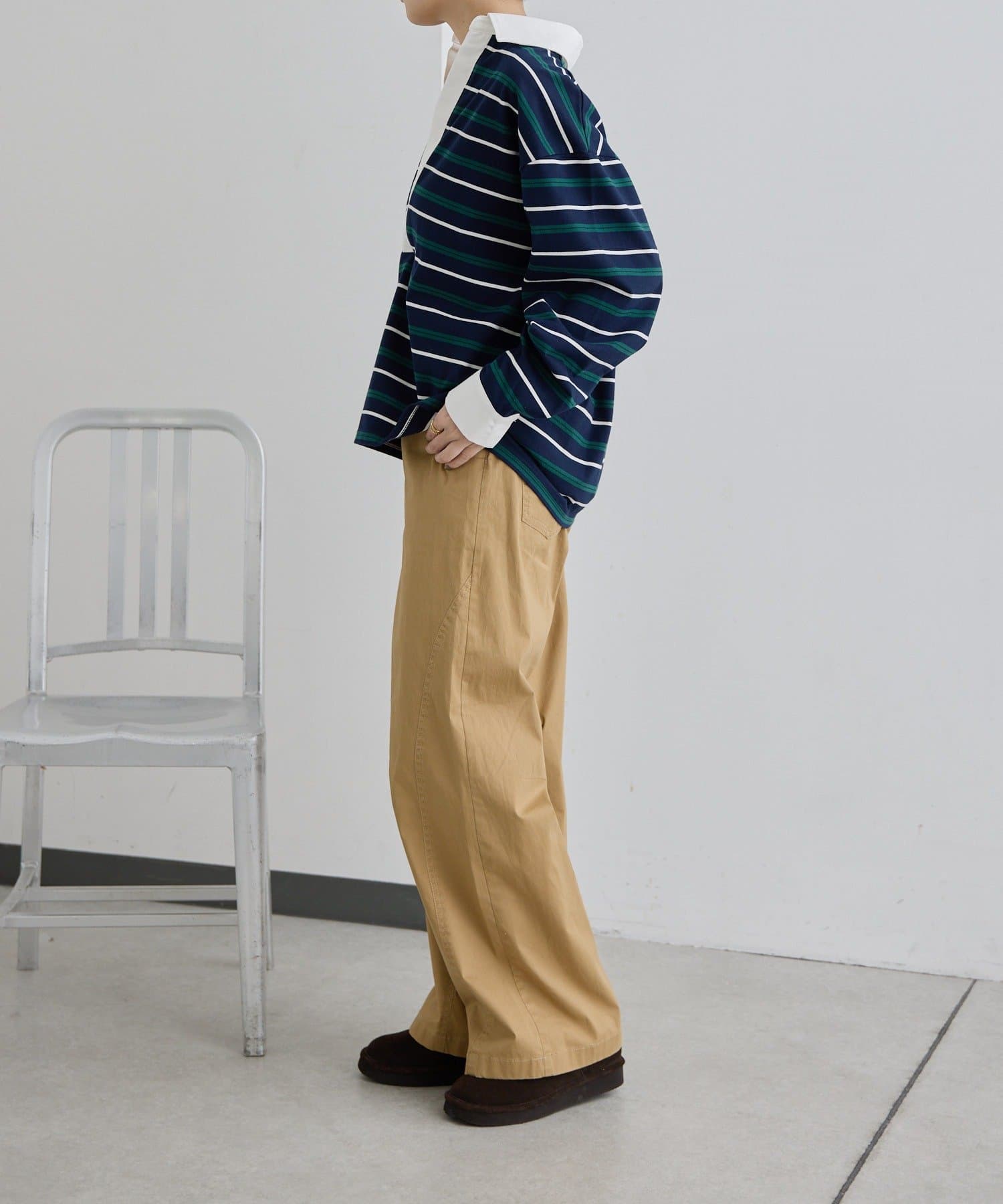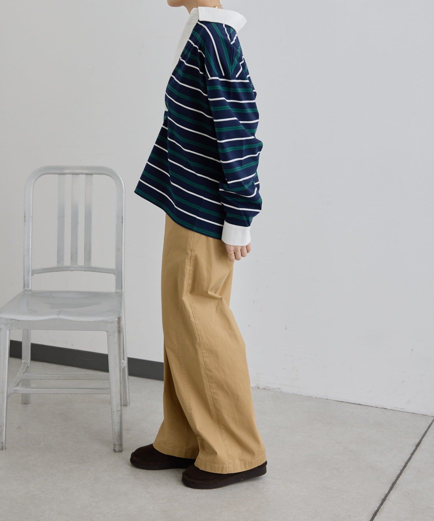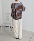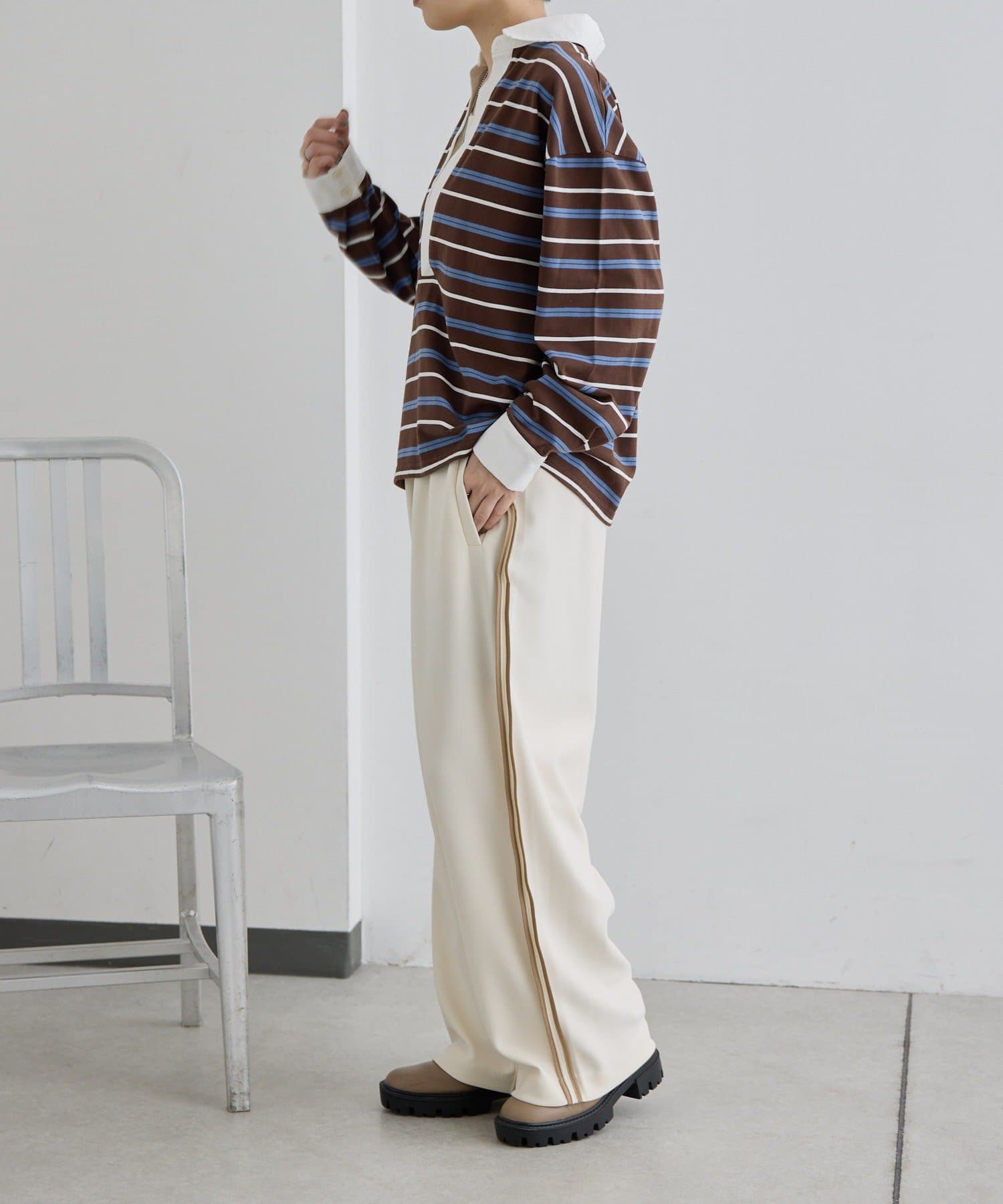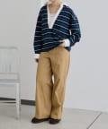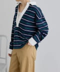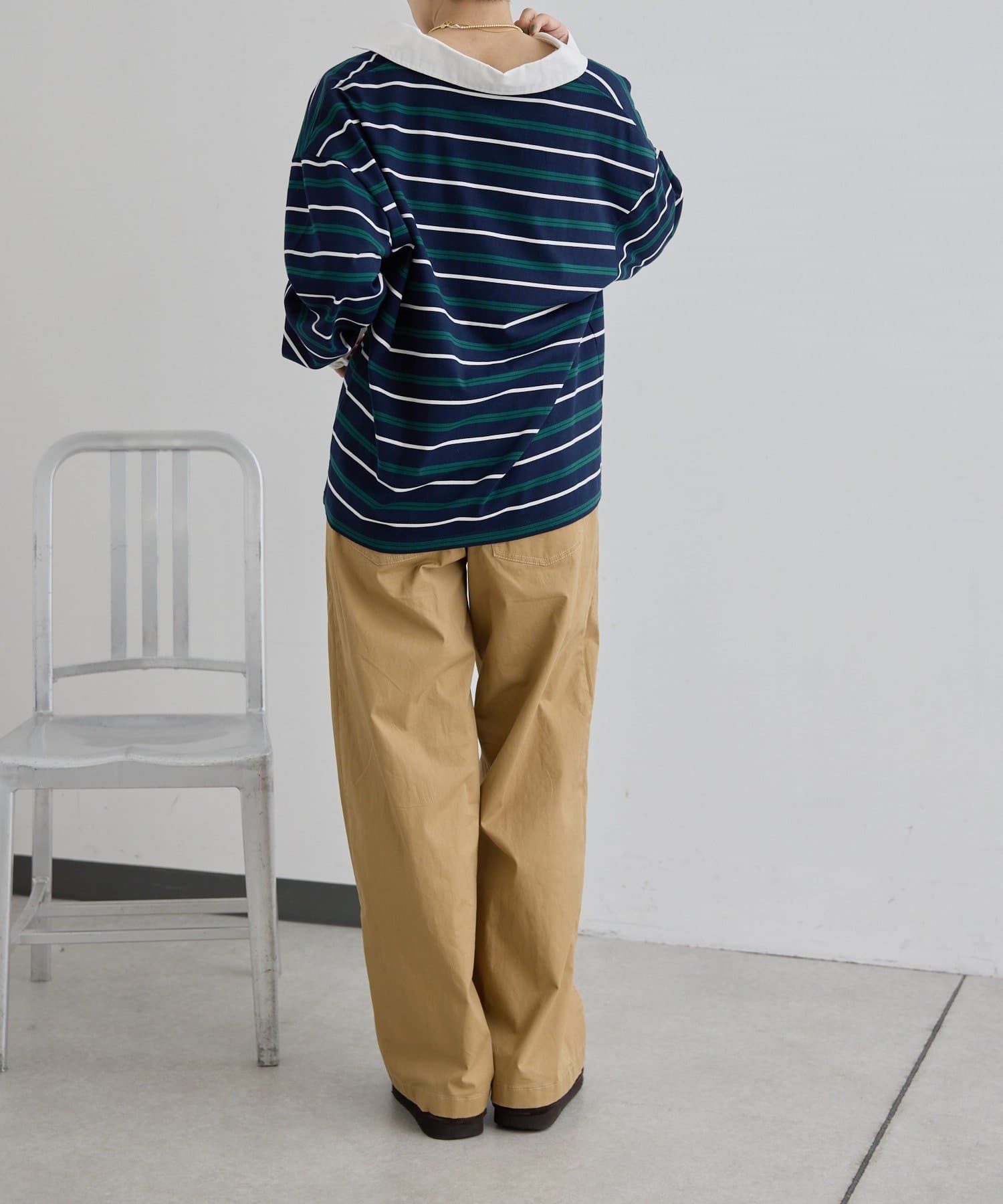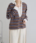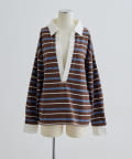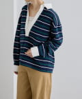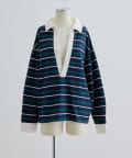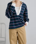 • ear PAPILLONNER(イア パピヨネ) 《深Vネックでお顔周りすっきり》ボーダーポロシャツ【SUM1 STYLE(スミスタイル)】