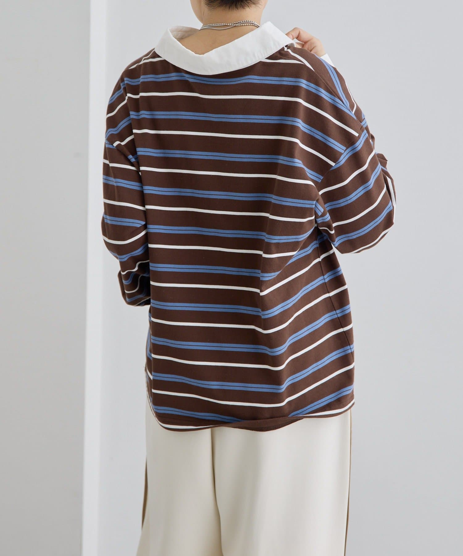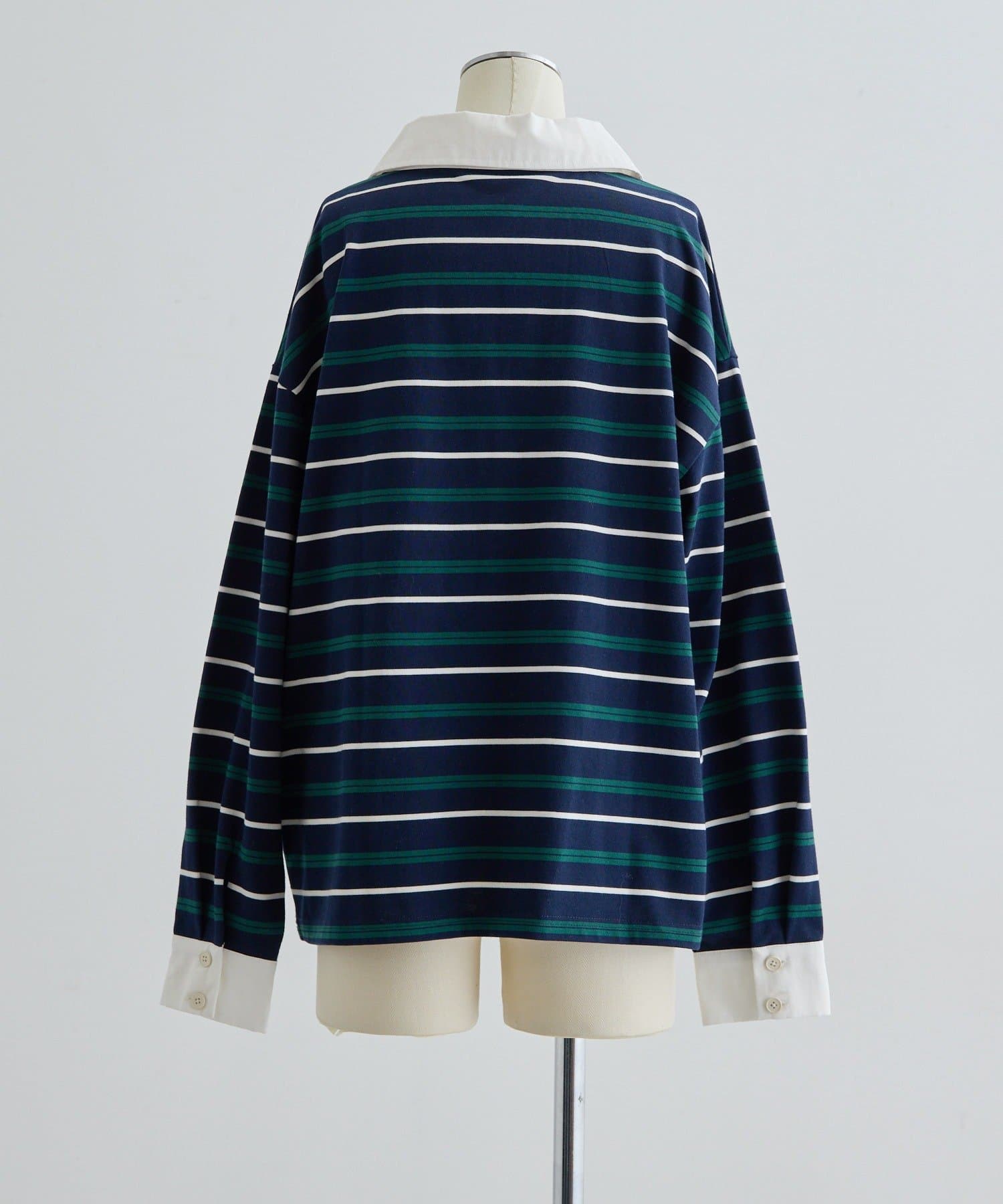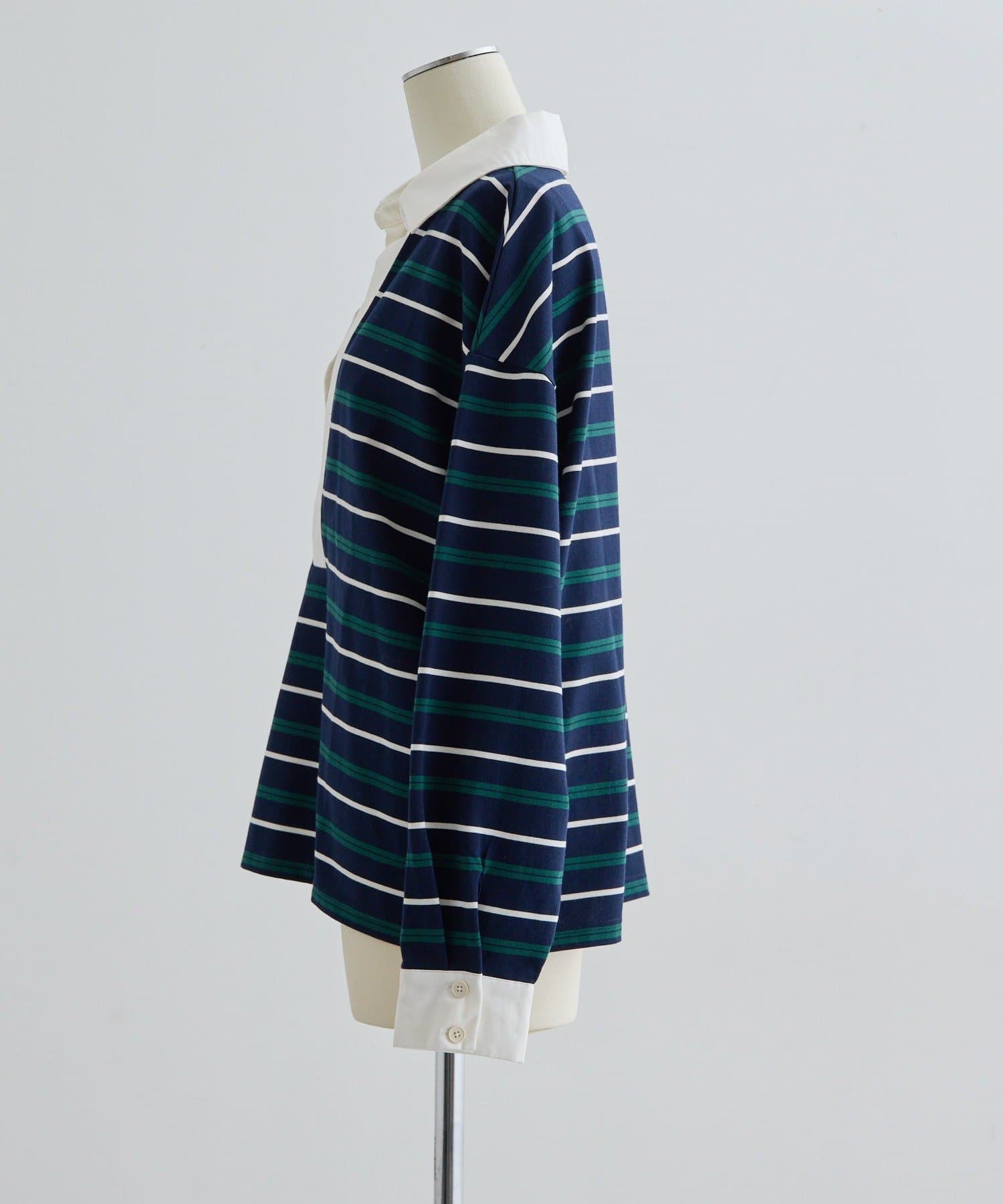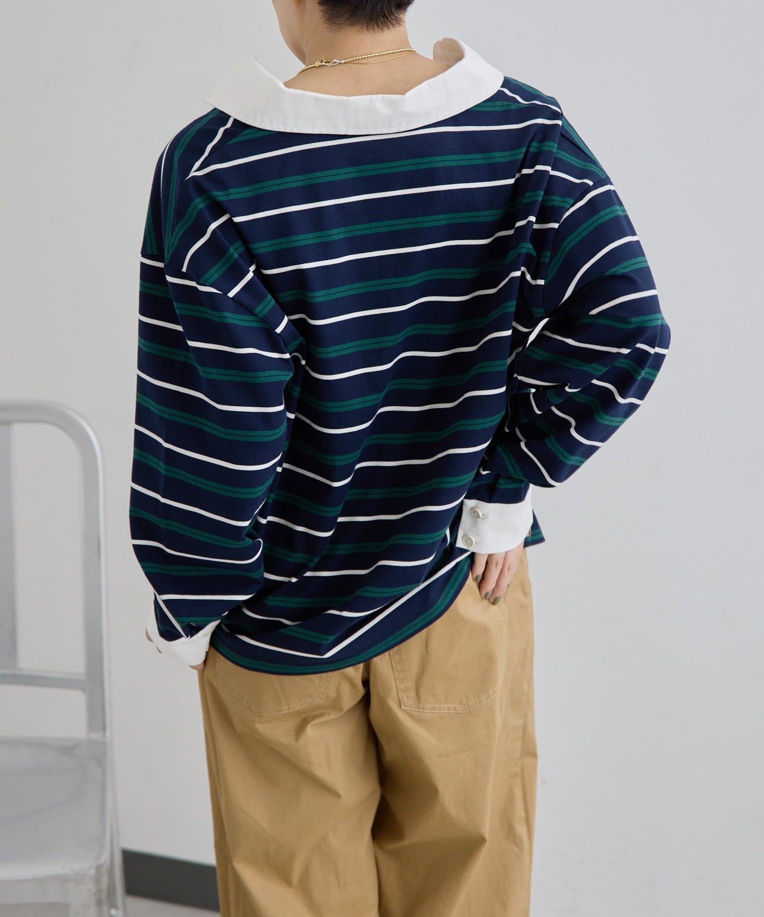 ear PAPILLONNER(イア パピヨネ) 《深Vネックでお顔周りすっきり》ボーダーポロシャツ【SUM1 STYLE(スミスタイル)】