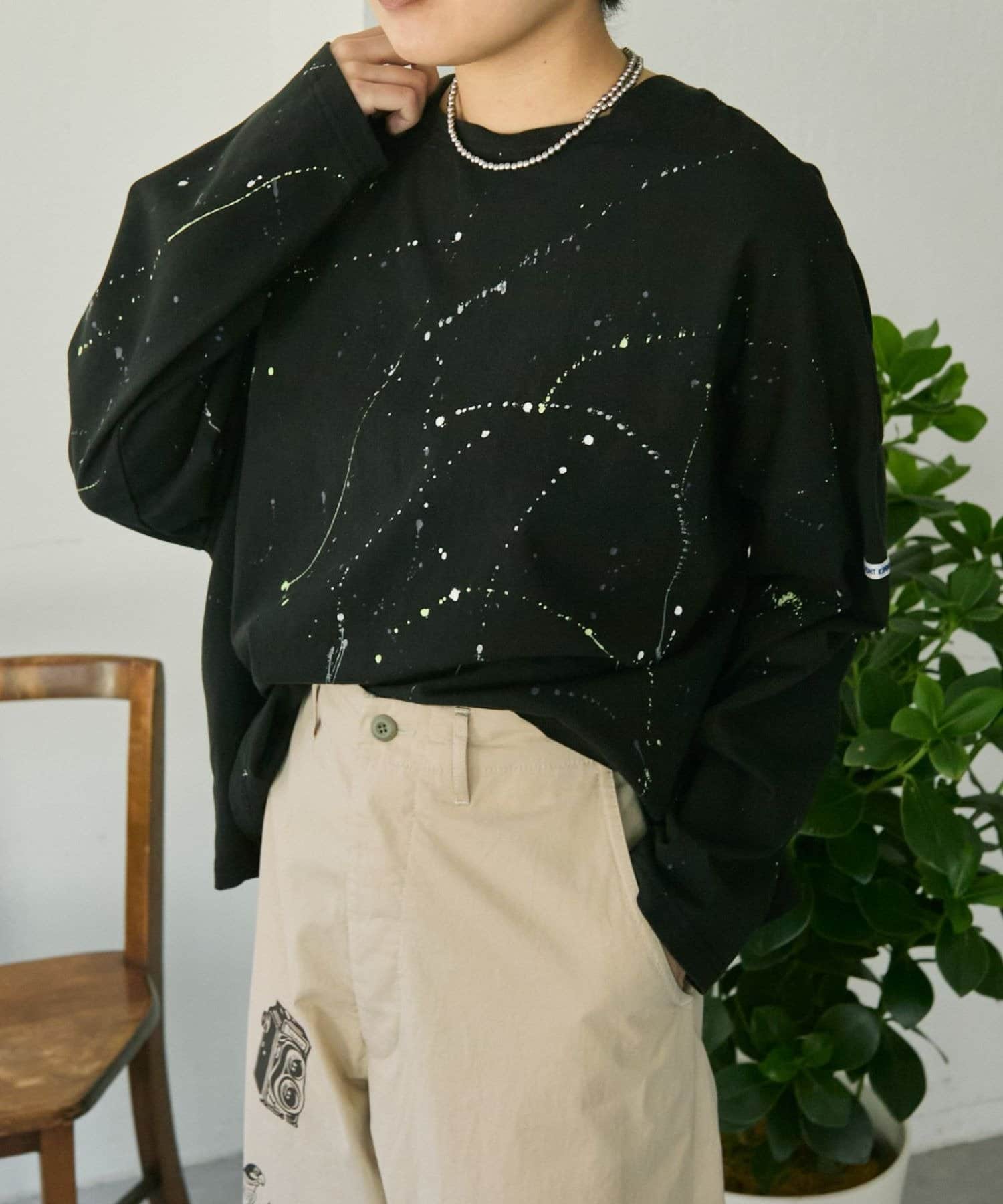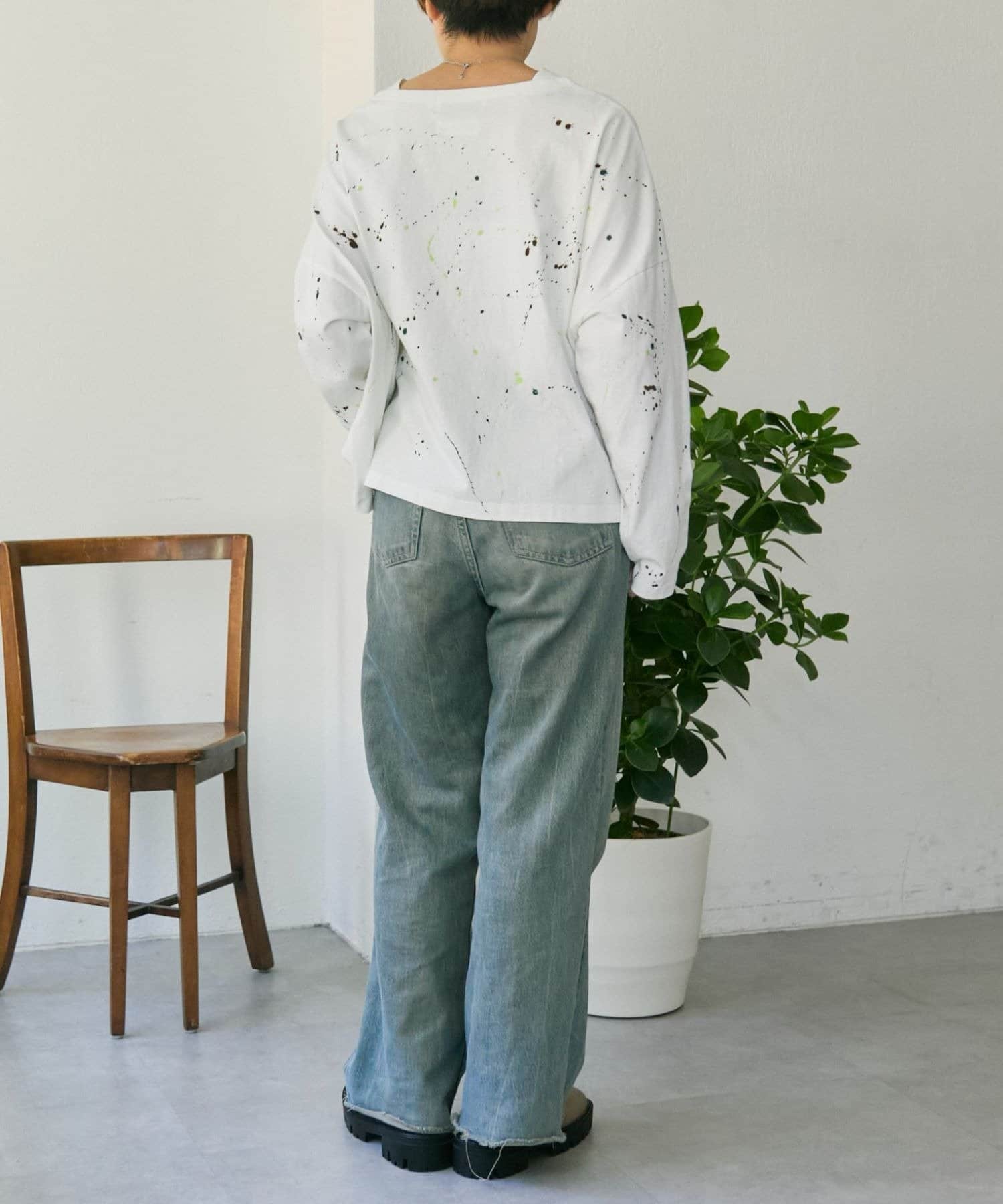 ホワイト/サイズFREE/身長162cm/ランダムなペイントデザインがポイント!