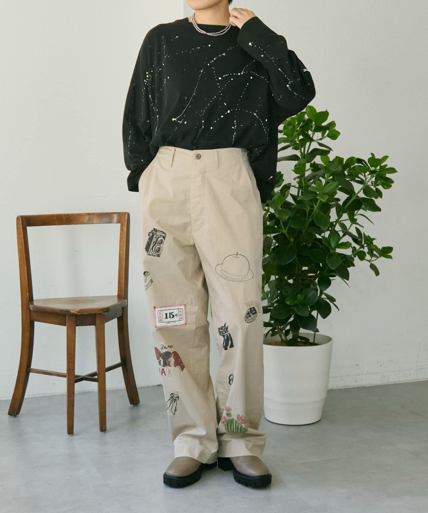 ブラック/サイズFREE/身長162cm/※ハンドペイントのため、ペイントの出方は1点ずつ異なります。