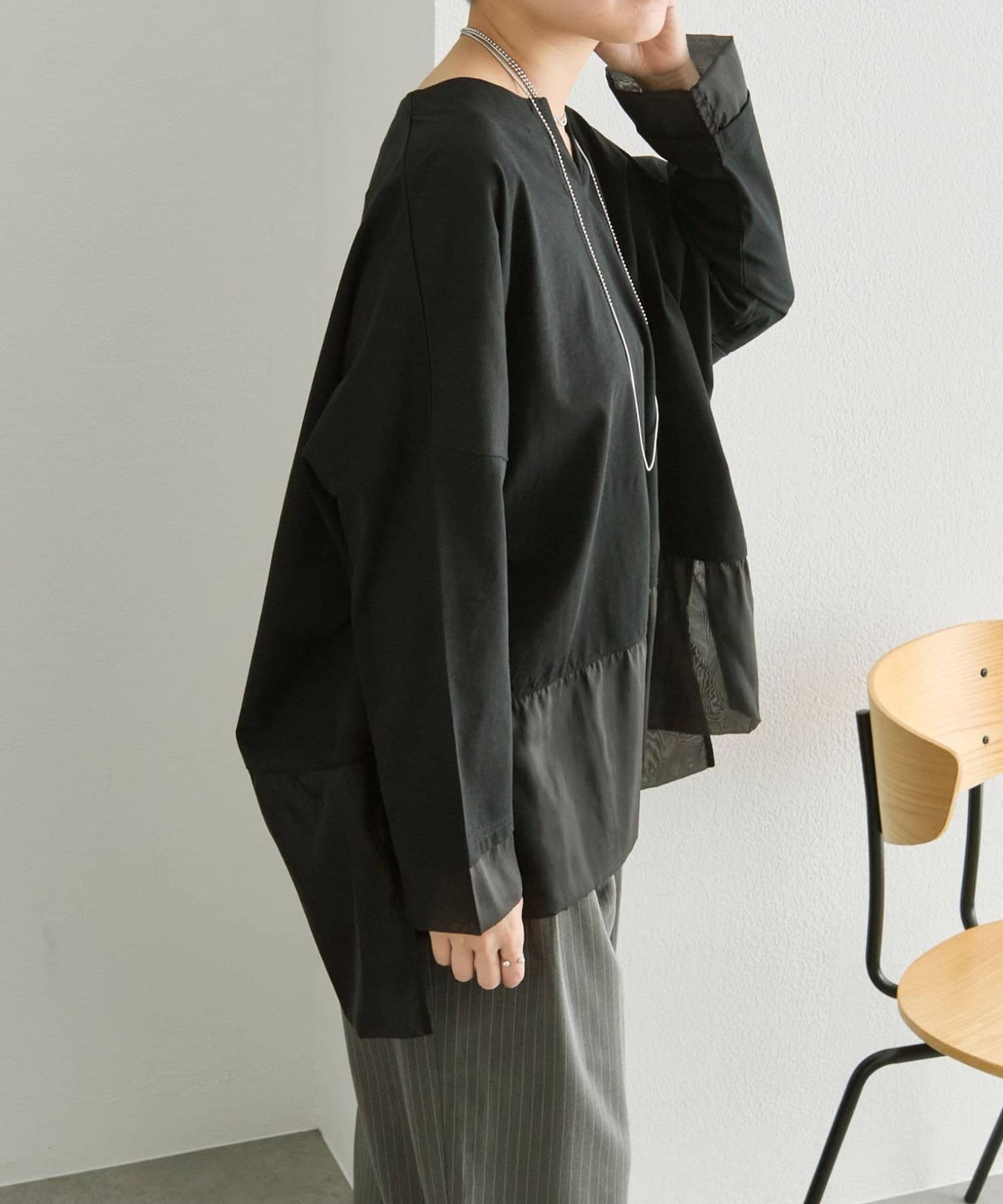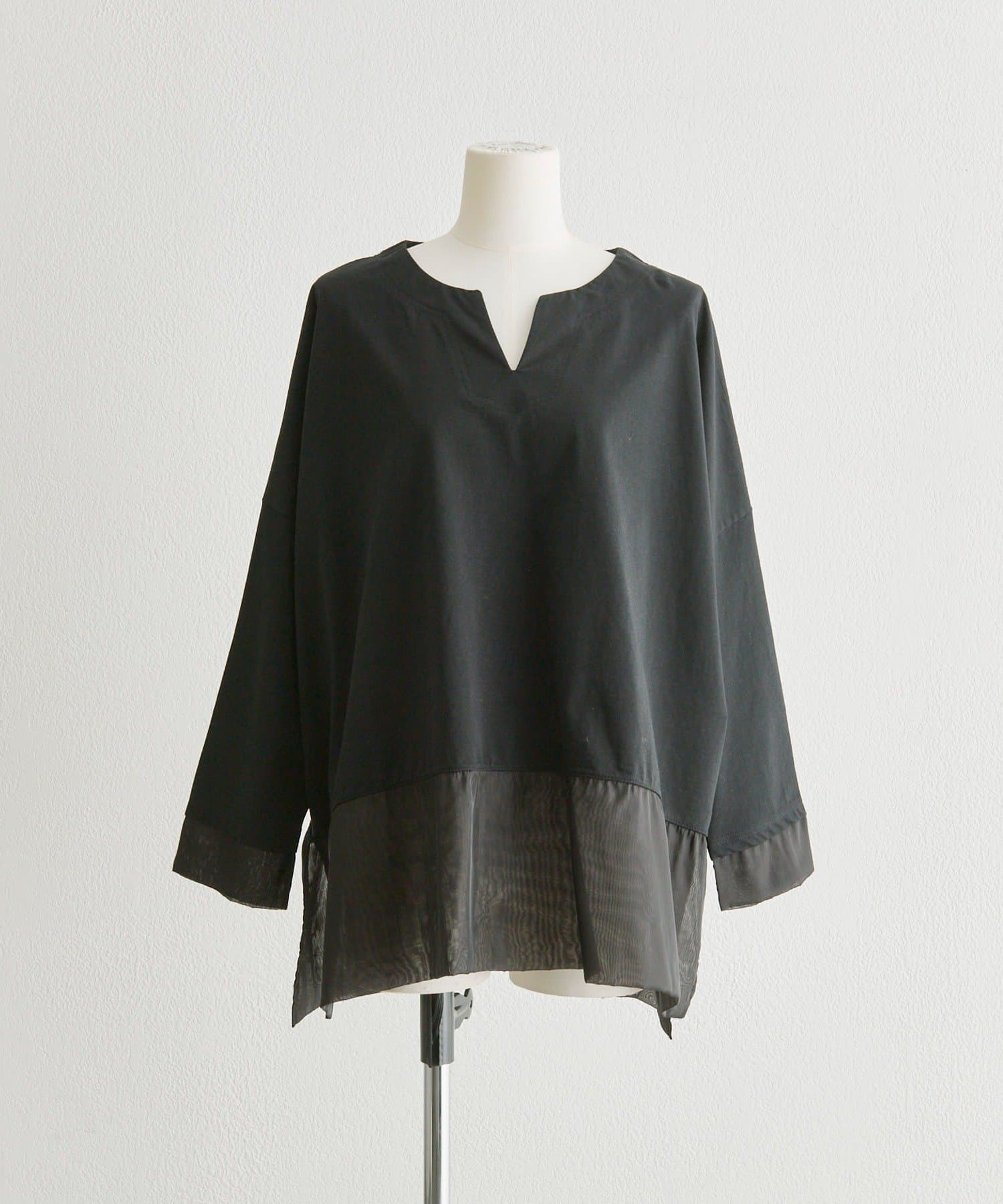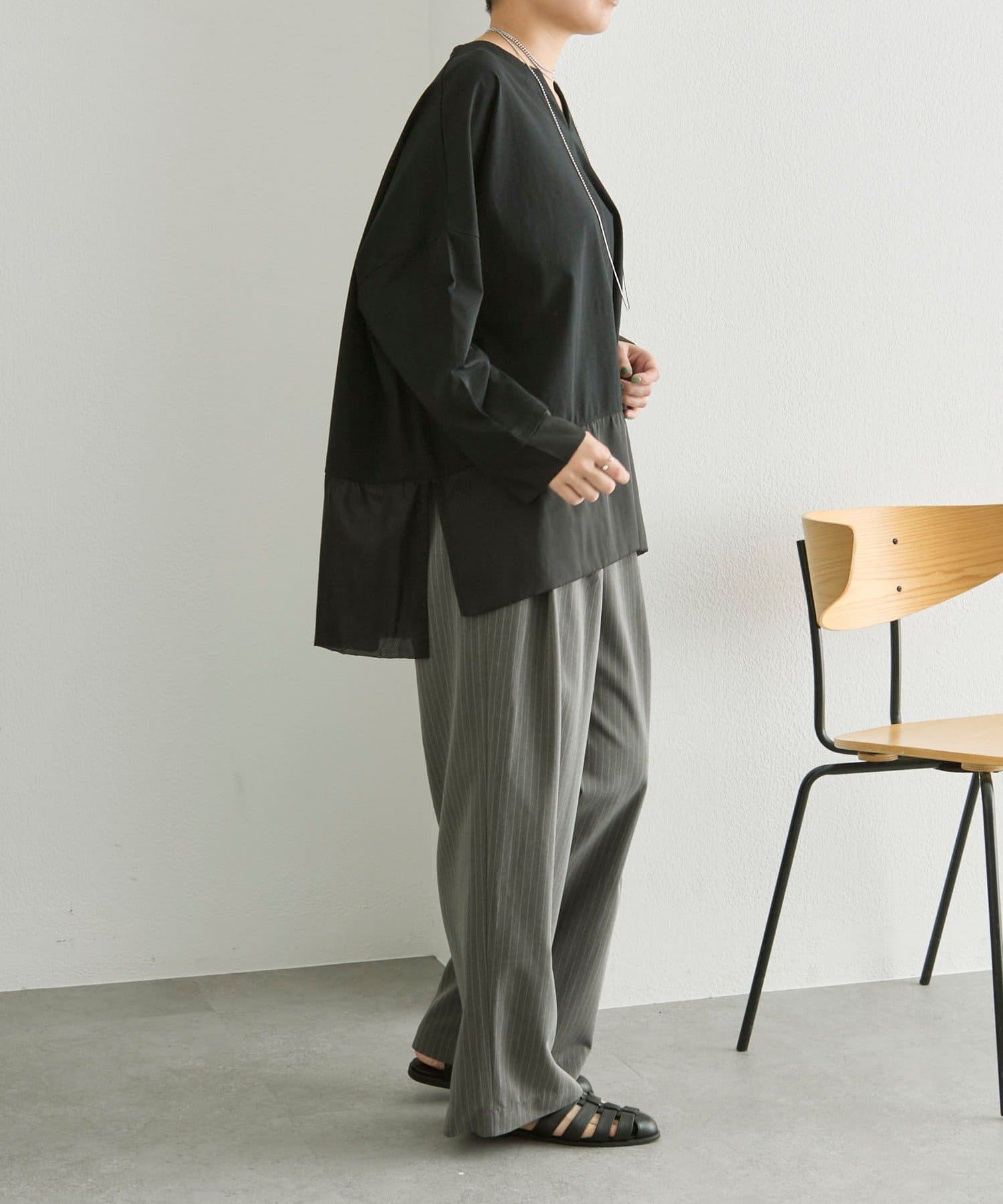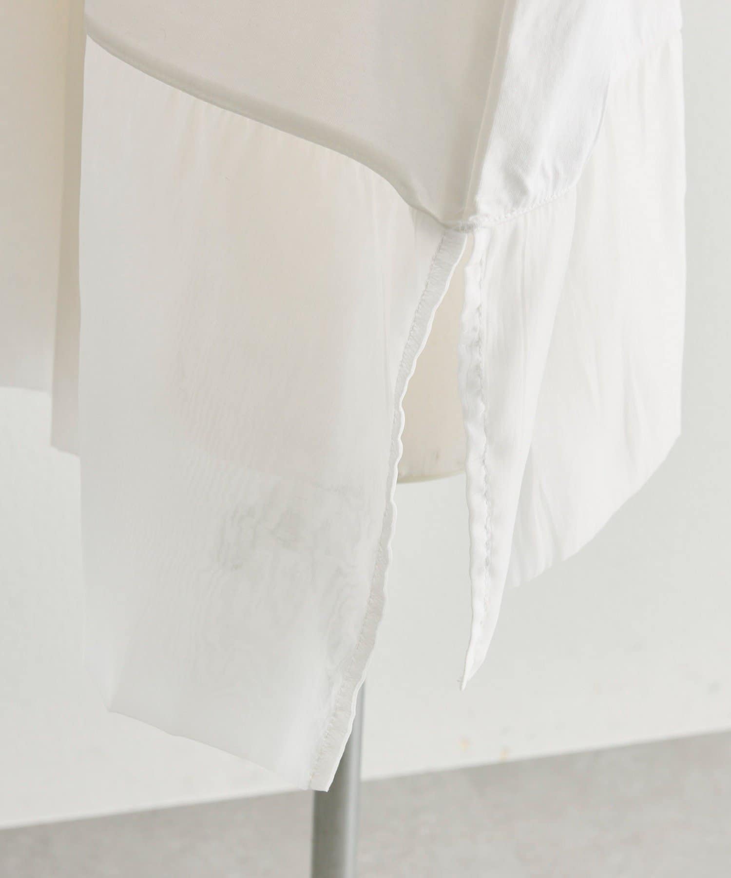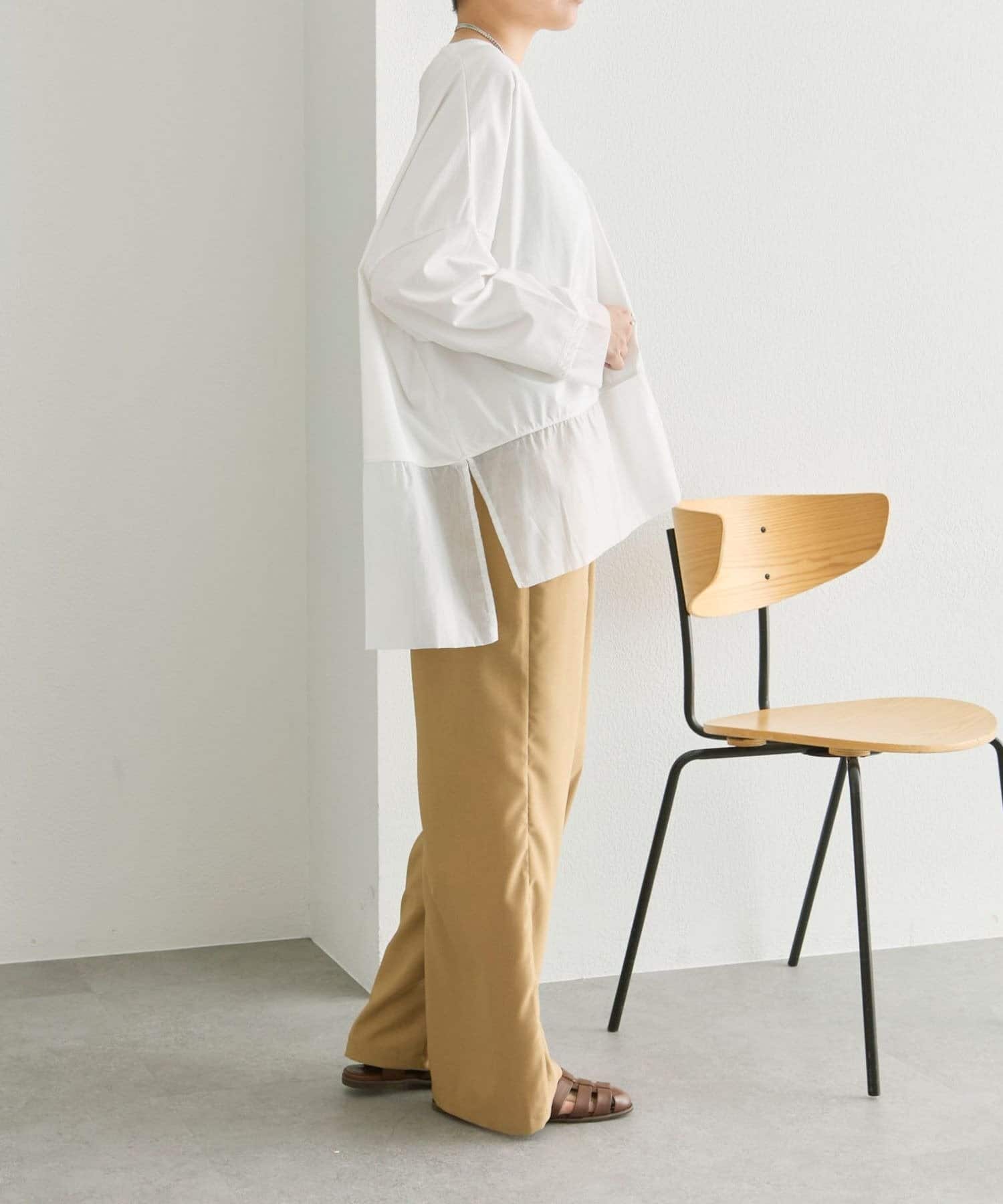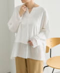 シアー素材を裾とサイドスリット入りで軽やかな印象で着ることができます。