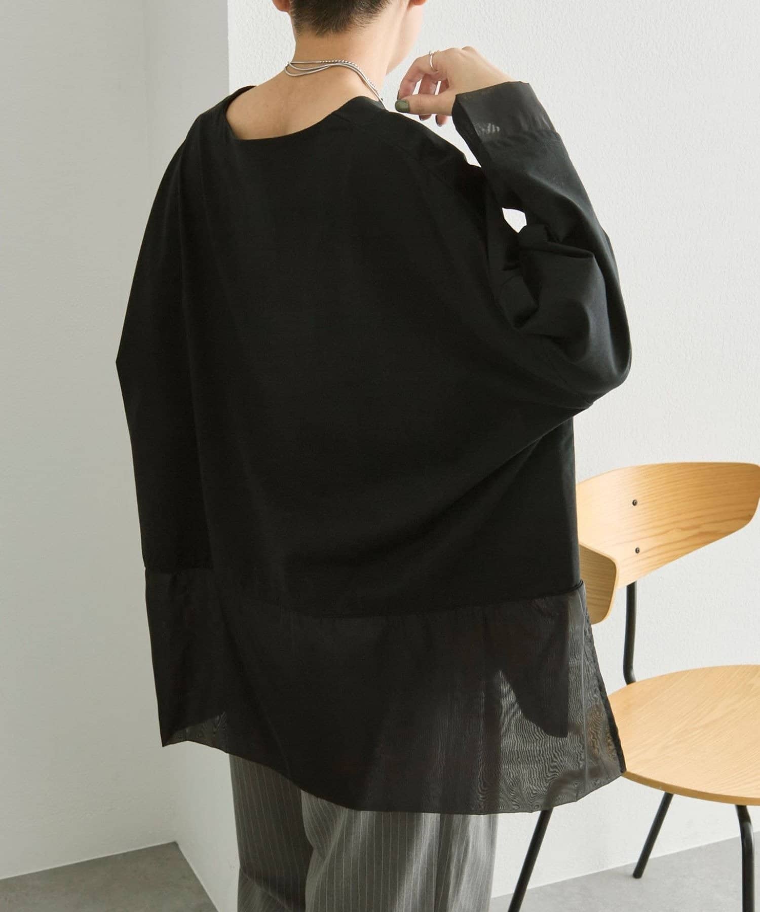 《透け感/レイヤード風》シアーロングTシャツ【SUM1 STYLE(スミスタイル)】