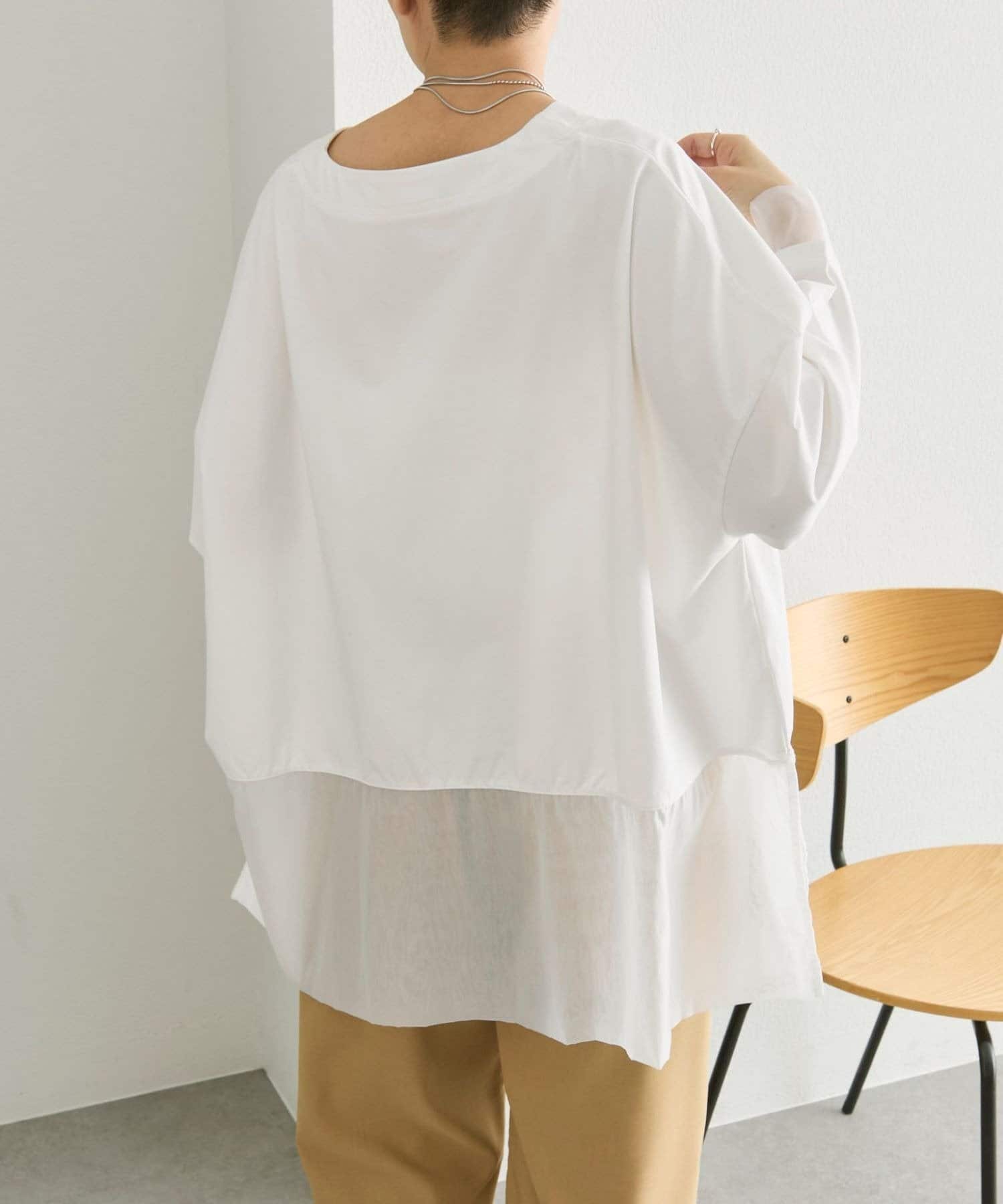 透け感あるレイヤード風デザインがお洒落なデザイントップス