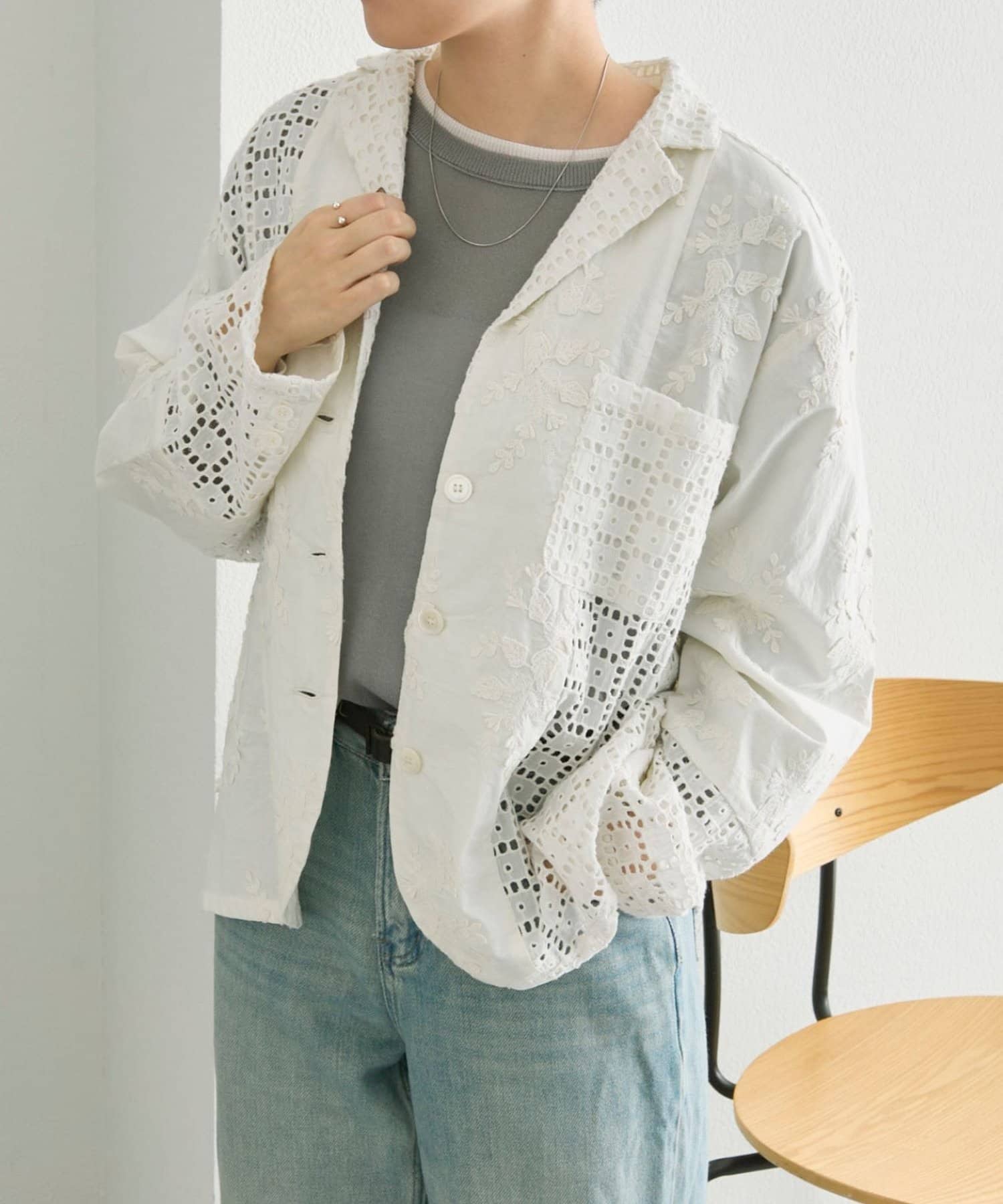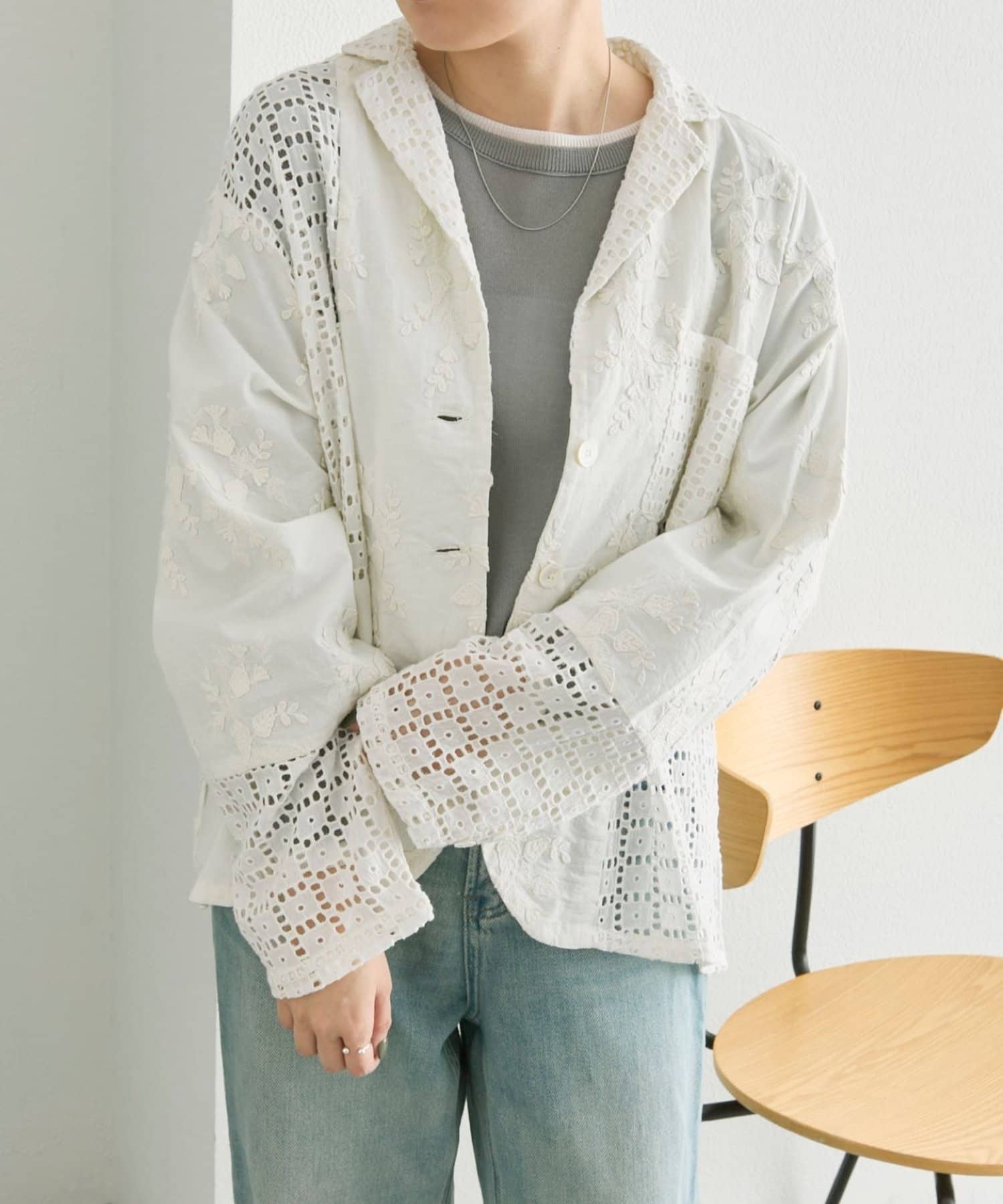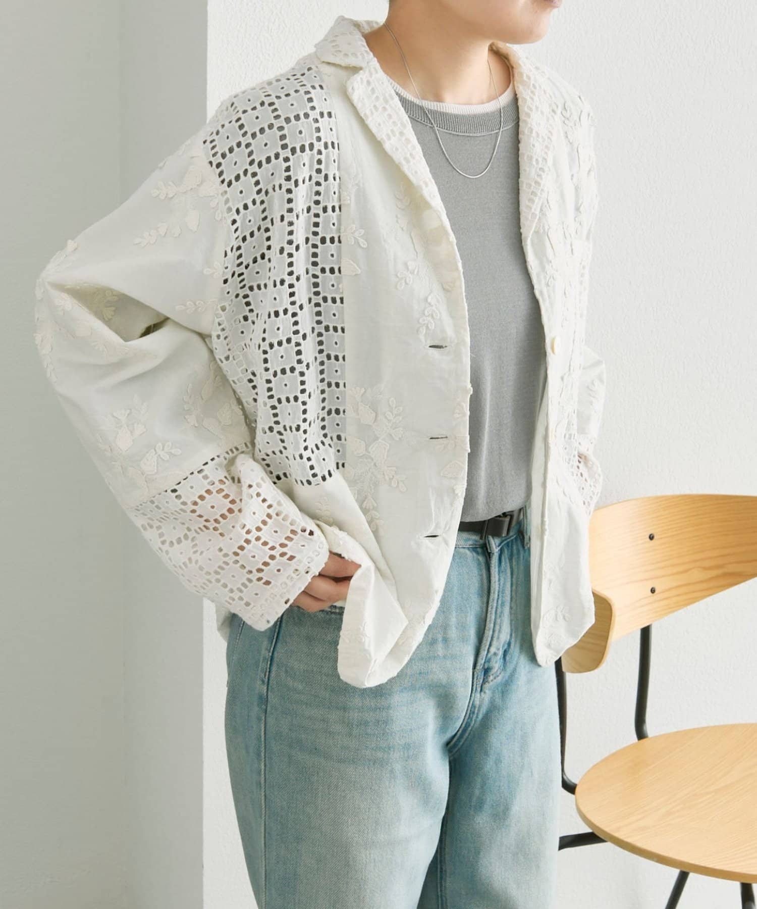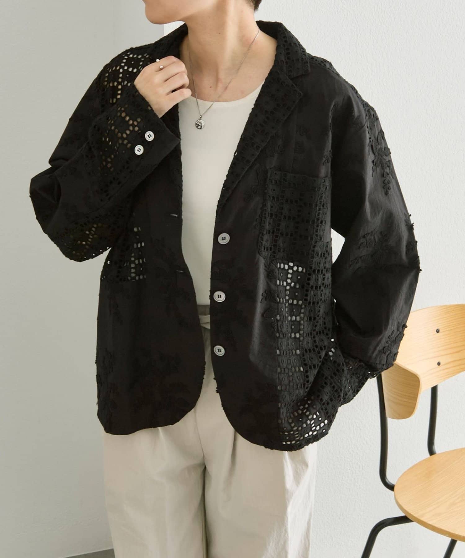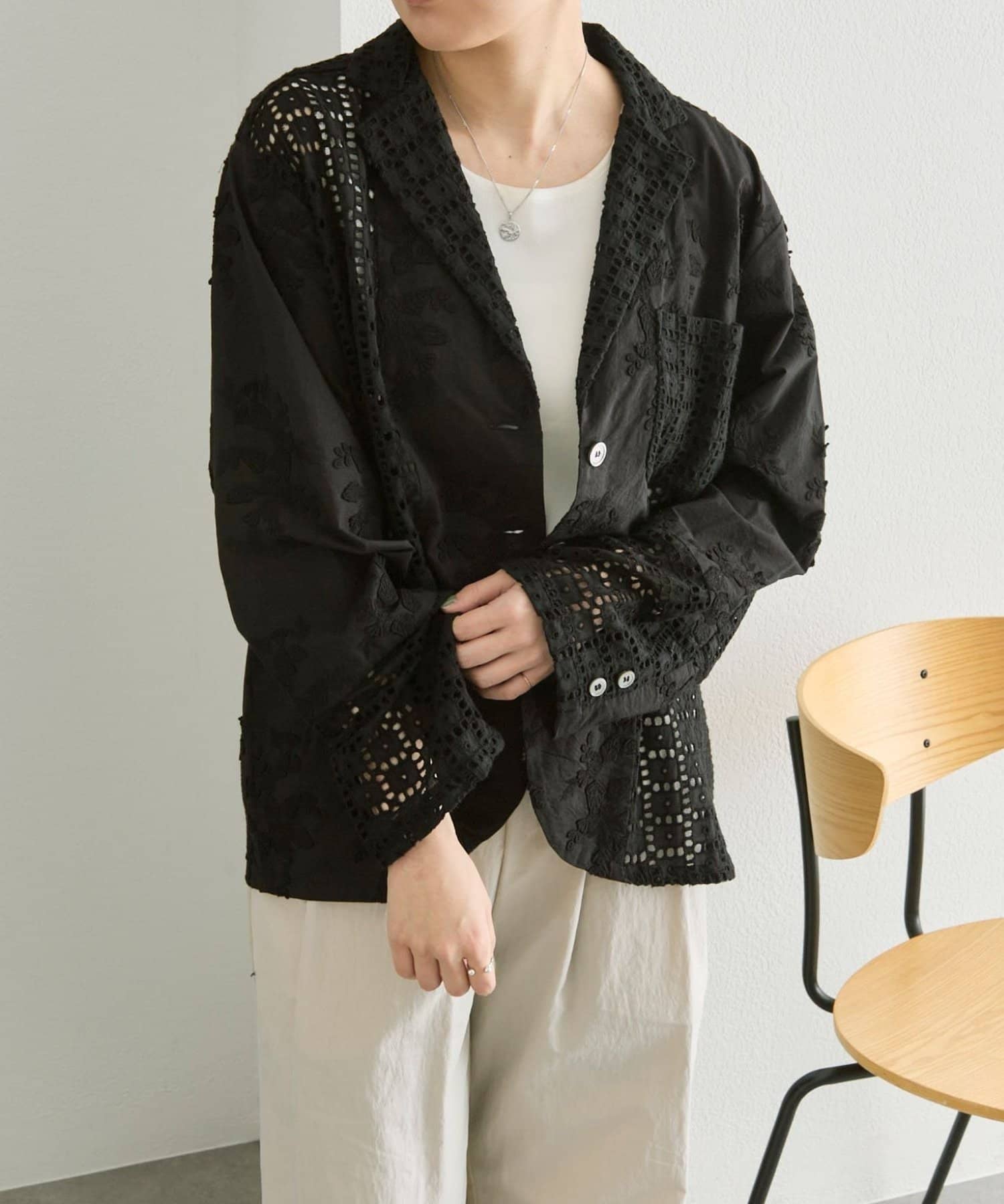 《透け感/ボタニカル柄》刺しゅうジャケット【SUM1 STYLE(スミスタイル)】