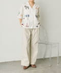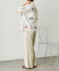 華やかなデザインなのでシンプルなワンカラーのボトムスに合わせるのがおすすめ。