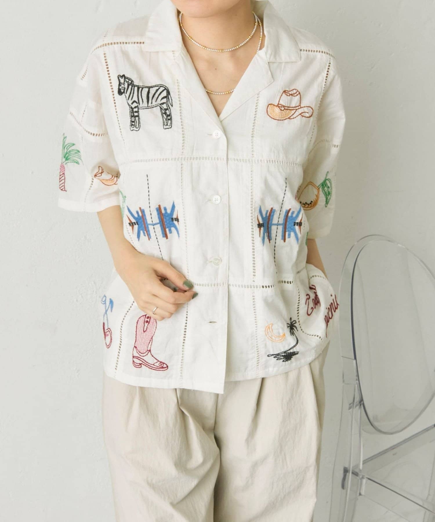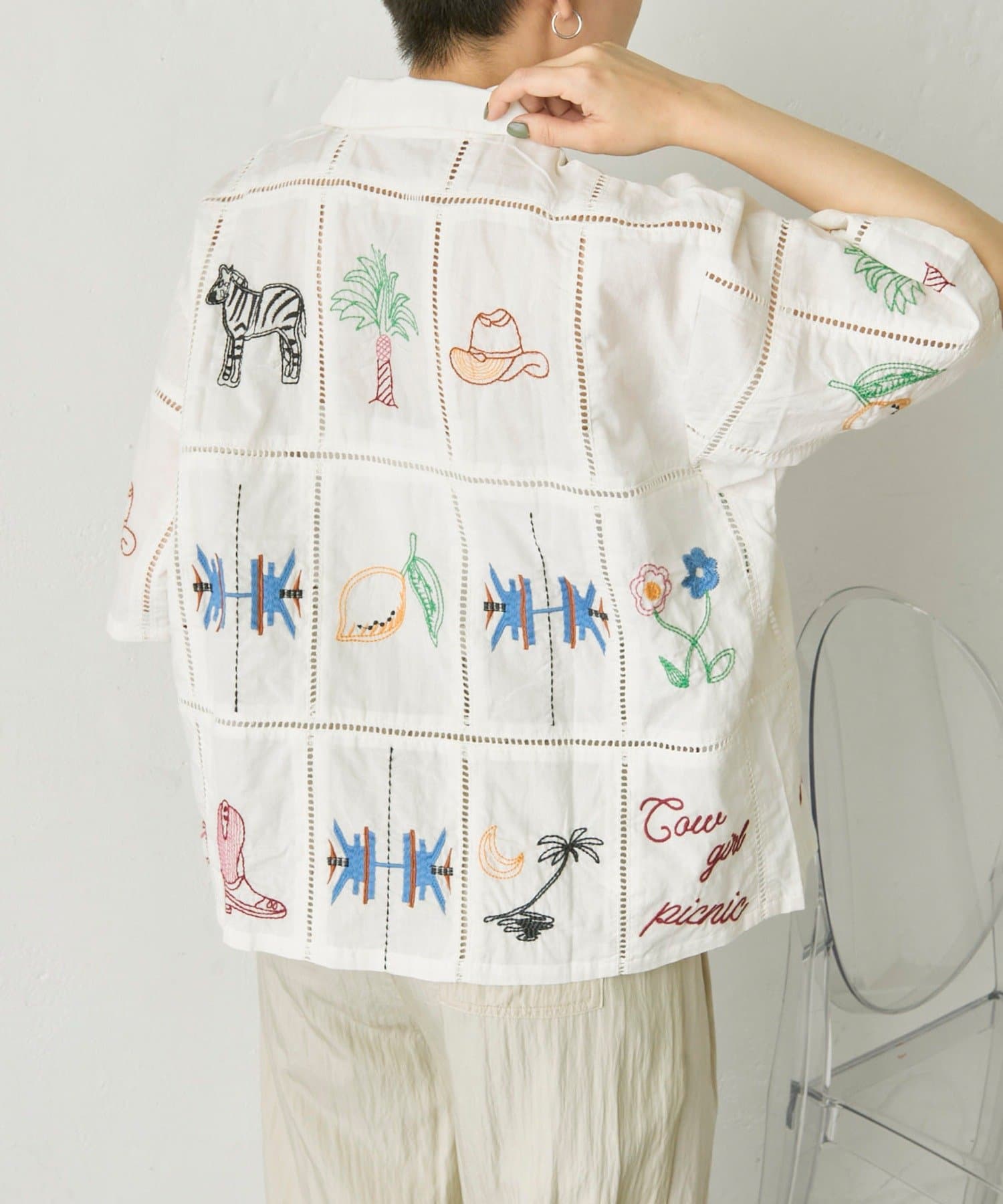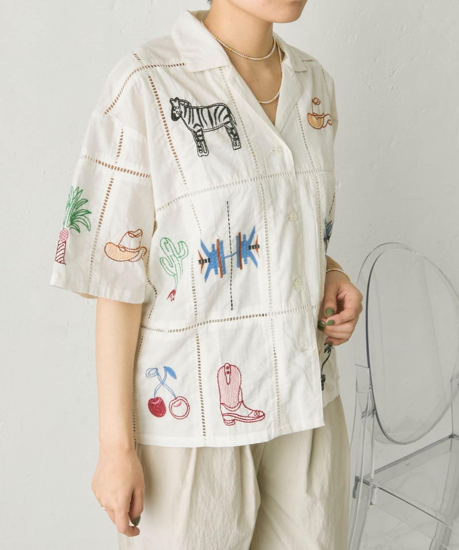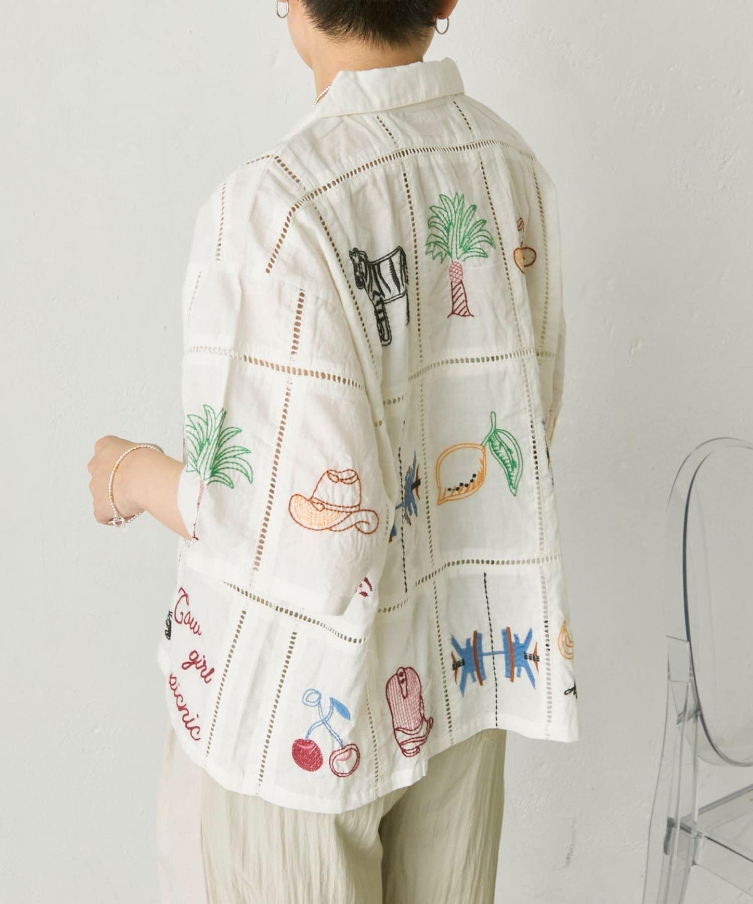 • ear PAPILLONNER(イア パピヨネ) 《綿100%》方眼刺しゅうシャツ【SUM1 STYLE(スミスタイル)】