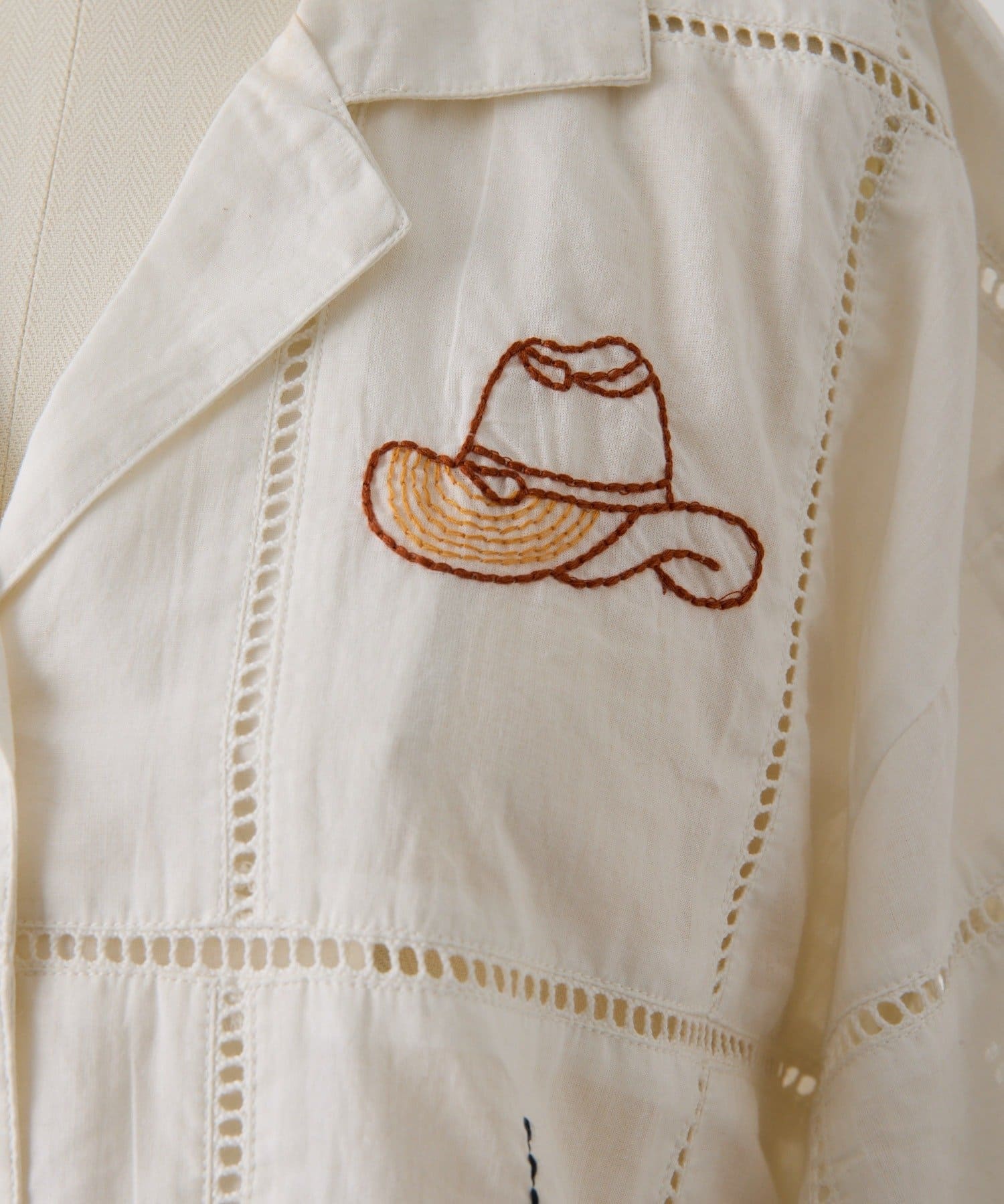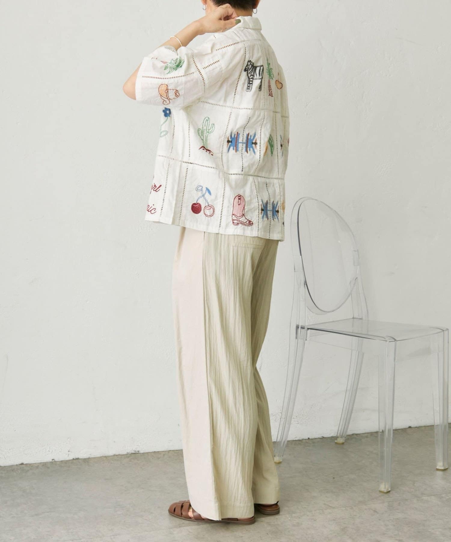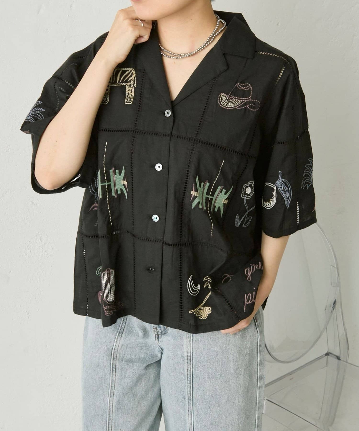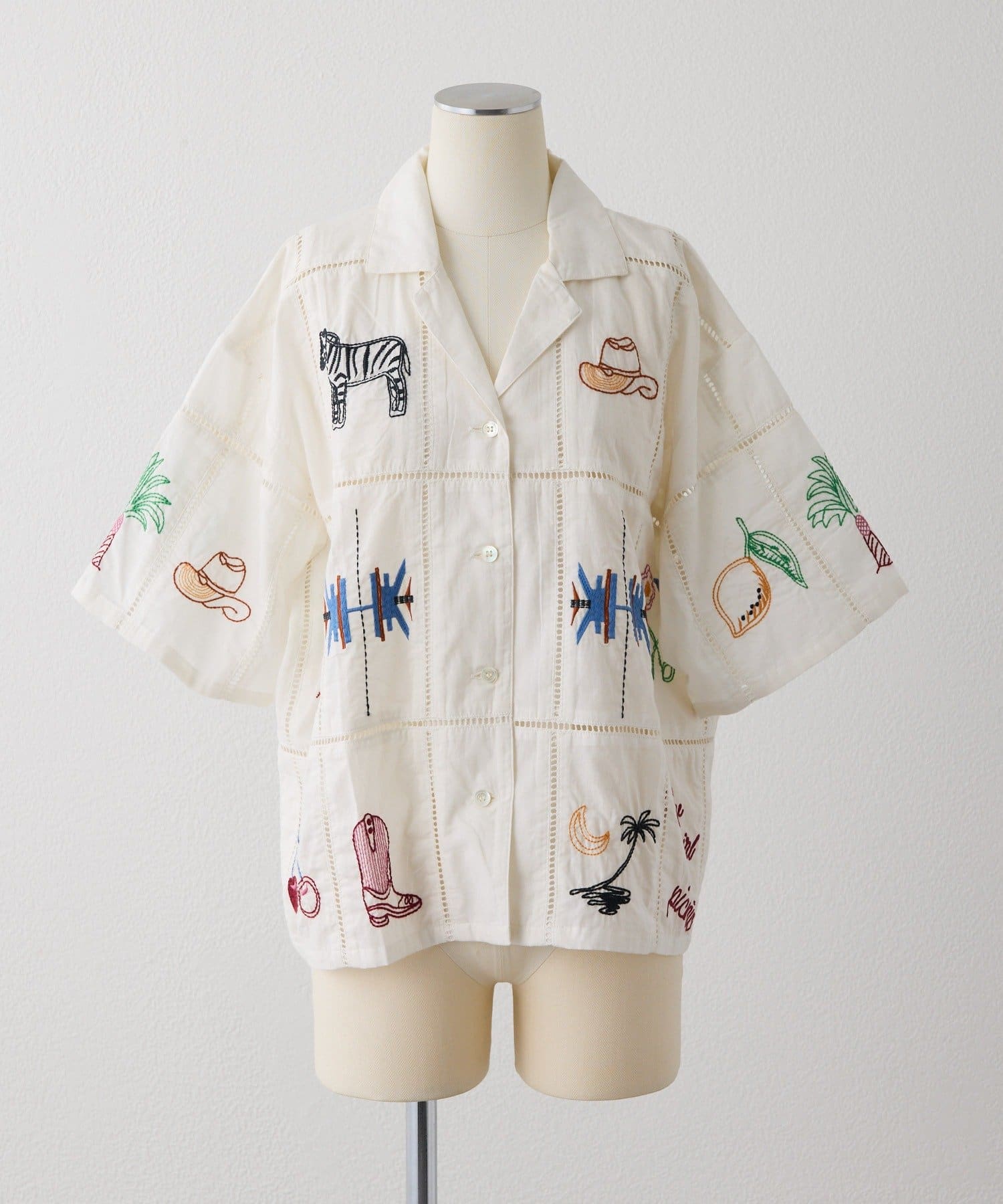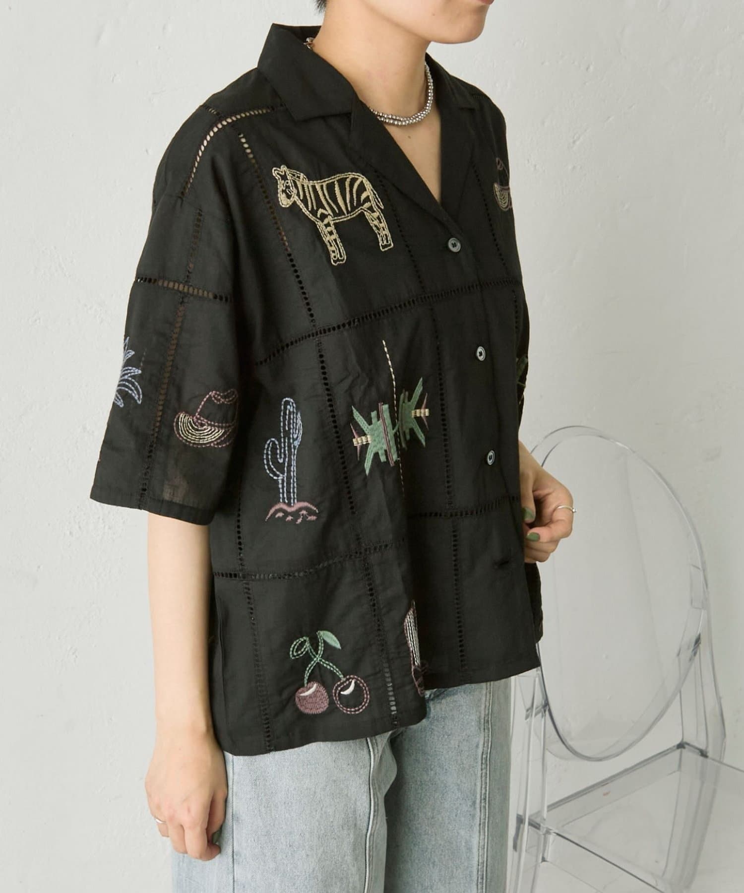 • ear PAPILLONNER(イア パピヨネ) 《綿100%》方眼刺しゅうシャツ【SUM1 STYLE(スミスタイル)】
