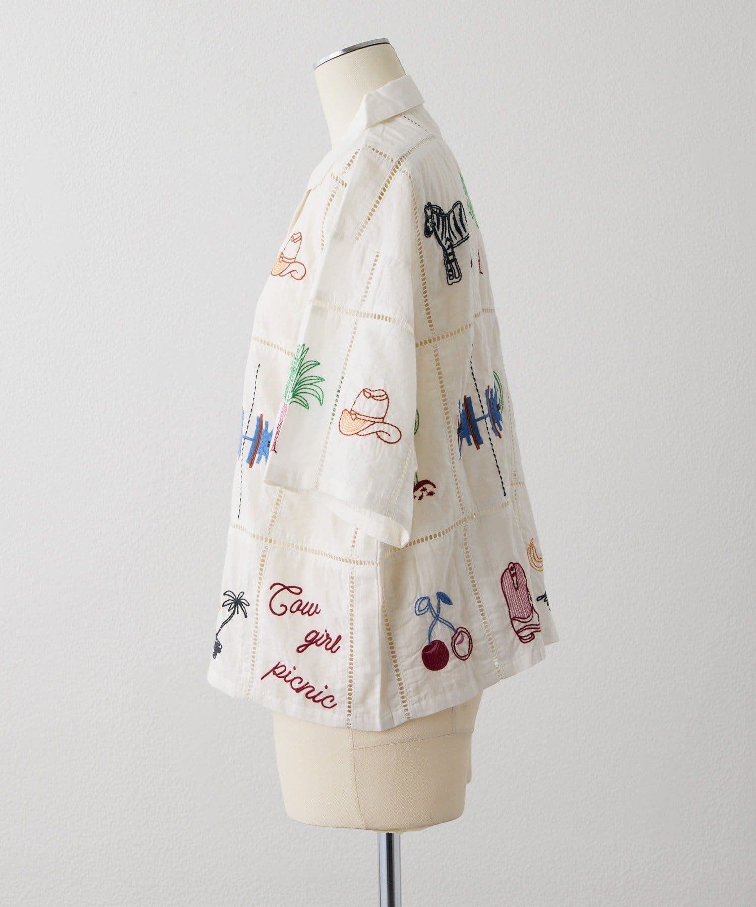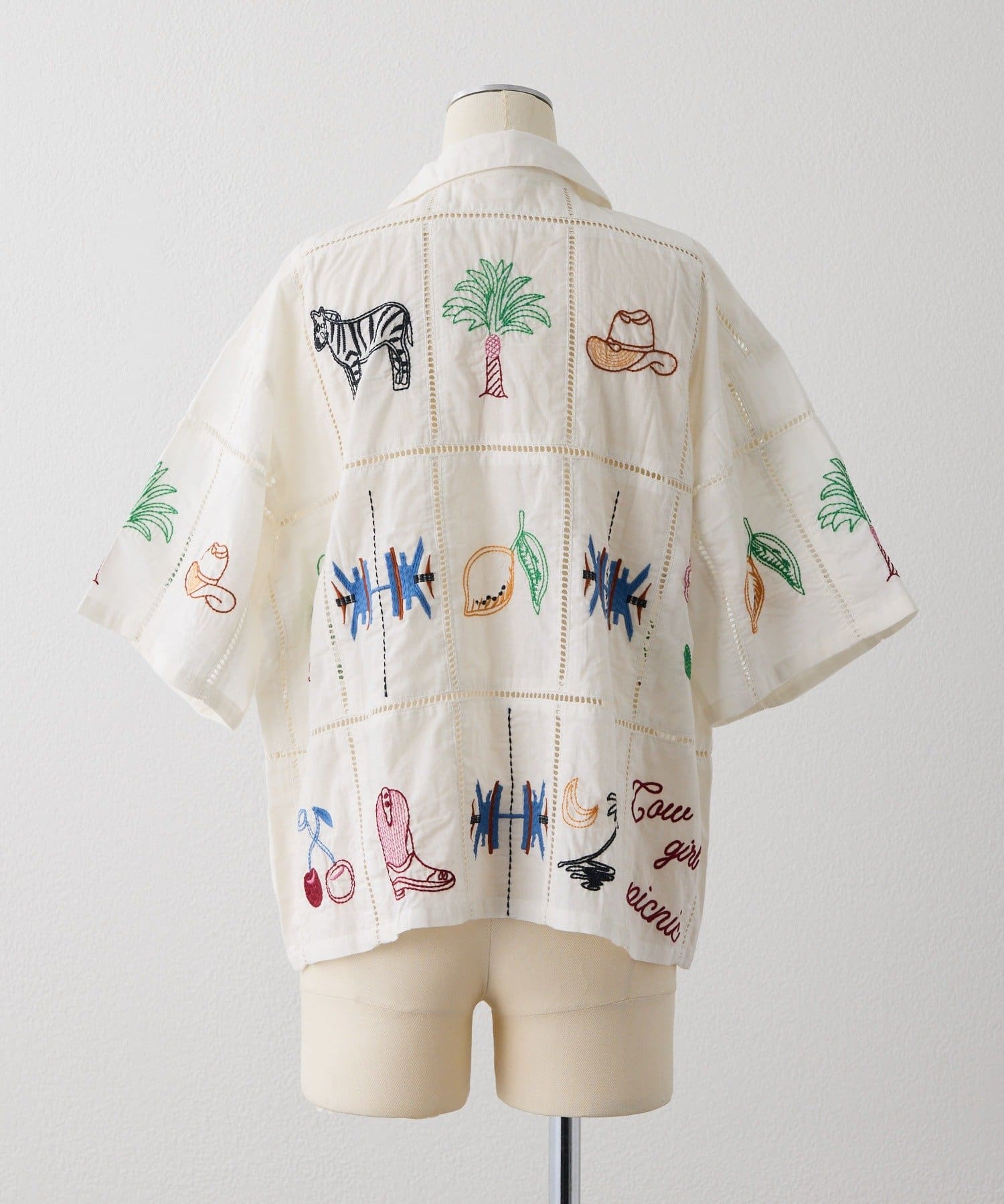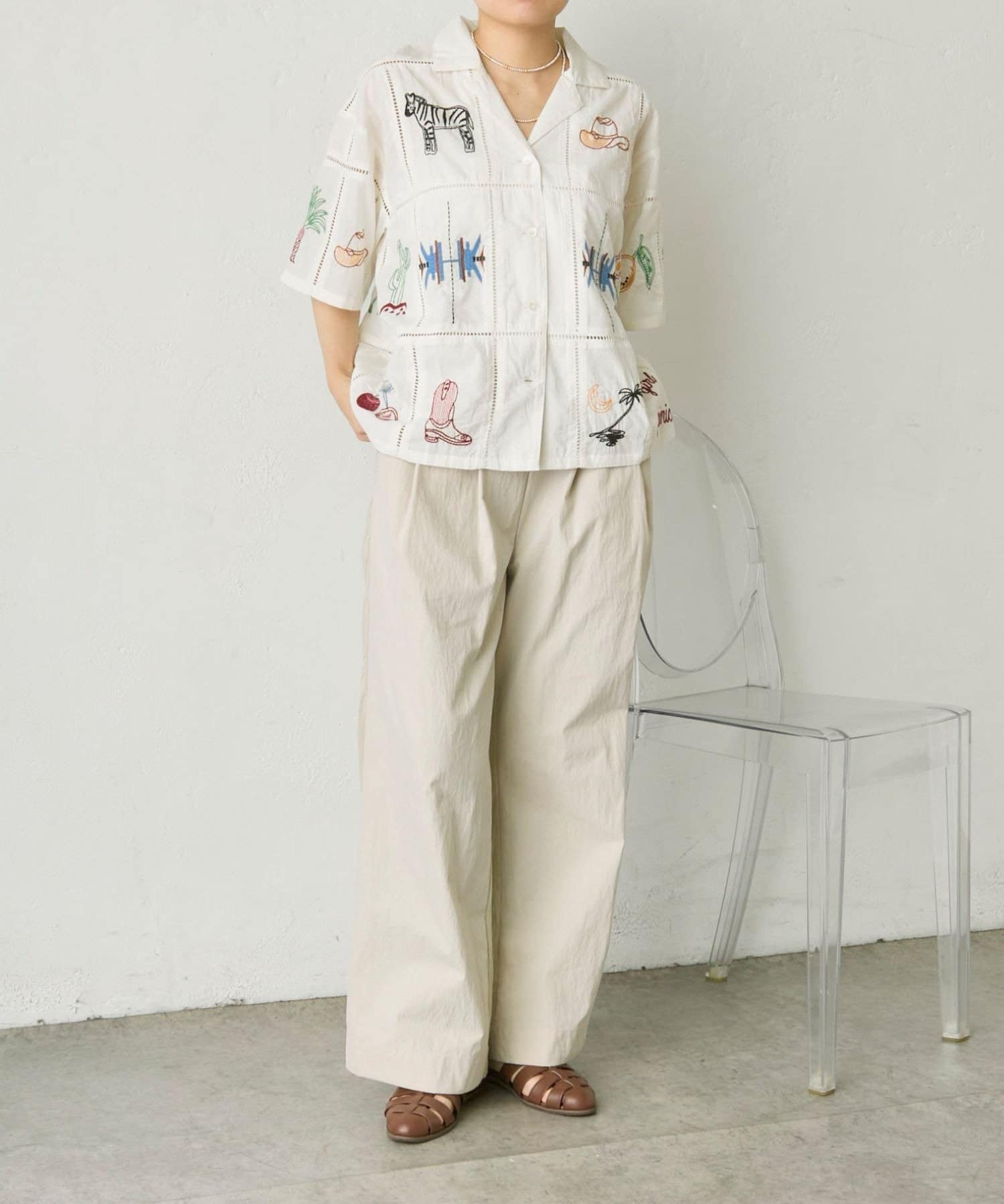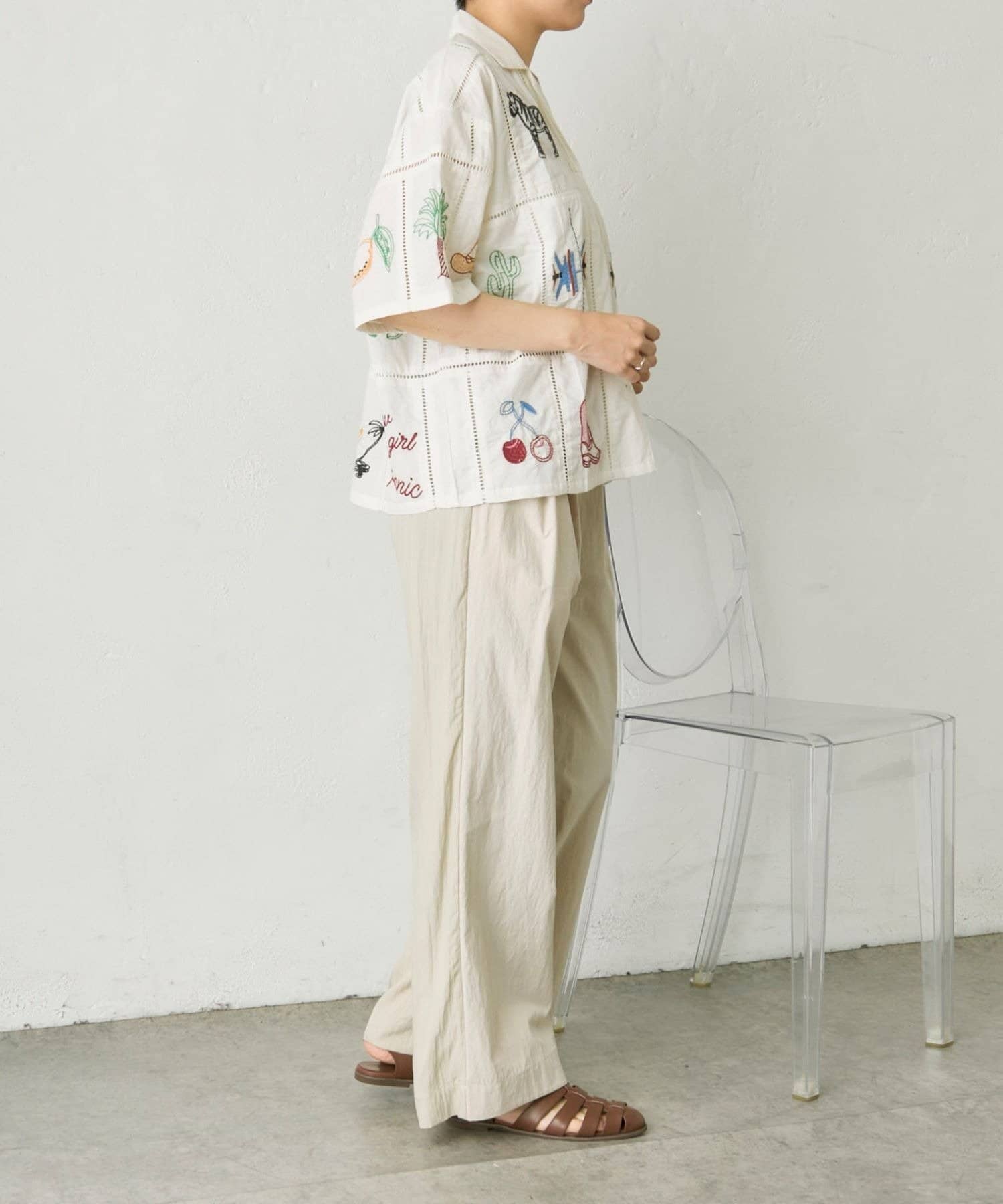 • ear PAPILLONNER(イア パピヨネ) 《綿100%》方眼刺しゅうシャツ【SUM1 STYLE(スミスタイル)】