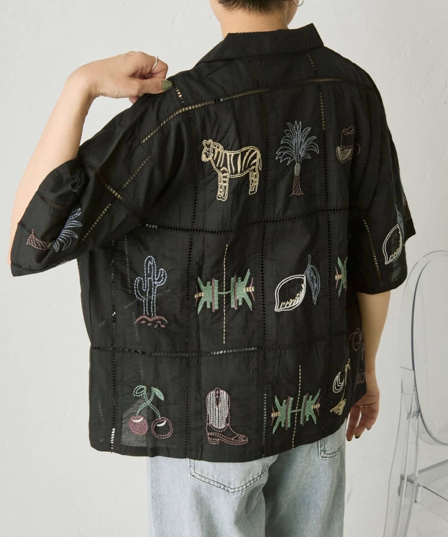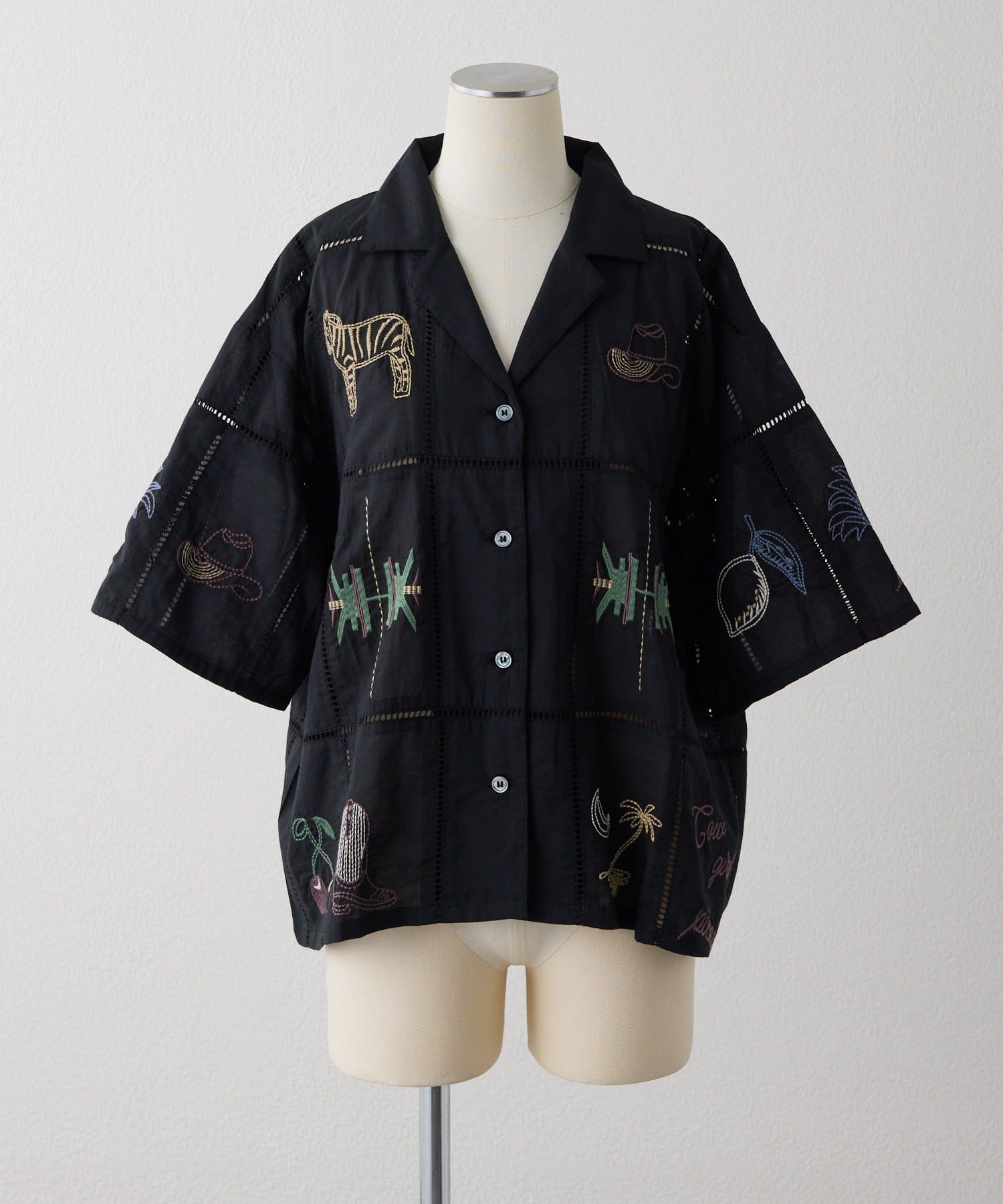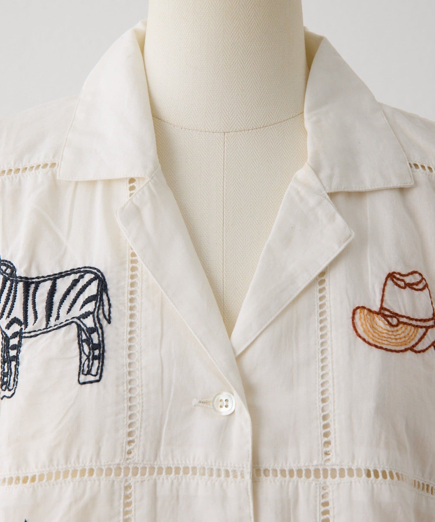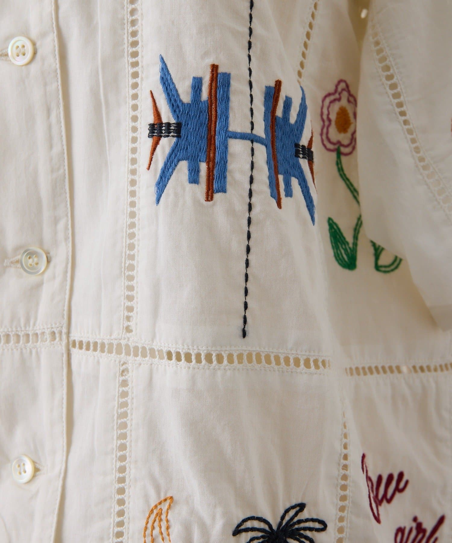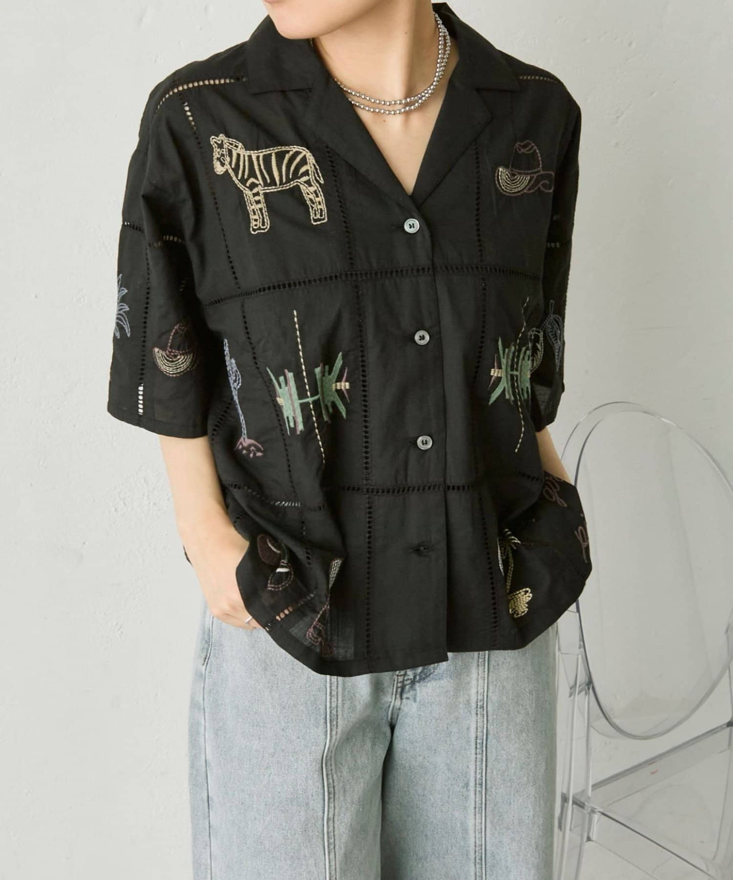 • ear PAPILLONNER(イア パピヨネ) 《綿100%》方眼刺しゅうシャツ【SUM1 STYLE(スミスタイル)】