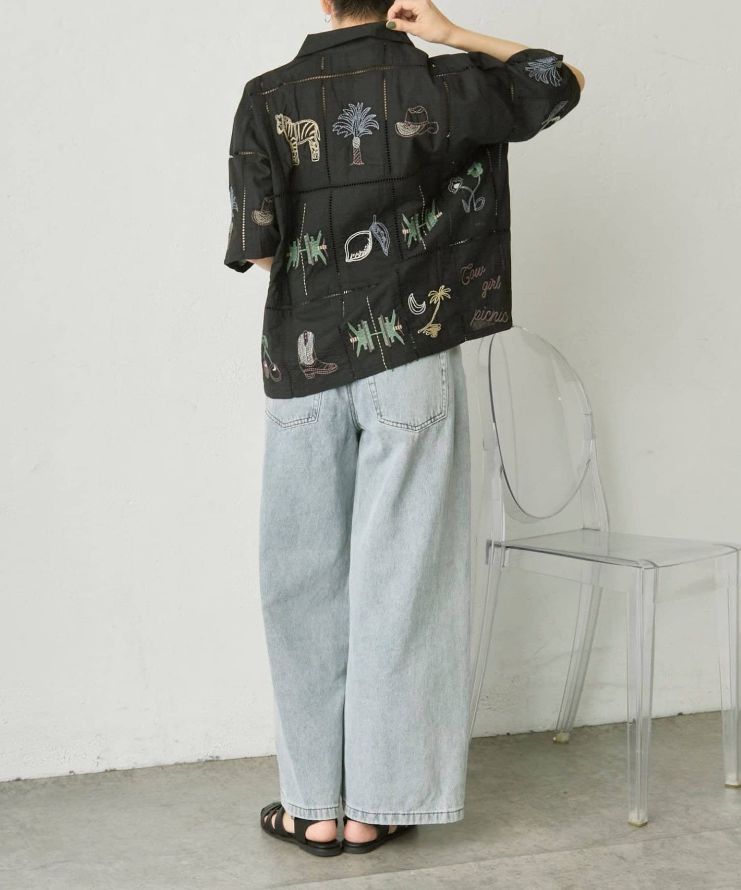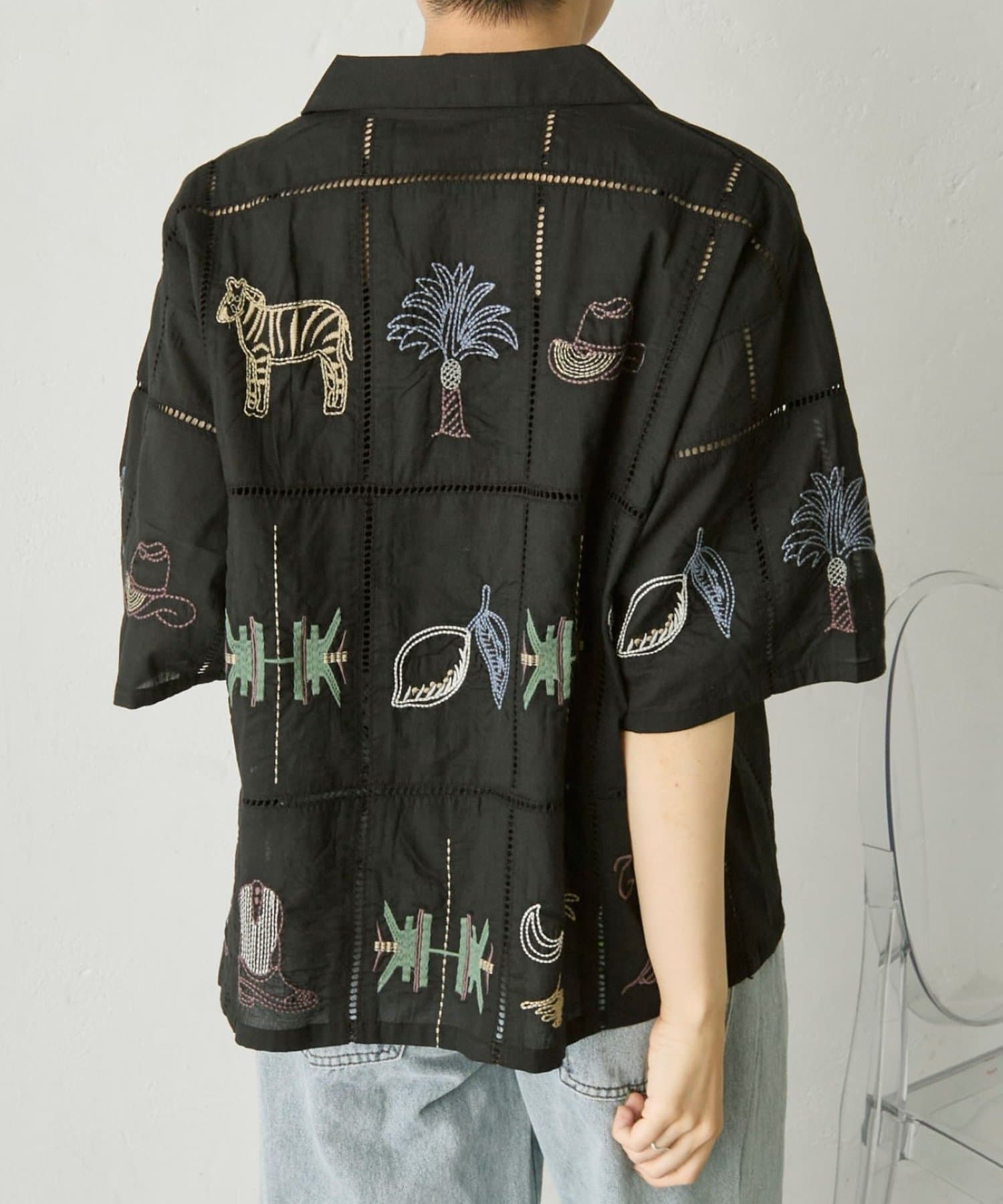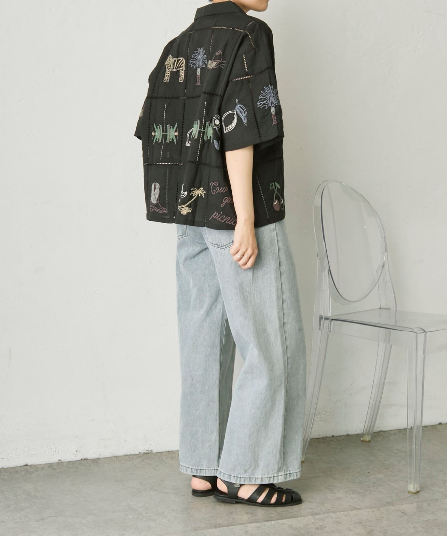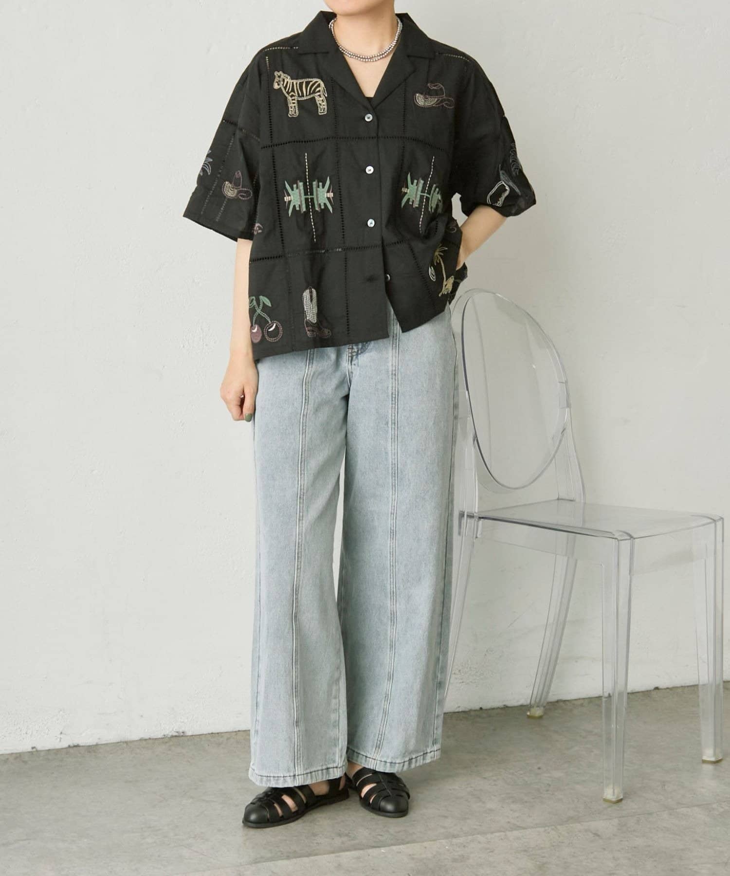 • ear PAPILLONNER(イア パピヨネ) 《綿100%》方眼刺しゅうシャツ【SUM1 STYLE(スミスタイル)】